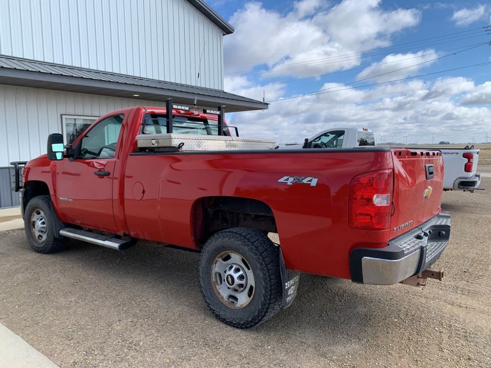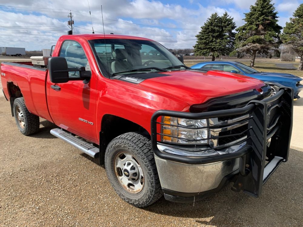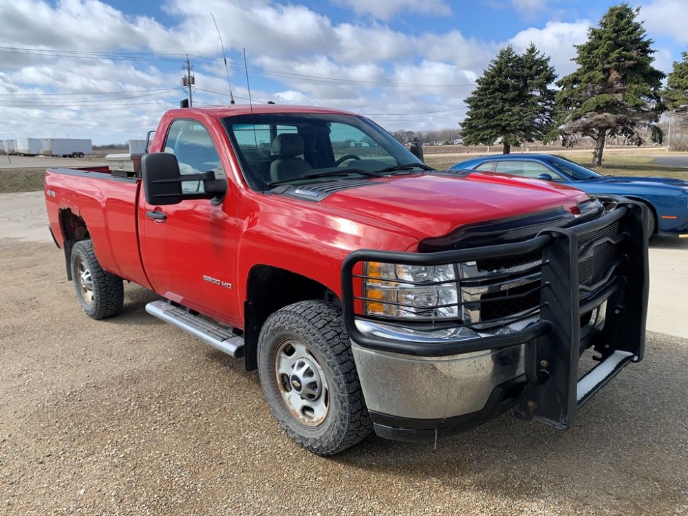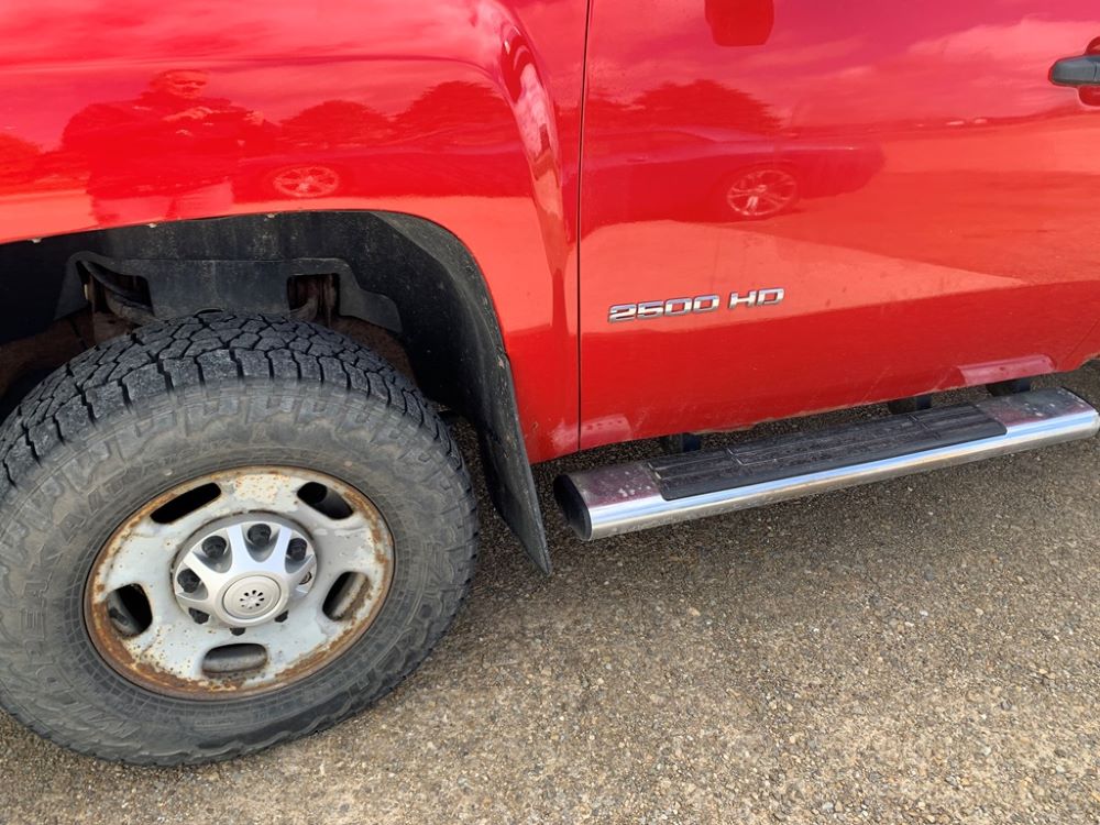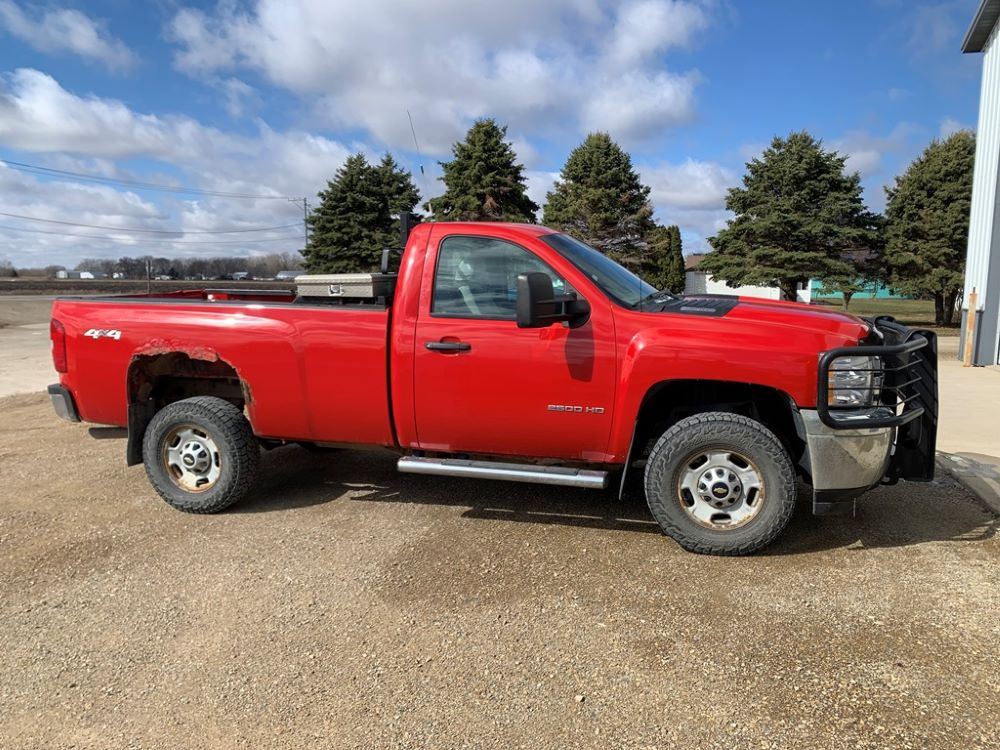 2013 Chevrolet 2500HD Pickup (CP3475, Unit F110), 4x4, Vortec gas engine, automatic transmission, air conditioning, heat, Am/Fm radio, cruise control, power windows & locks, grill guard, running boards, 5th wheel ball, rear hitch, LT265/70R17 tires, shows 173,381 miles.