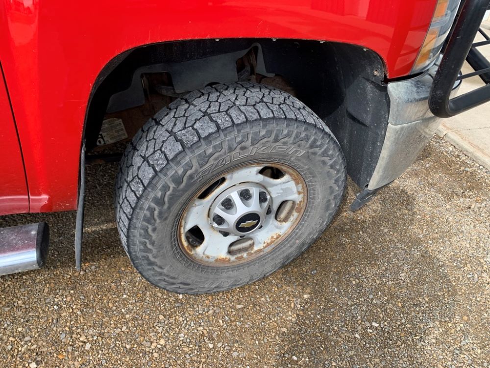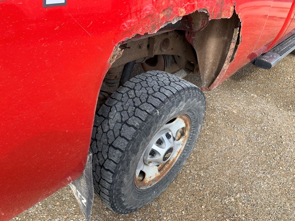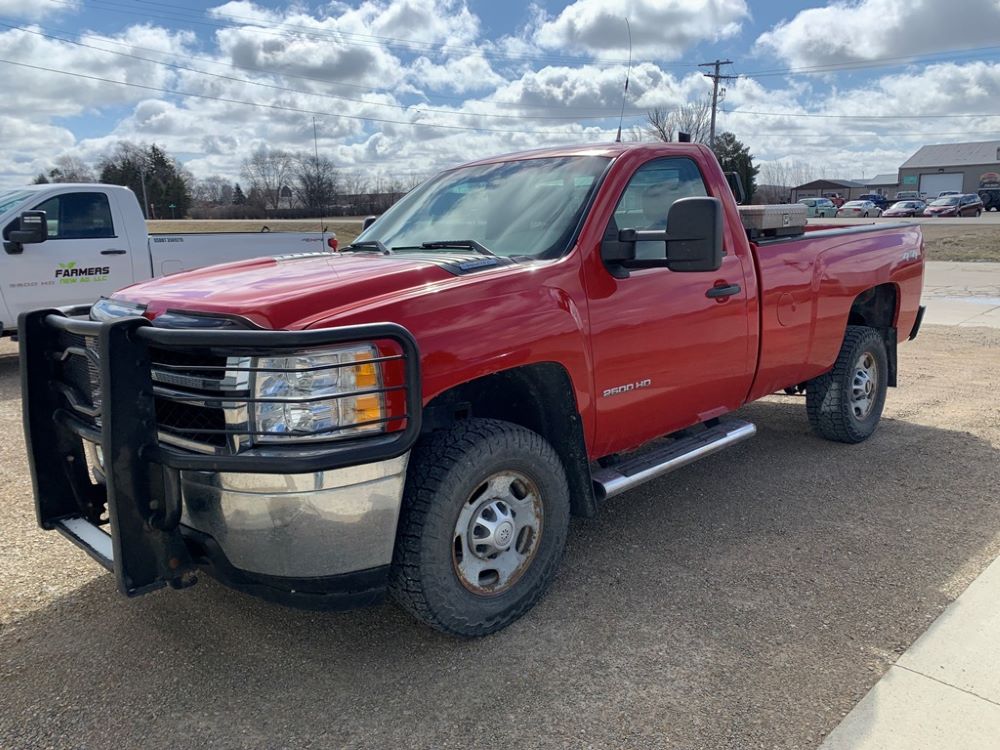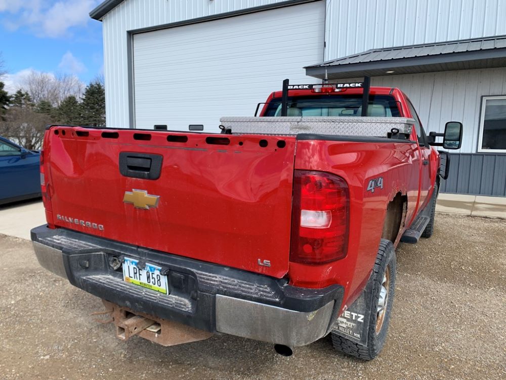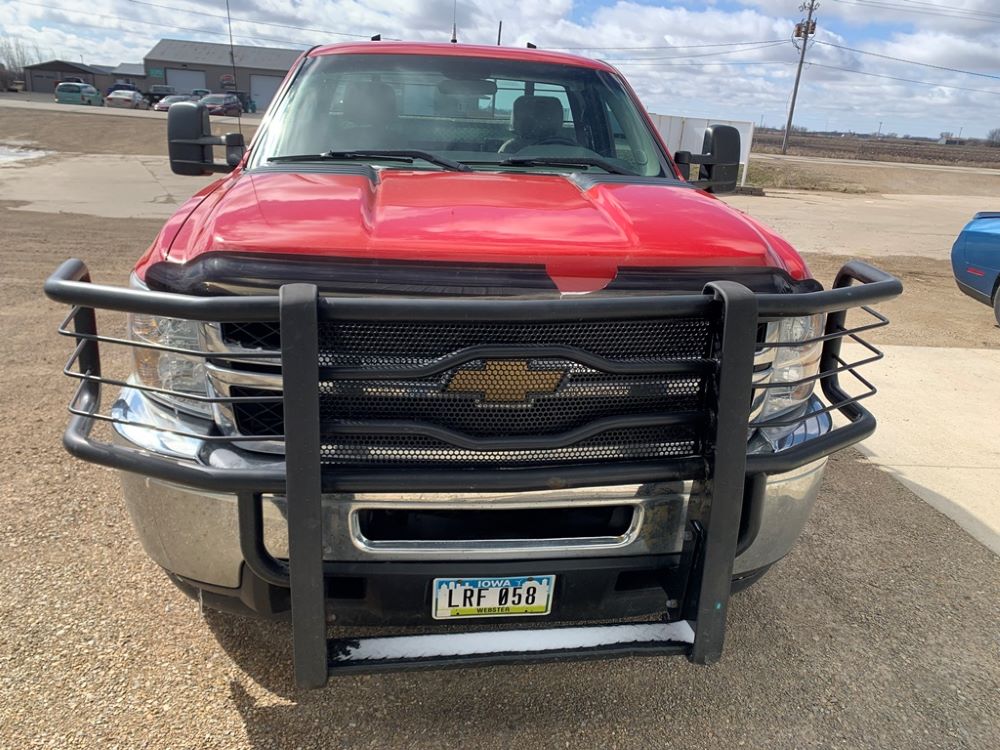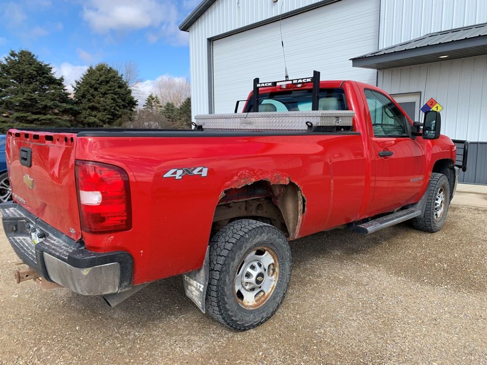 2013 Chevrolet 2500HD Pickup (CP3475, Unit F110), 4x4, Vortec gas engine, automatic transmission, air conditioning, heat, Am/Fm radio, cruise control, power windows & locks, grill guard, running boards, 5th wheel ball, rear hitch, LT265/70R17 tires, shows 173,381 miles.