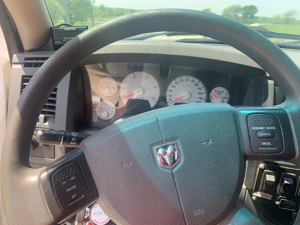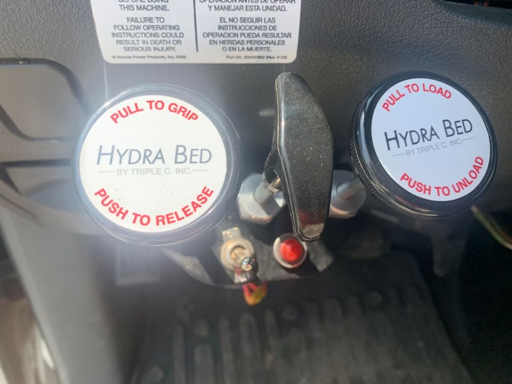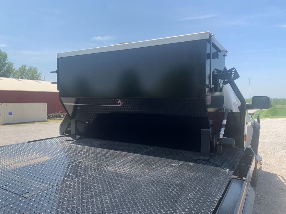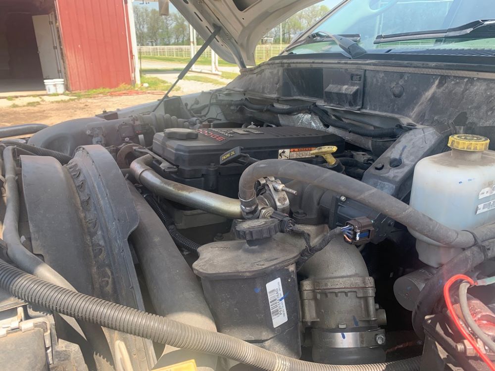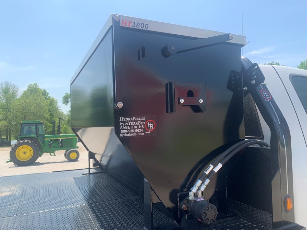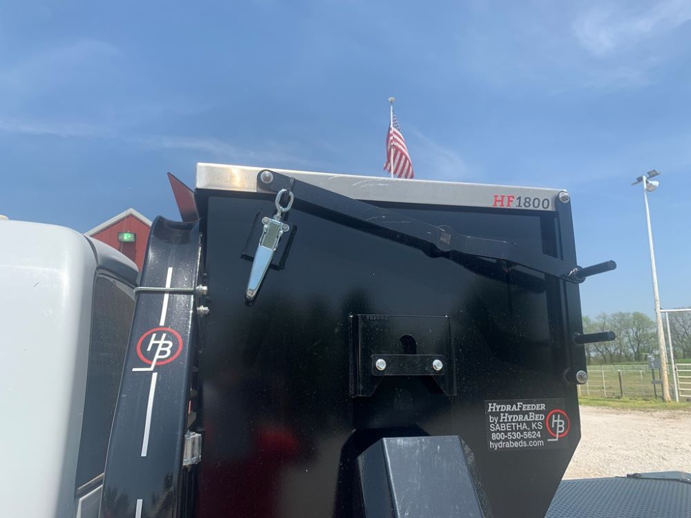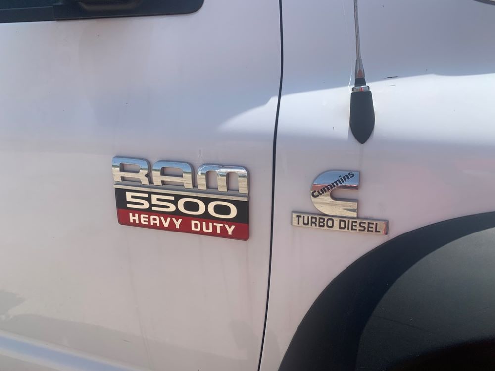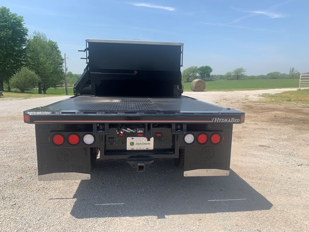 2009 Dodge Ram 5500 Heavy Duty 4x4 Pickup (CP3842), Cummins 6.7L turbo diesel engine, remanufactured automatic transmission, heat, air conditioning, Am/Fm radio, cruise control, HydraBed Model HB3350 Bale Lift w/ HydraFeeder HF1800, dually, front grill guard, running boards, rear receiver hitch, 265/70R19.5 tires, shows 194,234 miles.