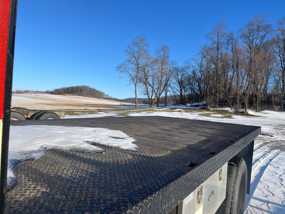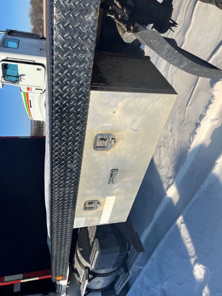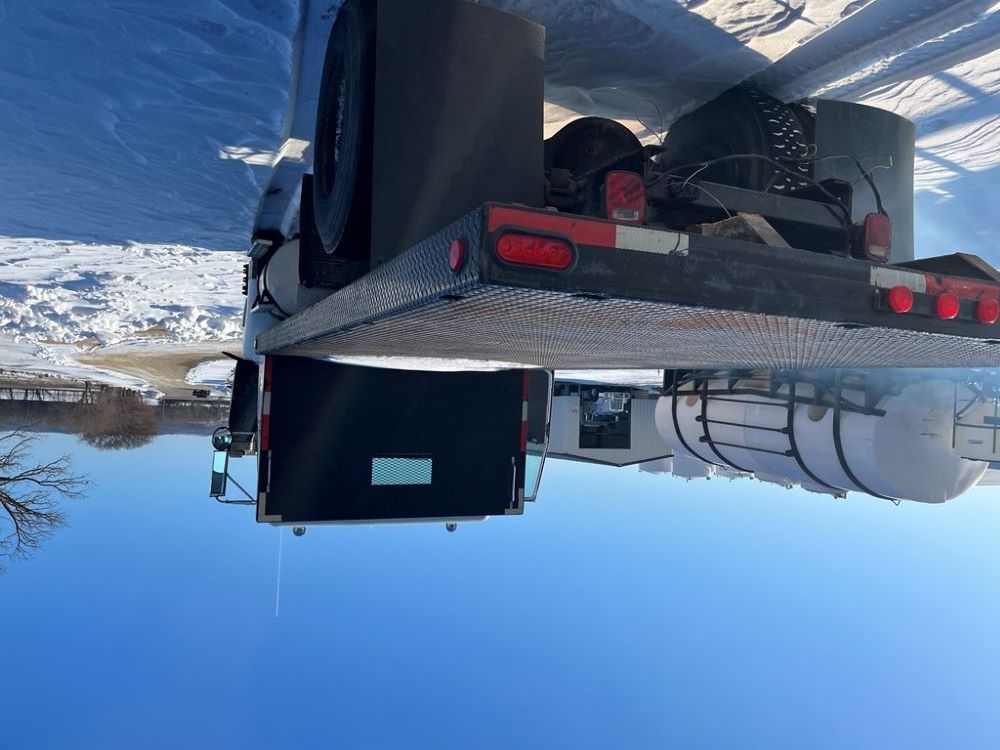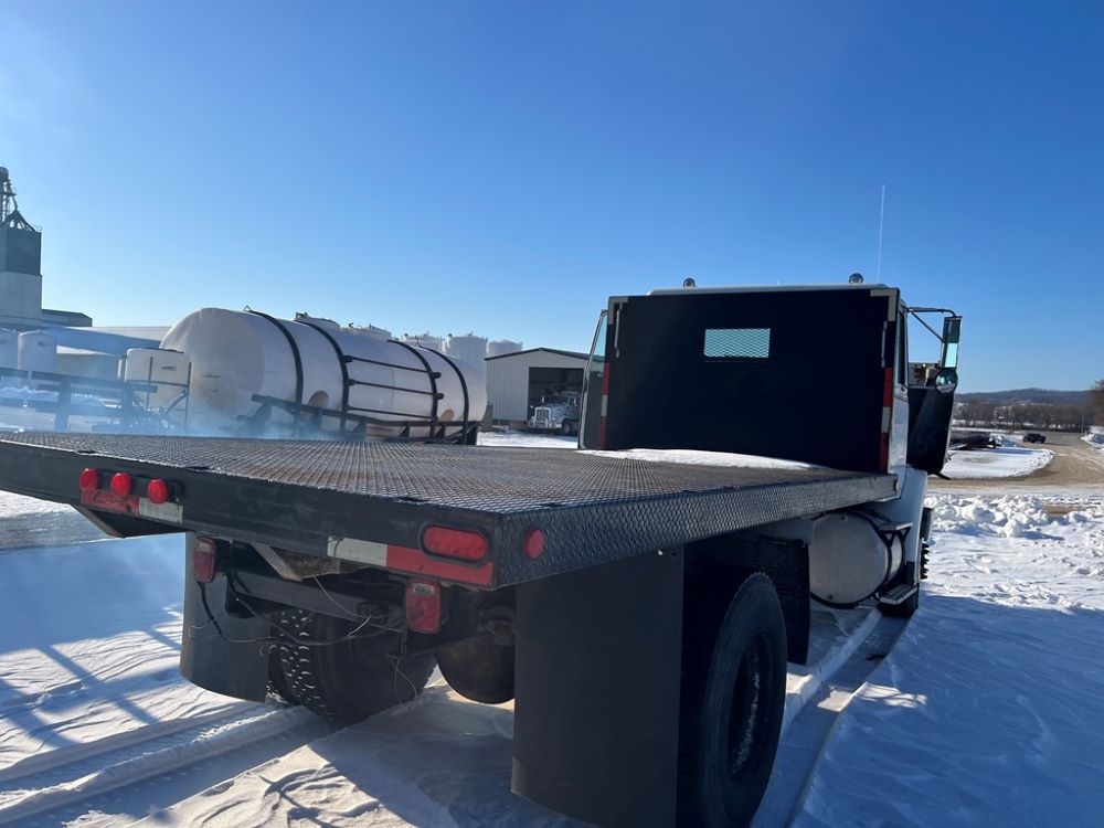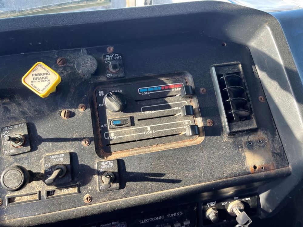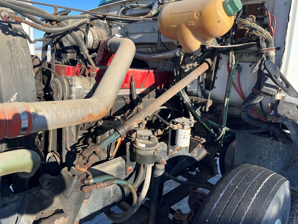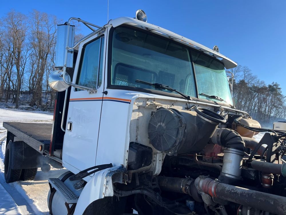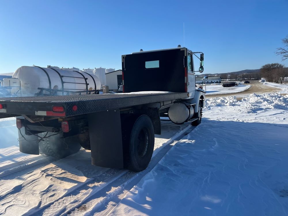 1996 Volvo Flatbed Truck (DR8113 Unit 6654), Cummins diesel engine, 10 speed transmission, single axle, dual aluminum fuel tanks, frame mounted storage box, 16' steel flatbed, cab heat/air conditioning, 22.5 tires.