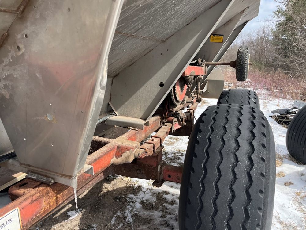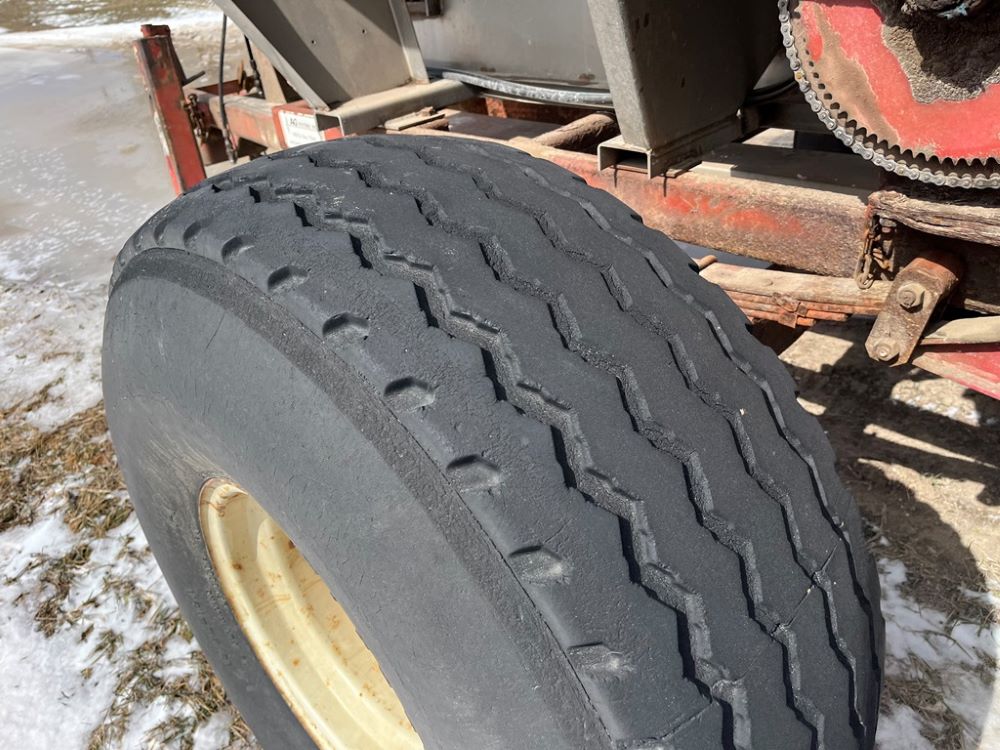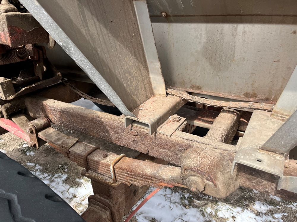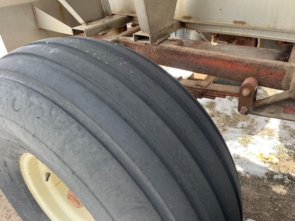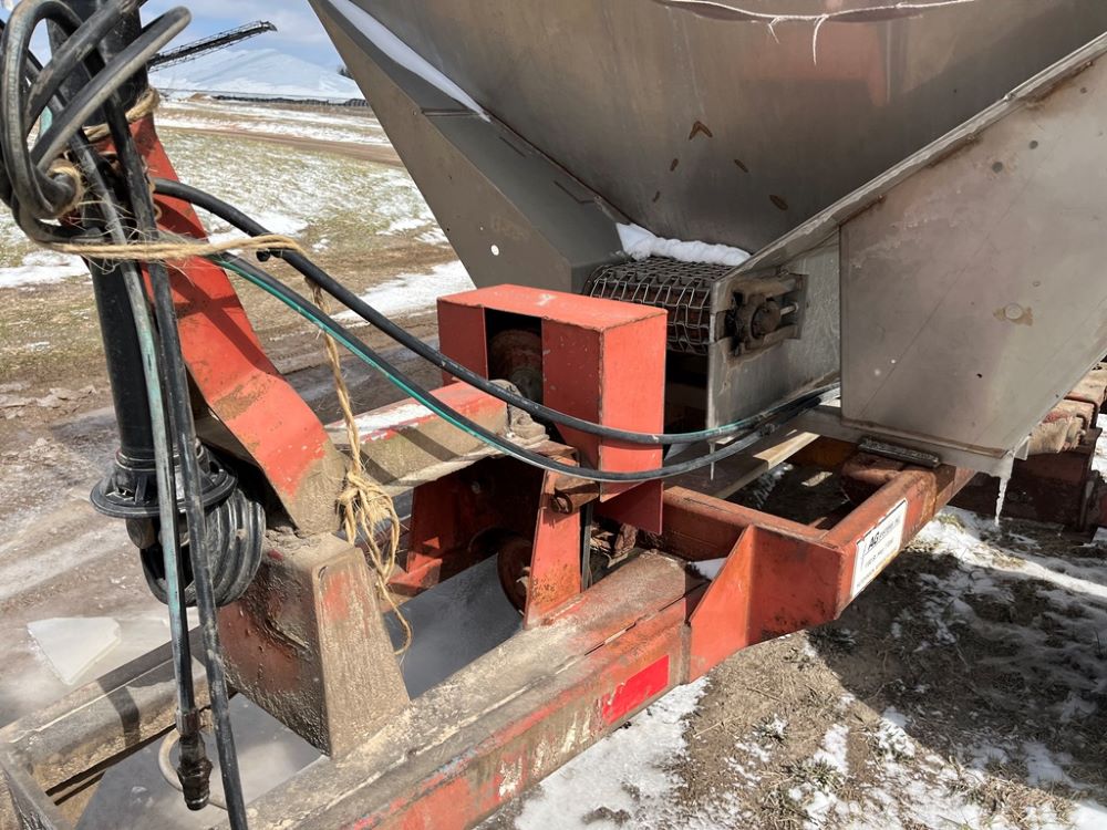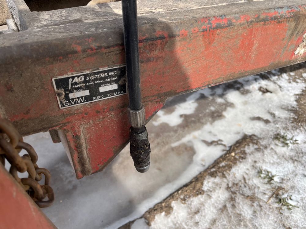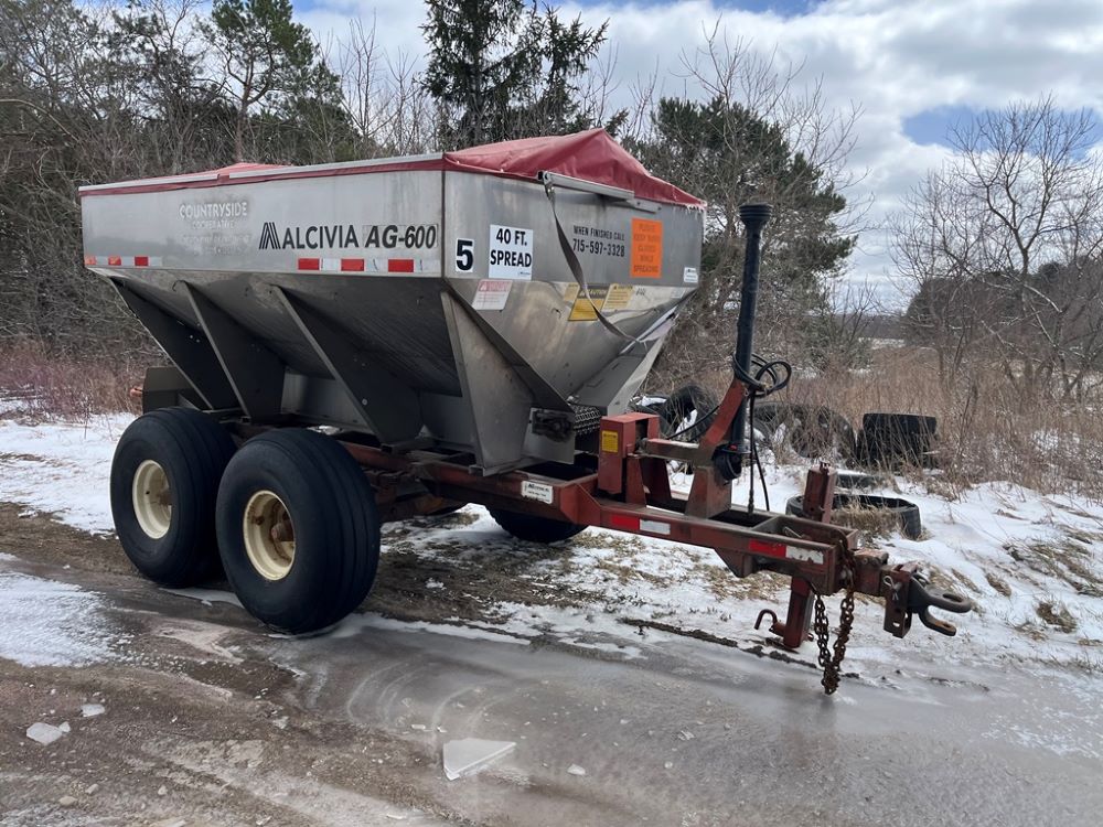 Ag Systems Spreader (DR8099), model AG600 stainless steel dry spreader buggy, dual ground drive rear spinner pans, PTO drive web chain w/hydraulic shutoff, manual tarp, 16.5L-16.1 tires.
