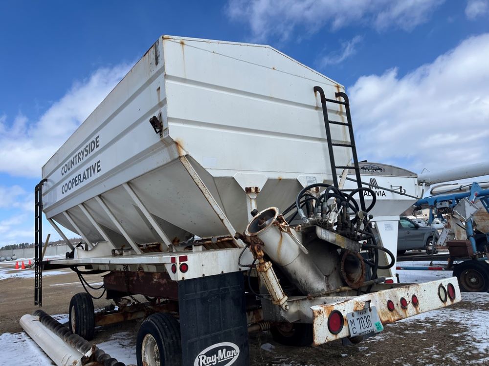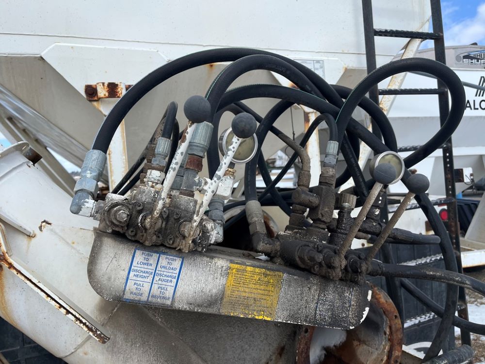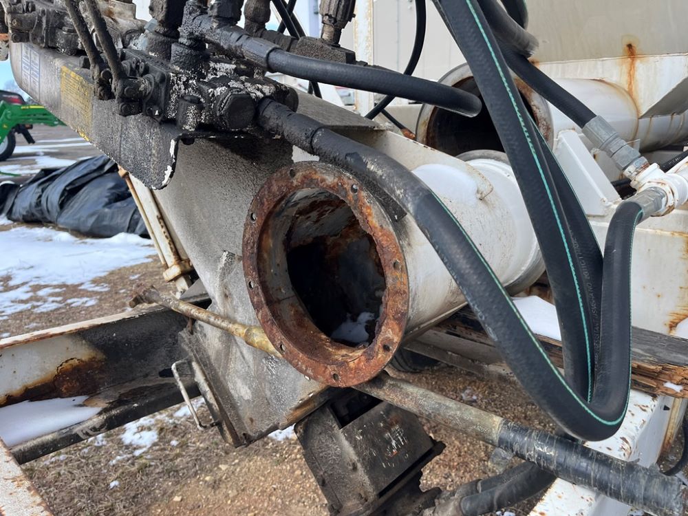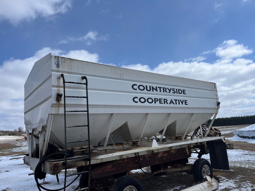 Dry Tender Box (DR8101), stainless steel hydraulic dry tender box, side discharge auger, PTO pump.