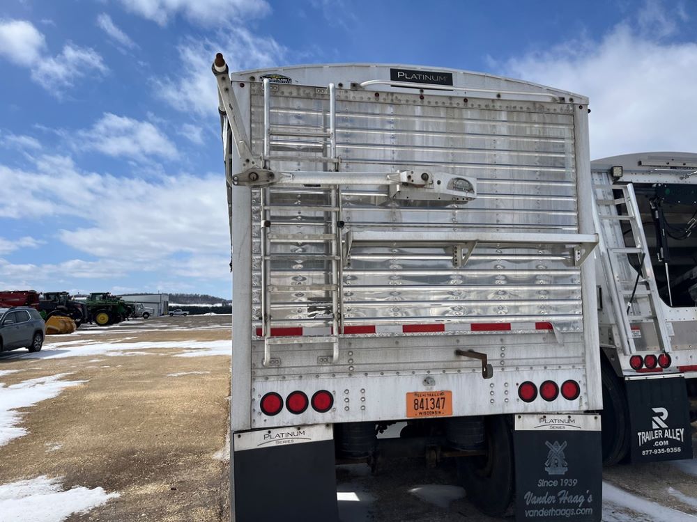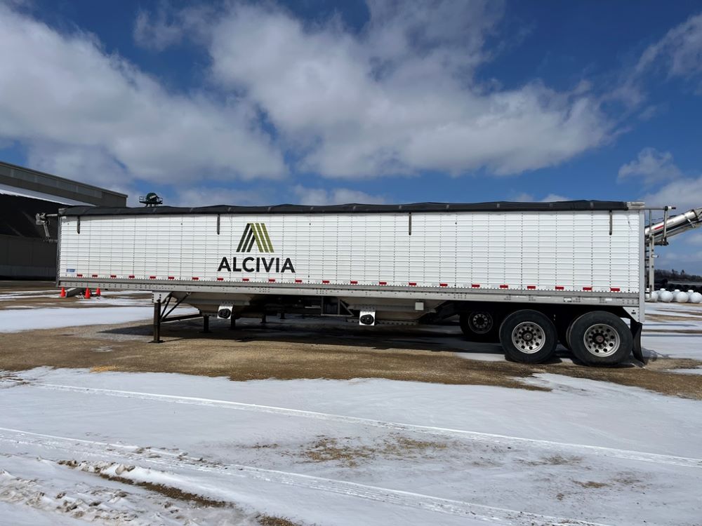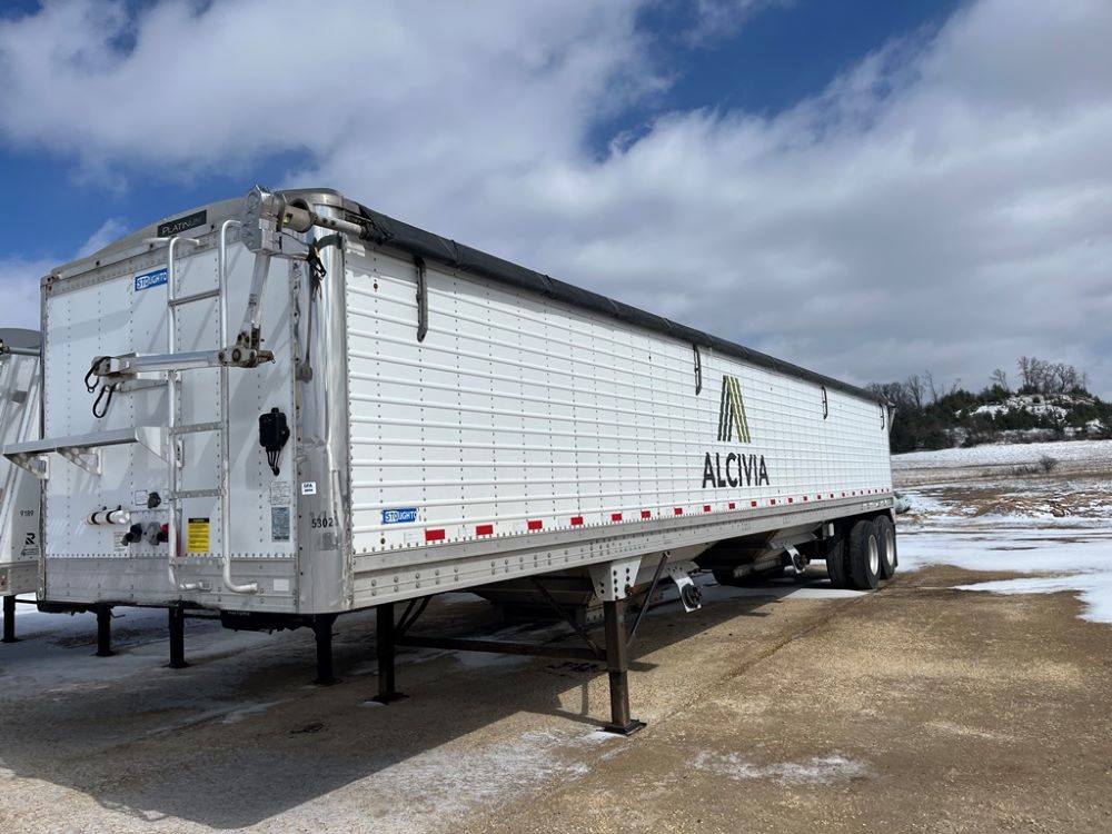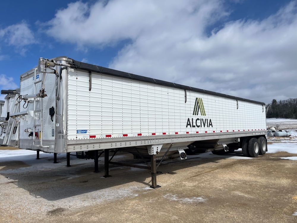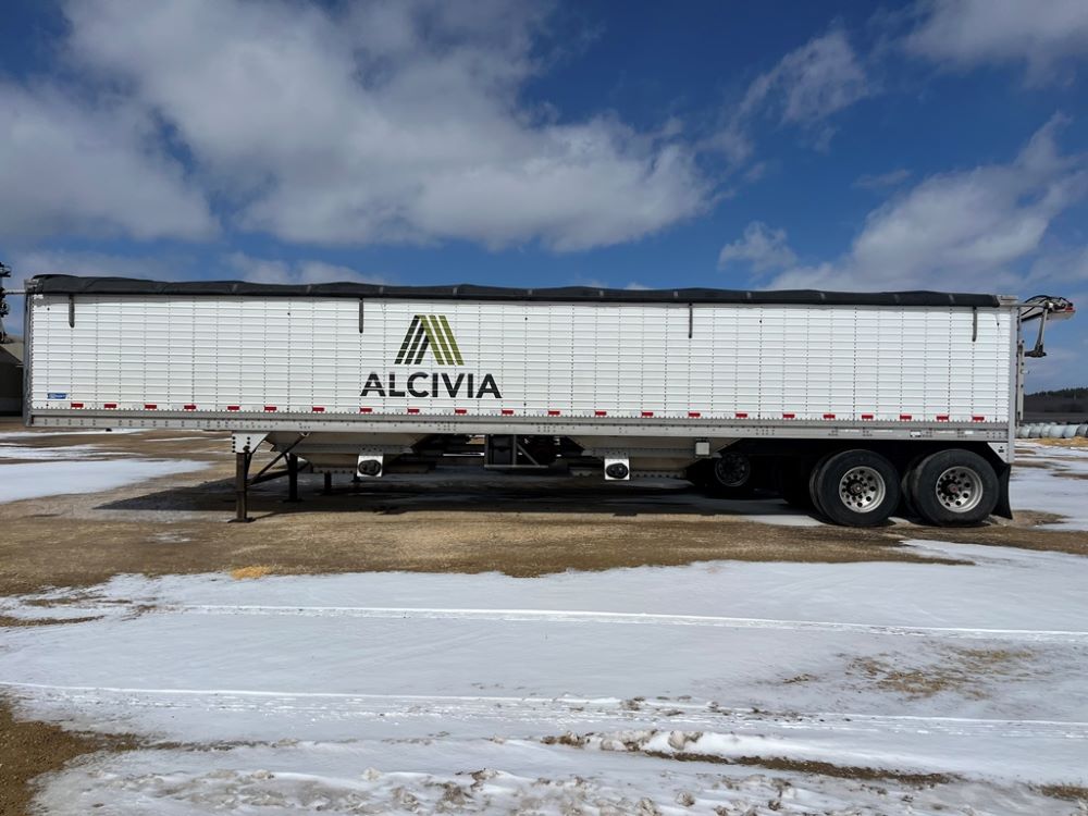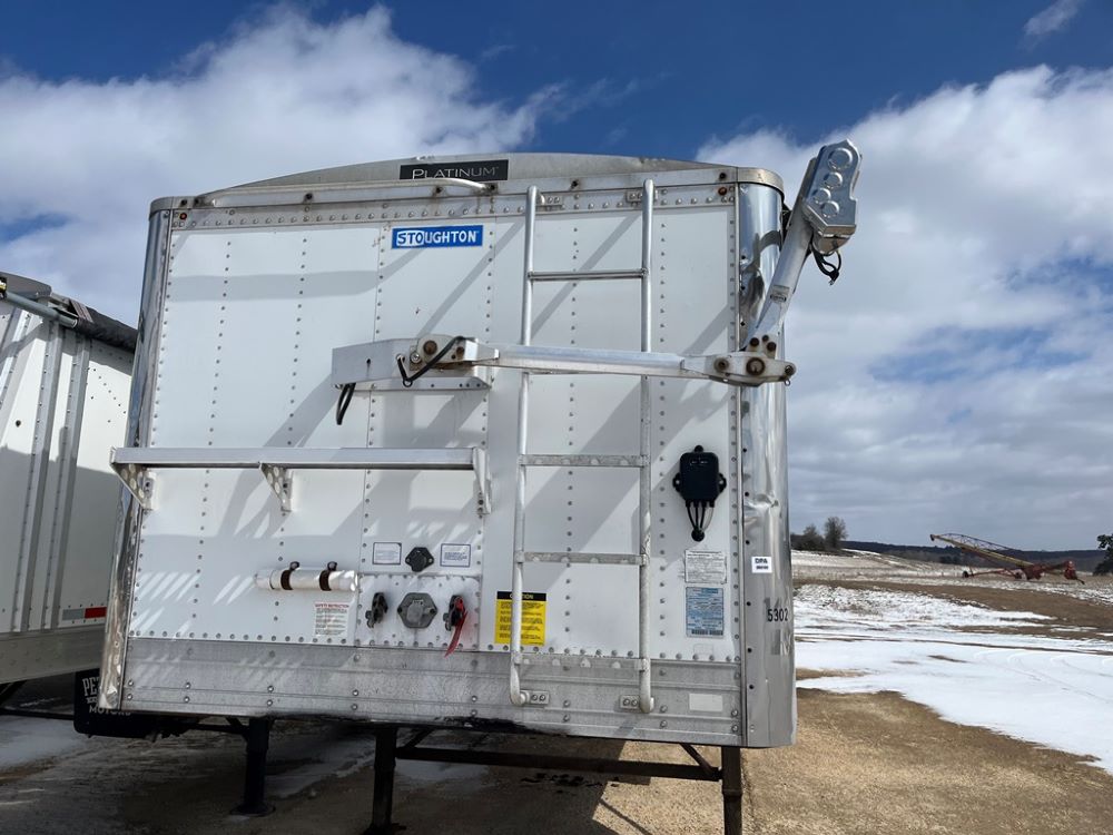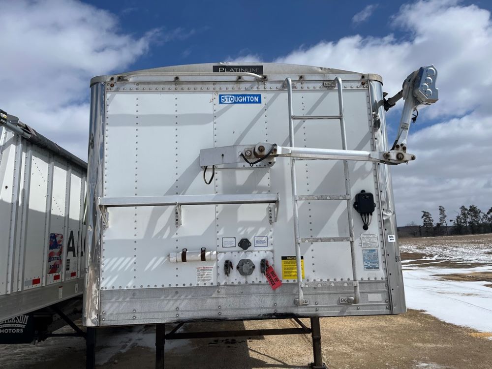 2015 Stoughton Hopper Trailer (DR8100 Unit 5302), aluminum grain hopper trailer, 66'' sides, electric roll over tarp, ag hoppers, air ride suspension, tandem axle, 22.5 tires, all aluminum wheels.