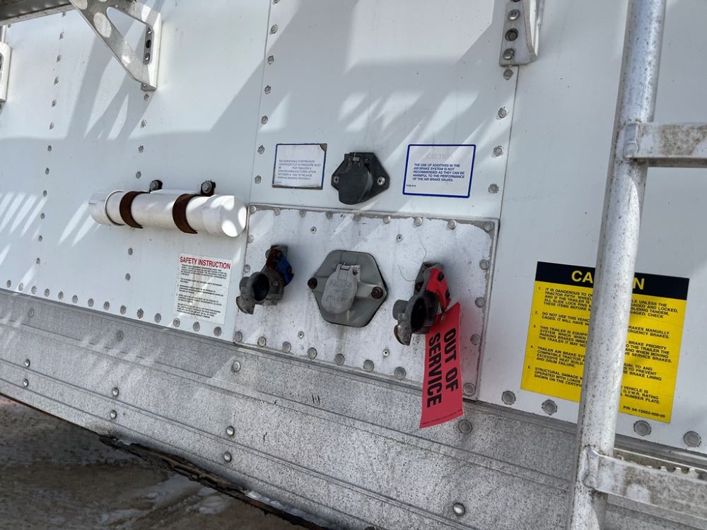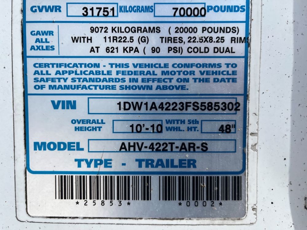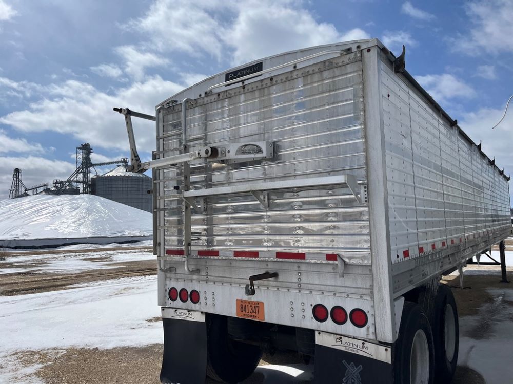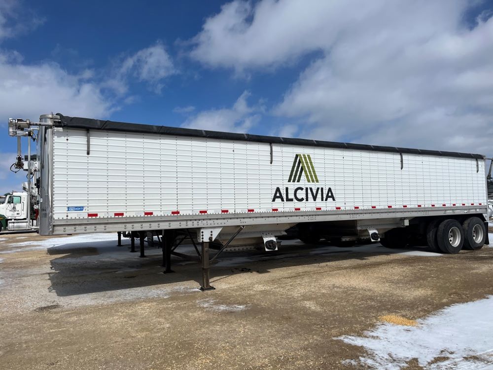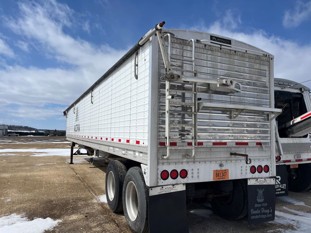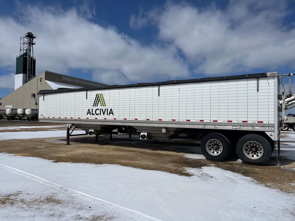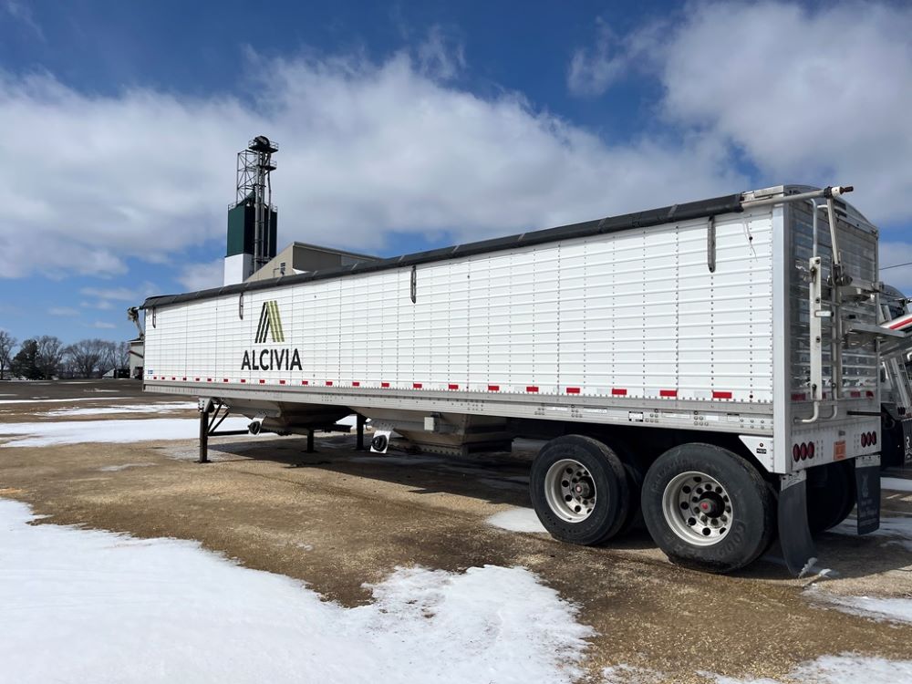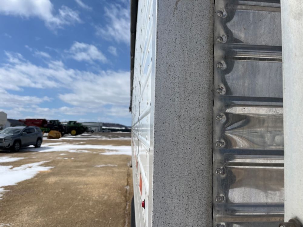 2015 Stoughton Hopper Trailer (DR8100 Unit 5302), aluminum grain hopper trailer, 66'' sides, electric roll over tarp, ag hoppers, air ride suspension, tandem axle, 22.5 tires, all aluminum wheels.