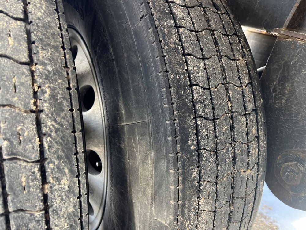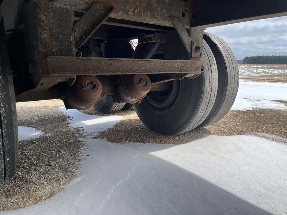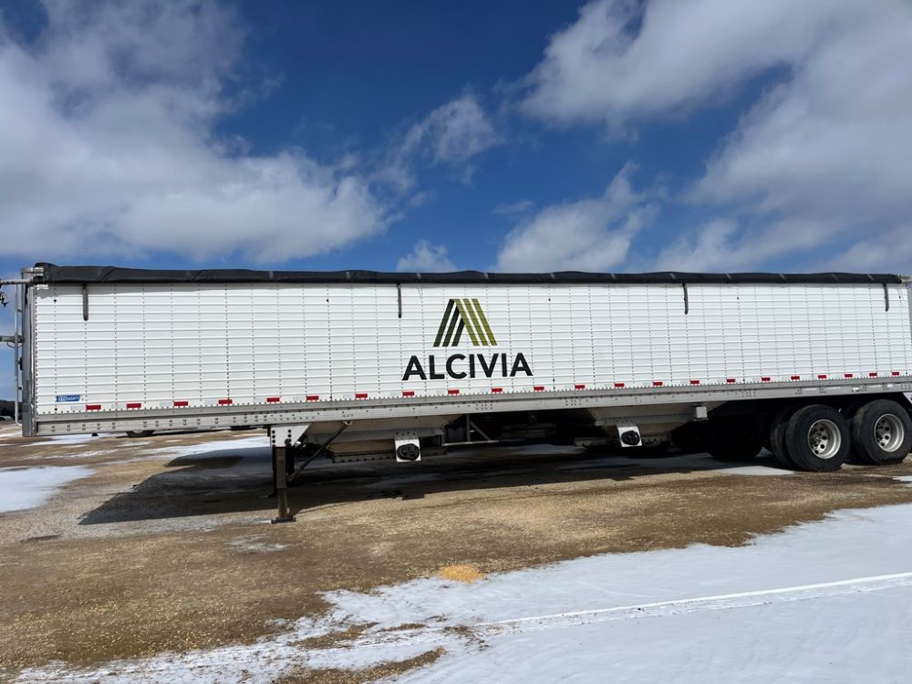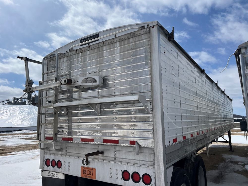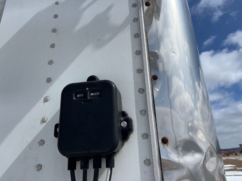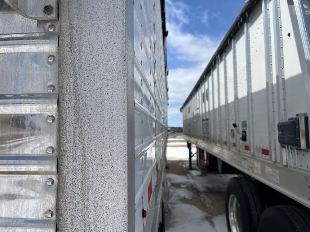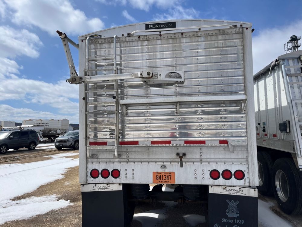 2015 Stoughton Hopper Trailer (DR8100 Unit 5302), aluminum grain hopper trailer, 66'' sides, electric roll over tarp, ag hoppers, air ride suspension, tandem axle, 22.5 tires, all aluminum wheels.