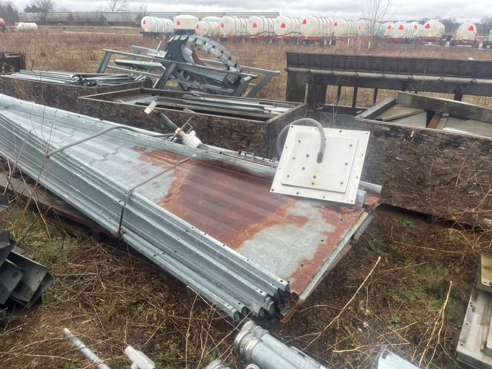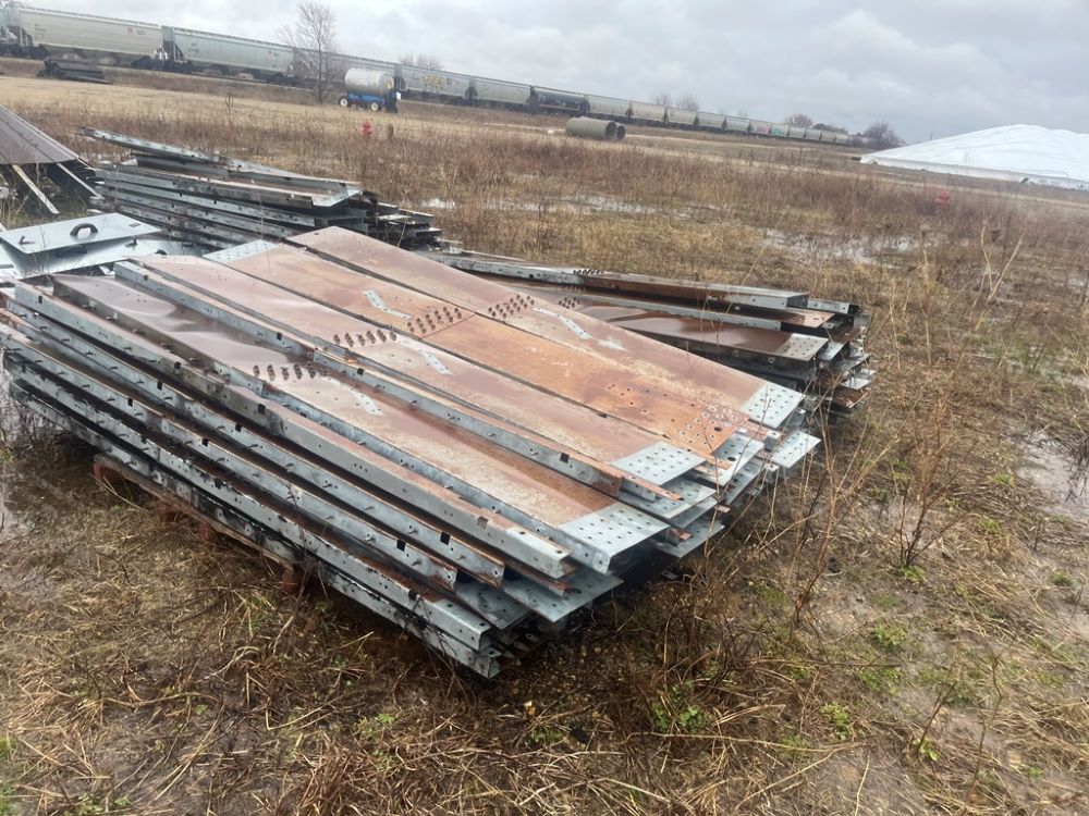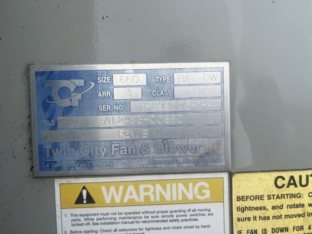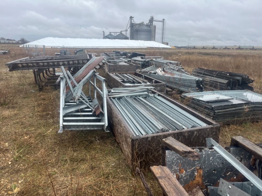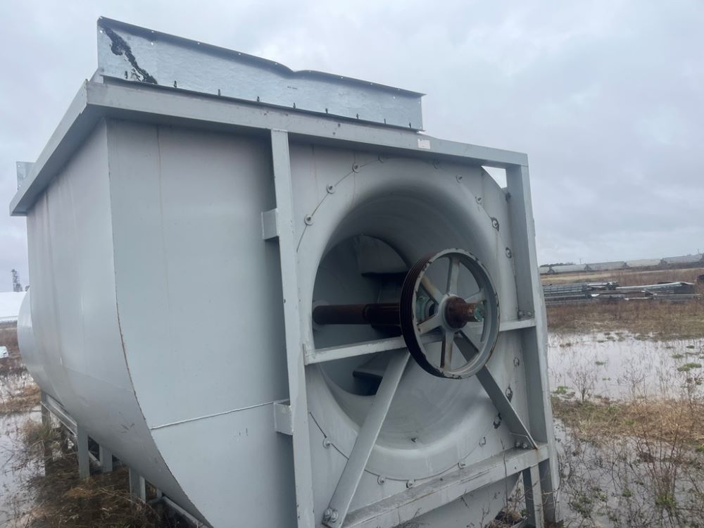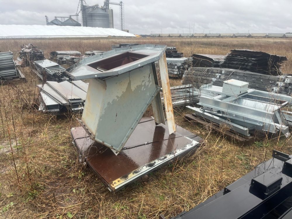 Brock Tower Dryer (DR8054), DAMAGED, 7000 BPH tower grain dryer, had a top end fire, is complete less electric motors, control panel, burners, 2-Twin City electric fans without motors, all down and on pallets.