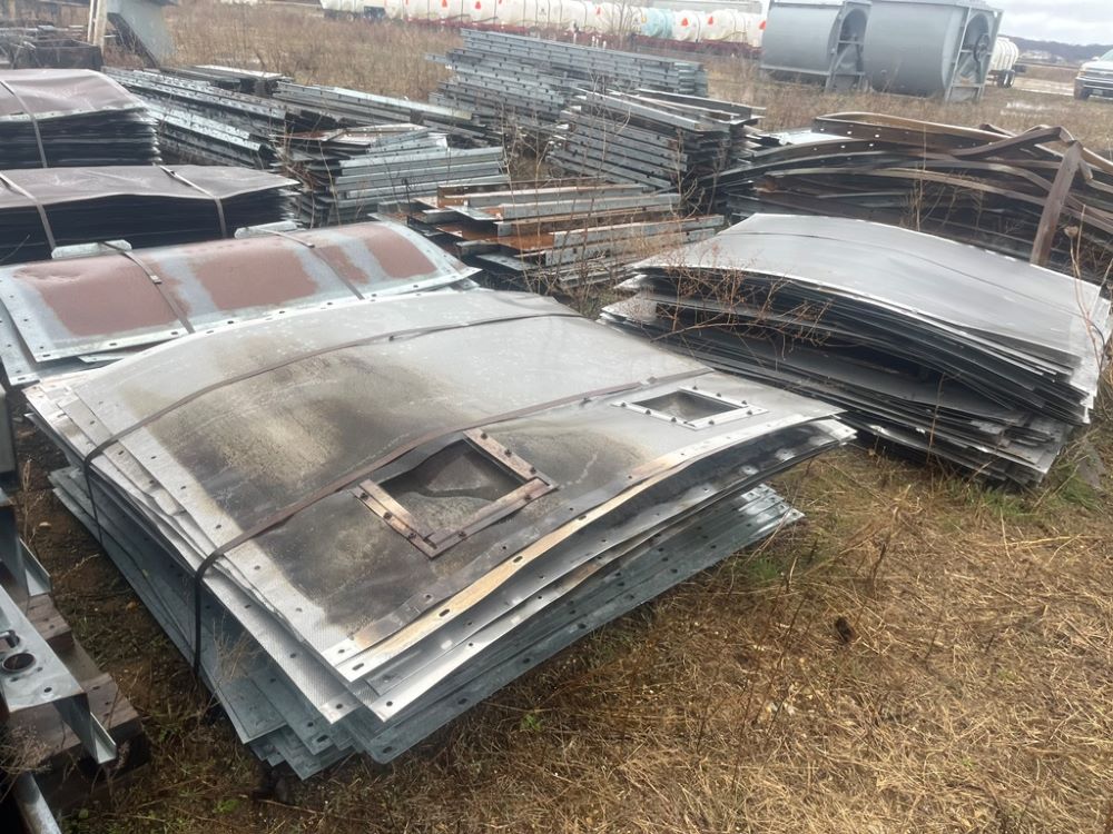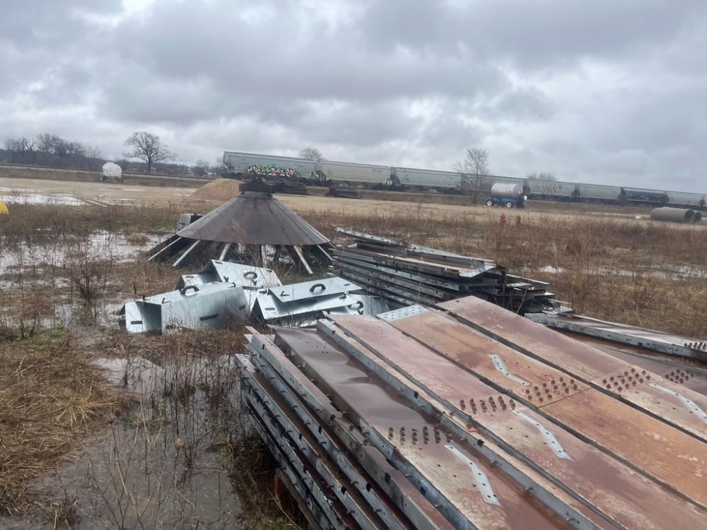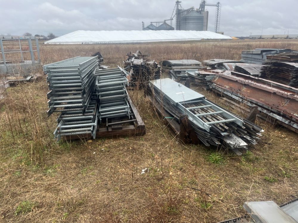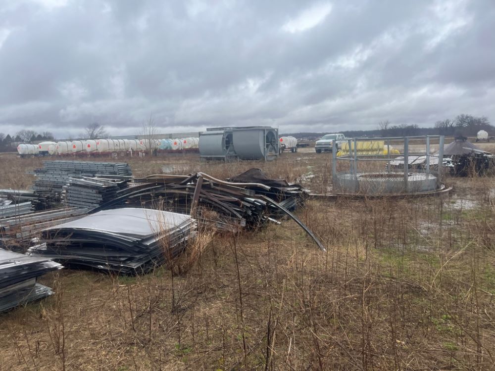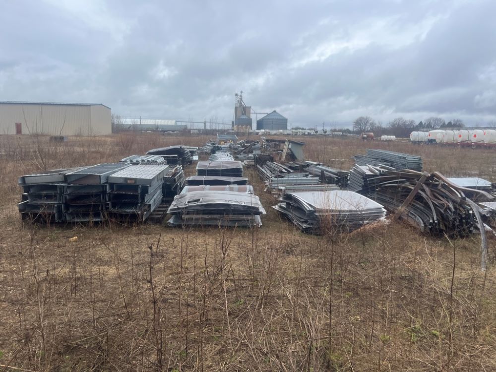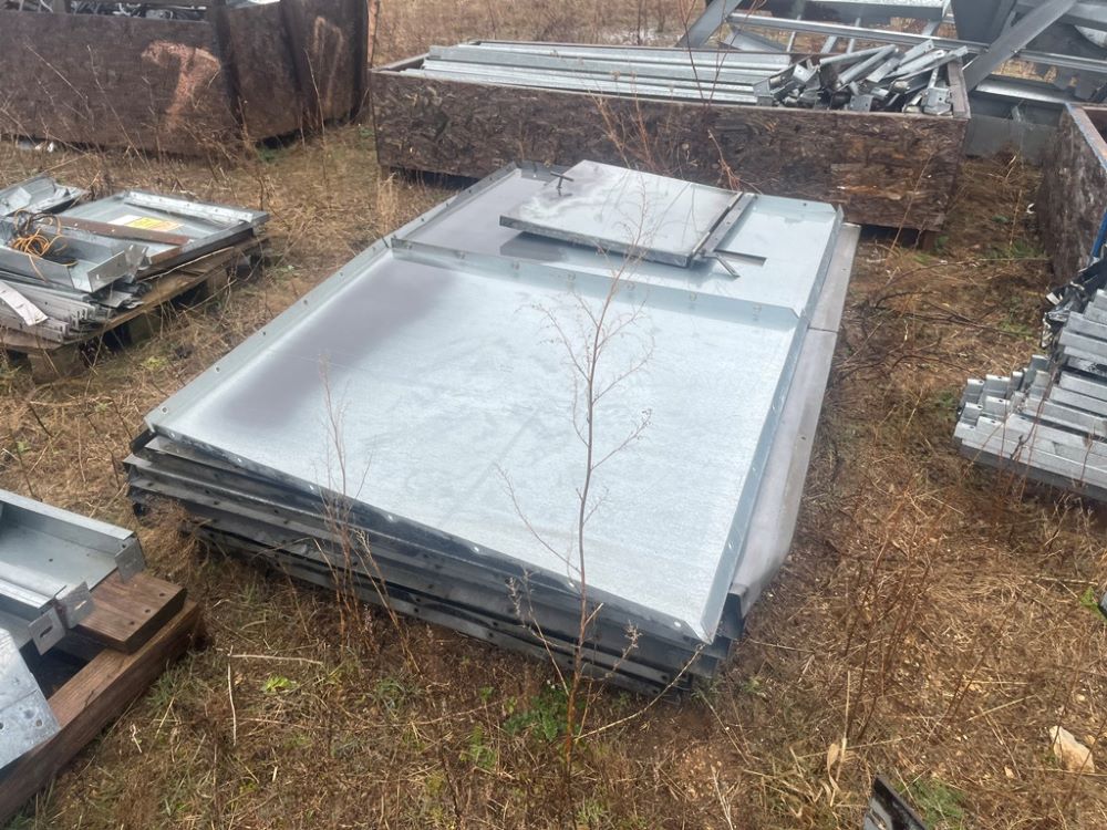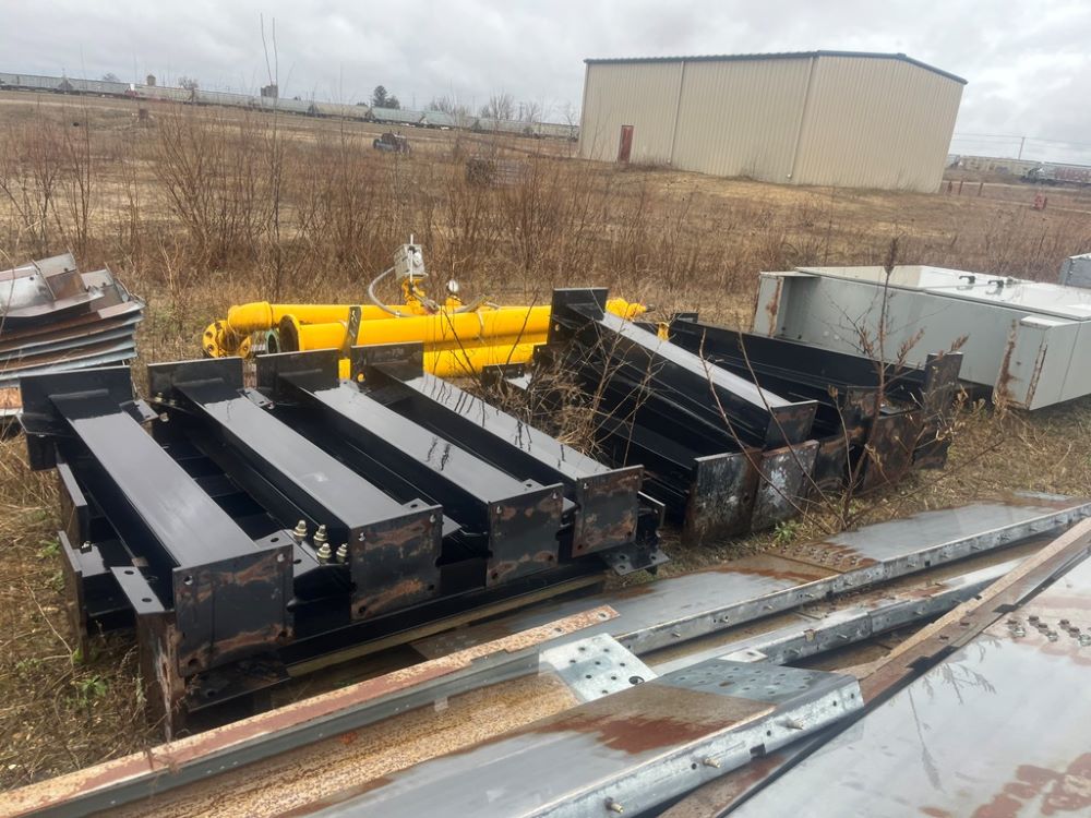 Brock Tower Dryer (DR8054), DAMAGED, 7000 BPH tower grain dryer, had a top end fire, is complete less electric motors, control panel, burners, 2-Twin City electric fans without motors, all down and on pallets.
