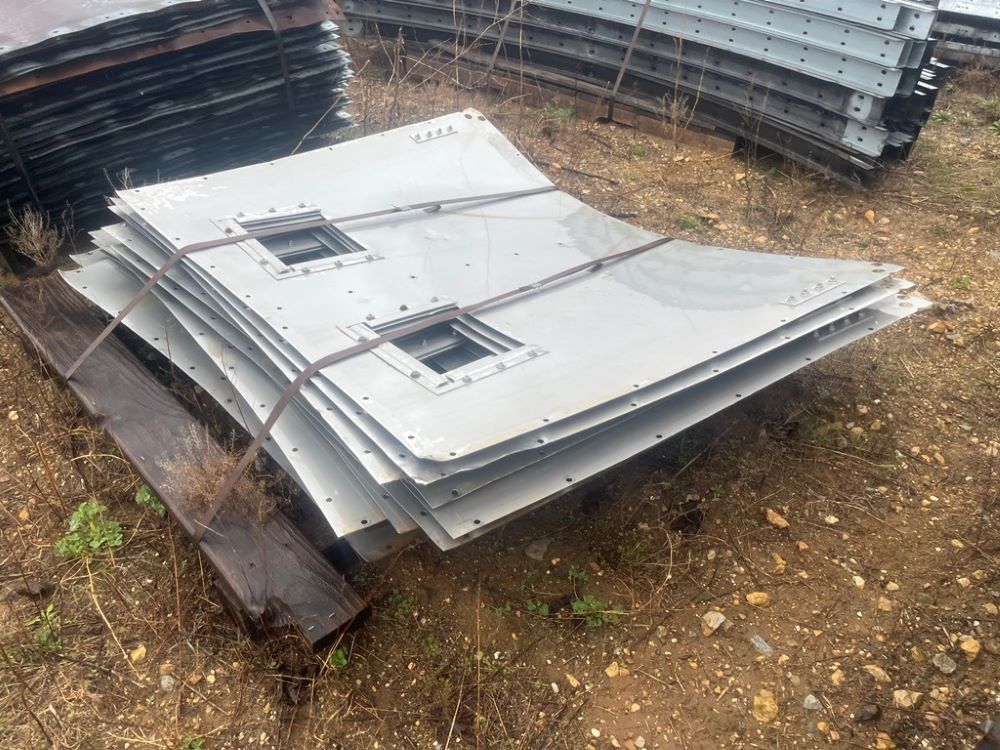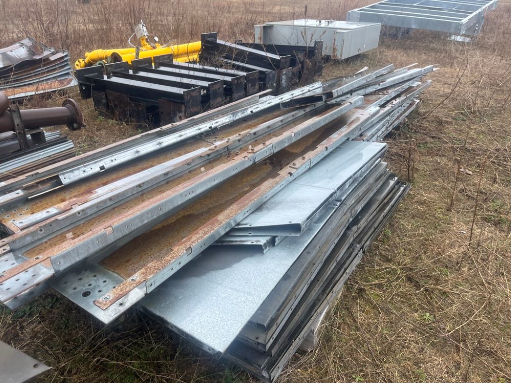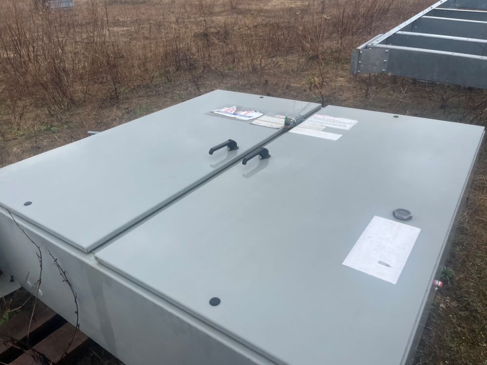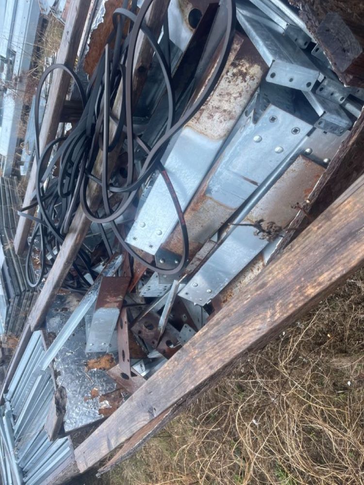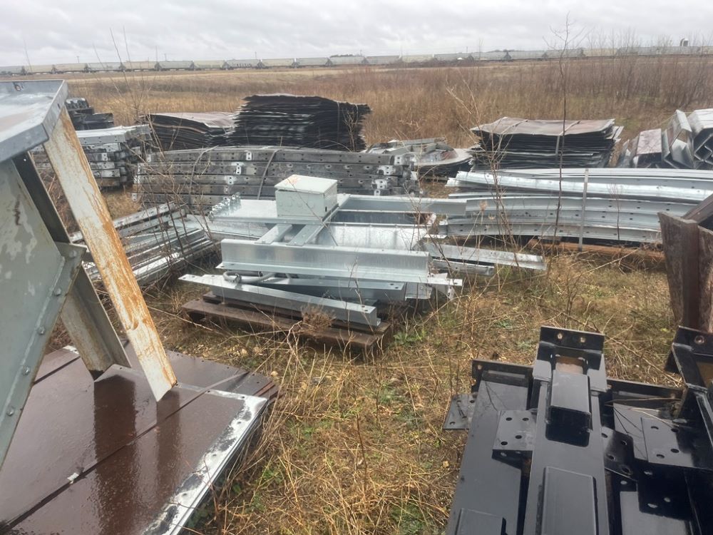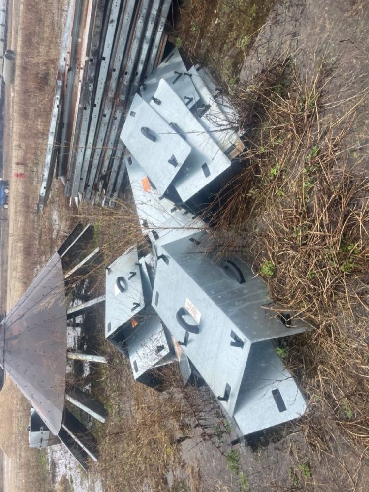Brock Tower Dryer (DR8054), DAMAGED, 7000 BPH tower grain dryer, had a top end fire, is complete less electric motors, control panel, burners, 2-Twin City electric fans without motors, all down and on pallets.