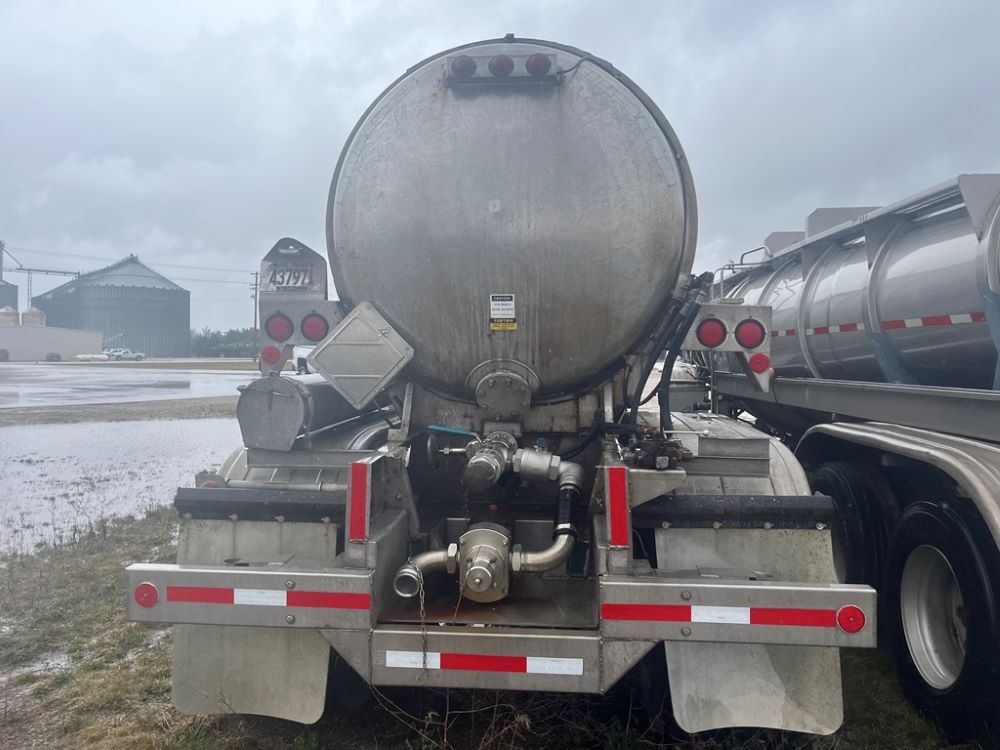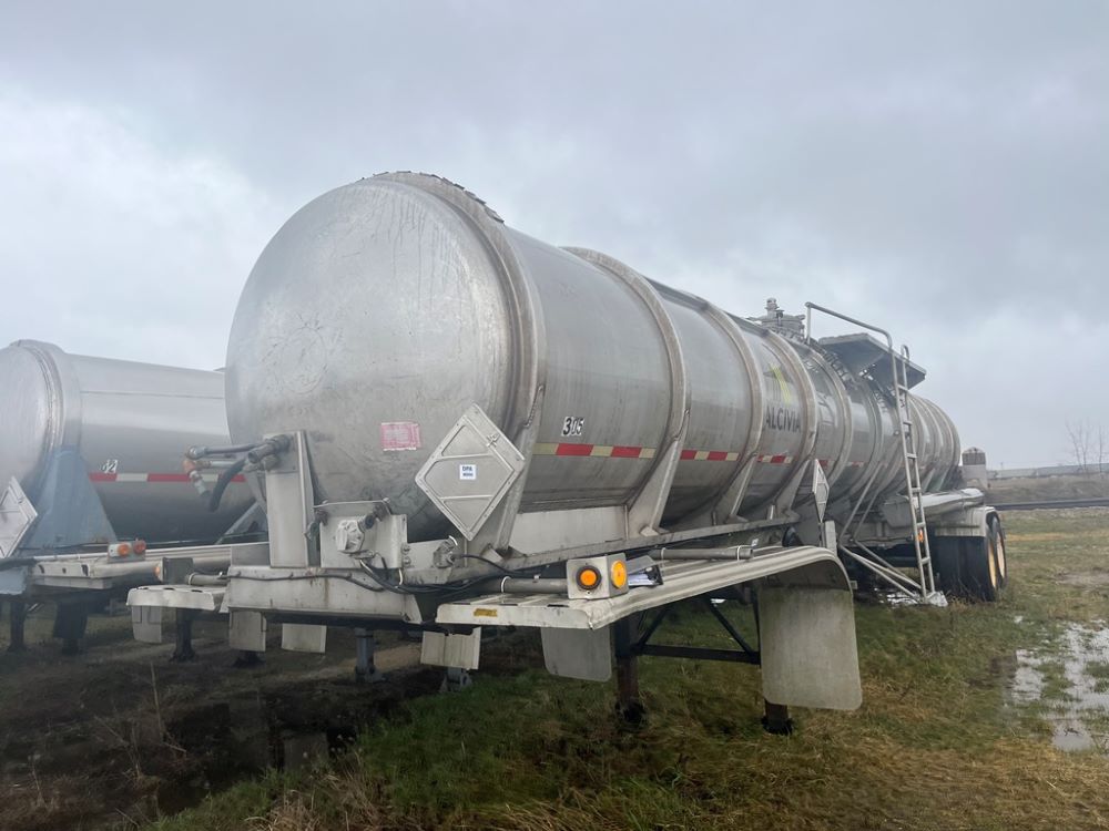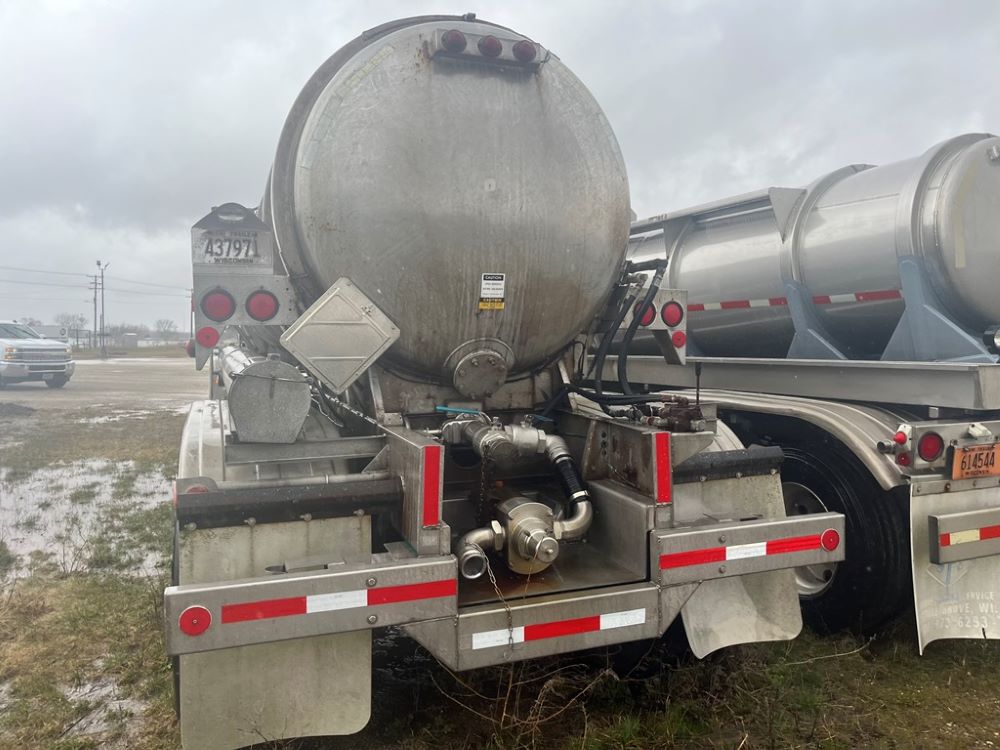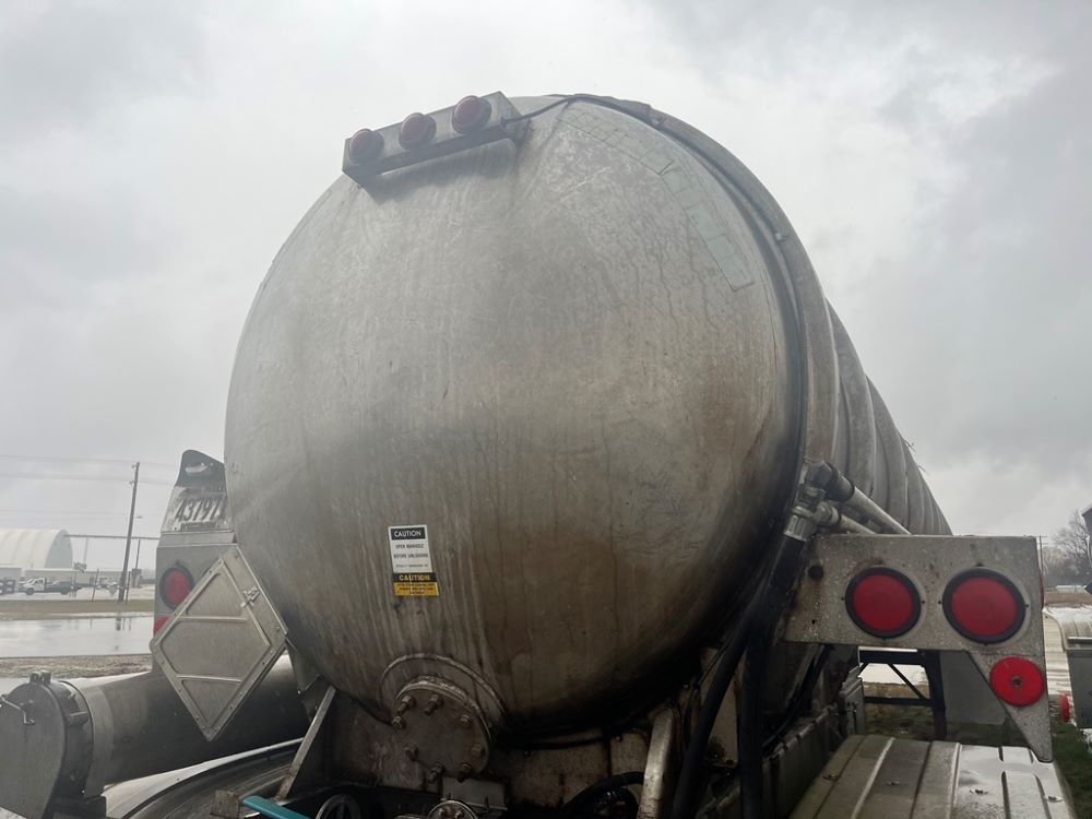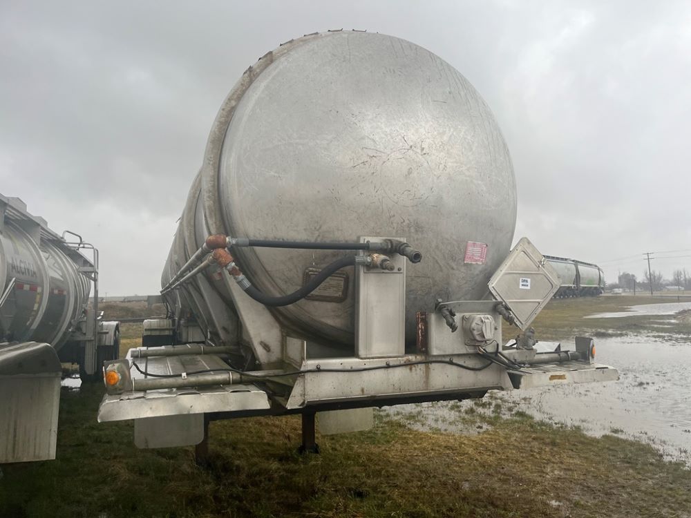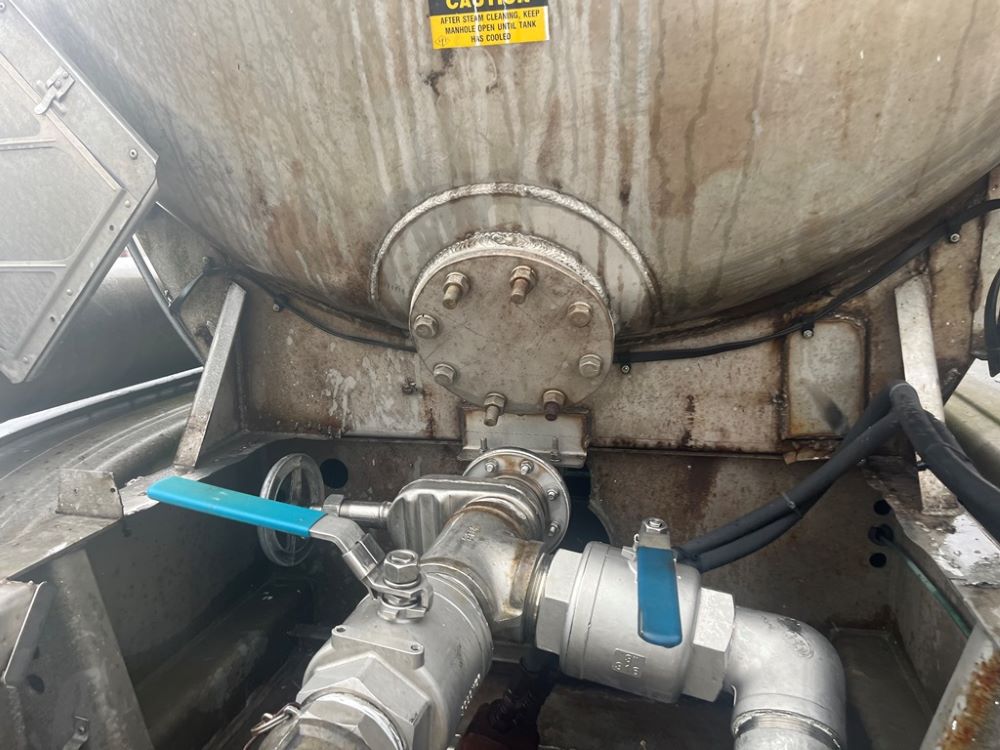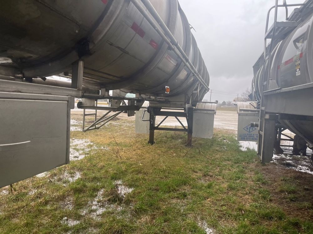 1979 Fruehauf Liquid Trailer (DR8056 Unit 5012), single compartment stainless steel liquid trailer, 5,500 gallon capacity, PTO hydraulic pump, rear discharge, tandem axle, data tag, 24.5 tires.