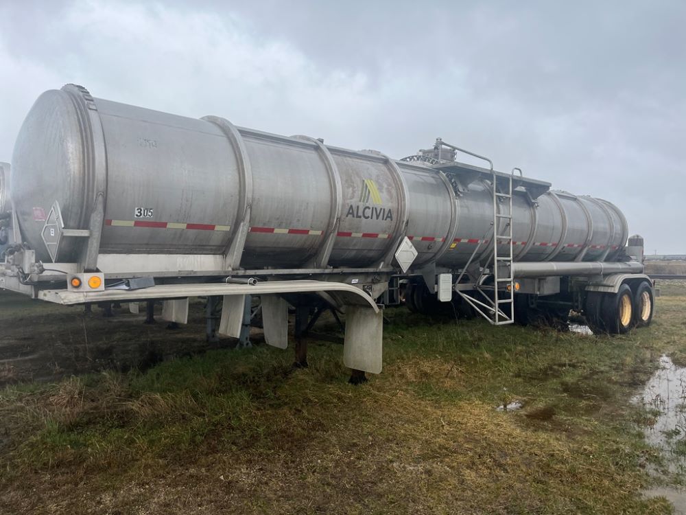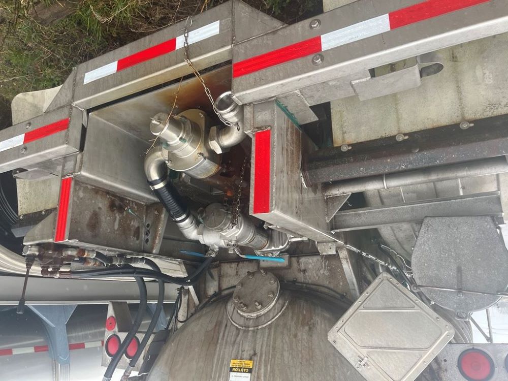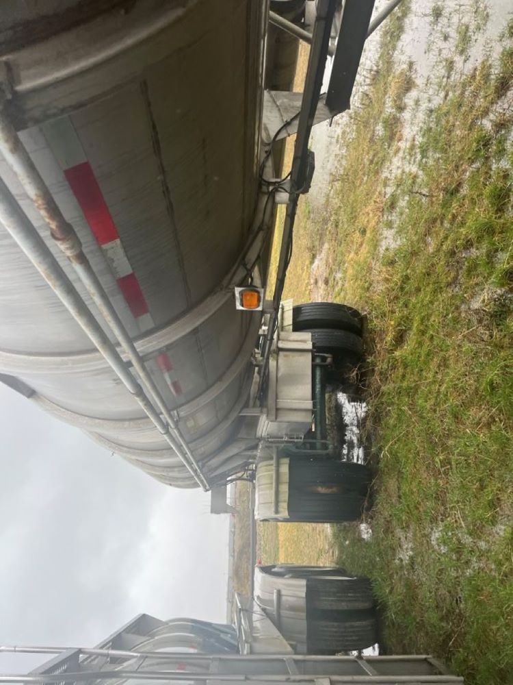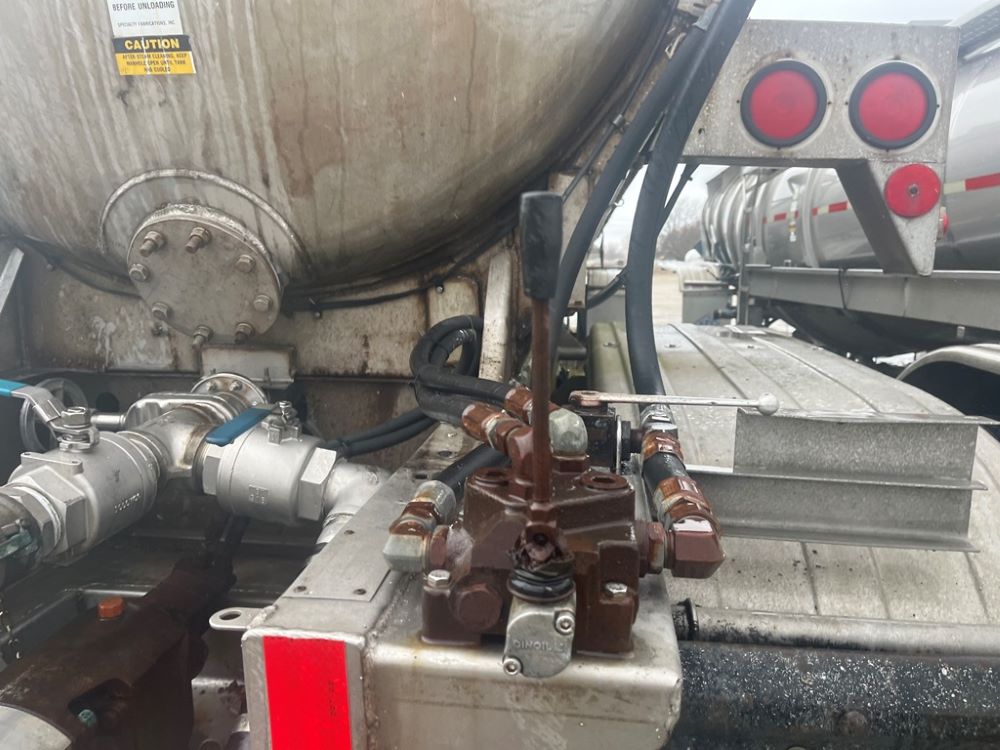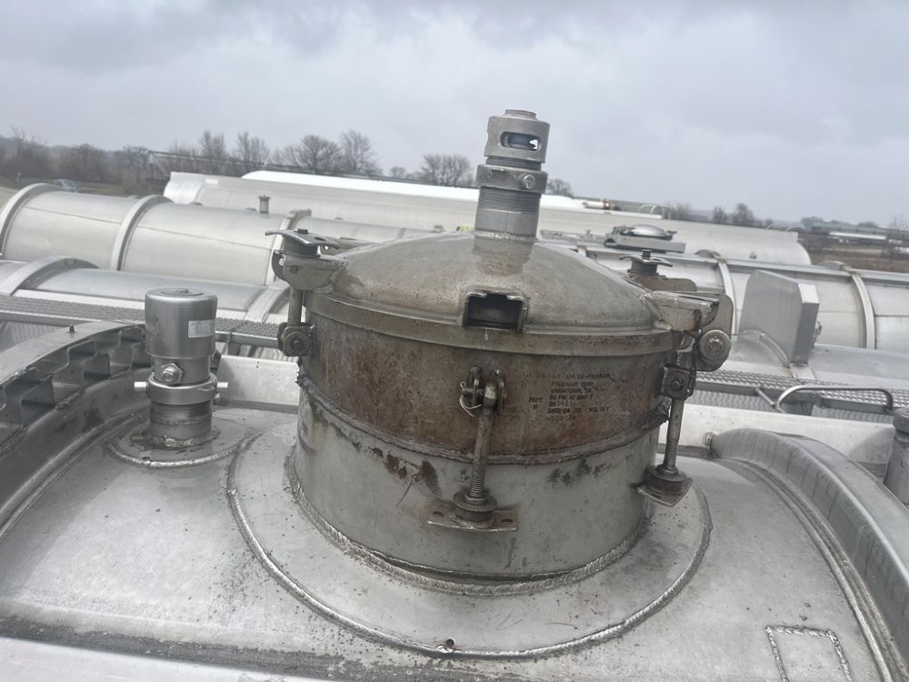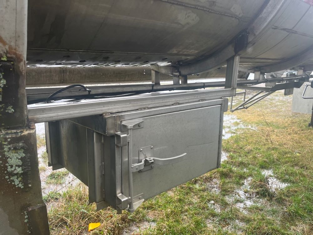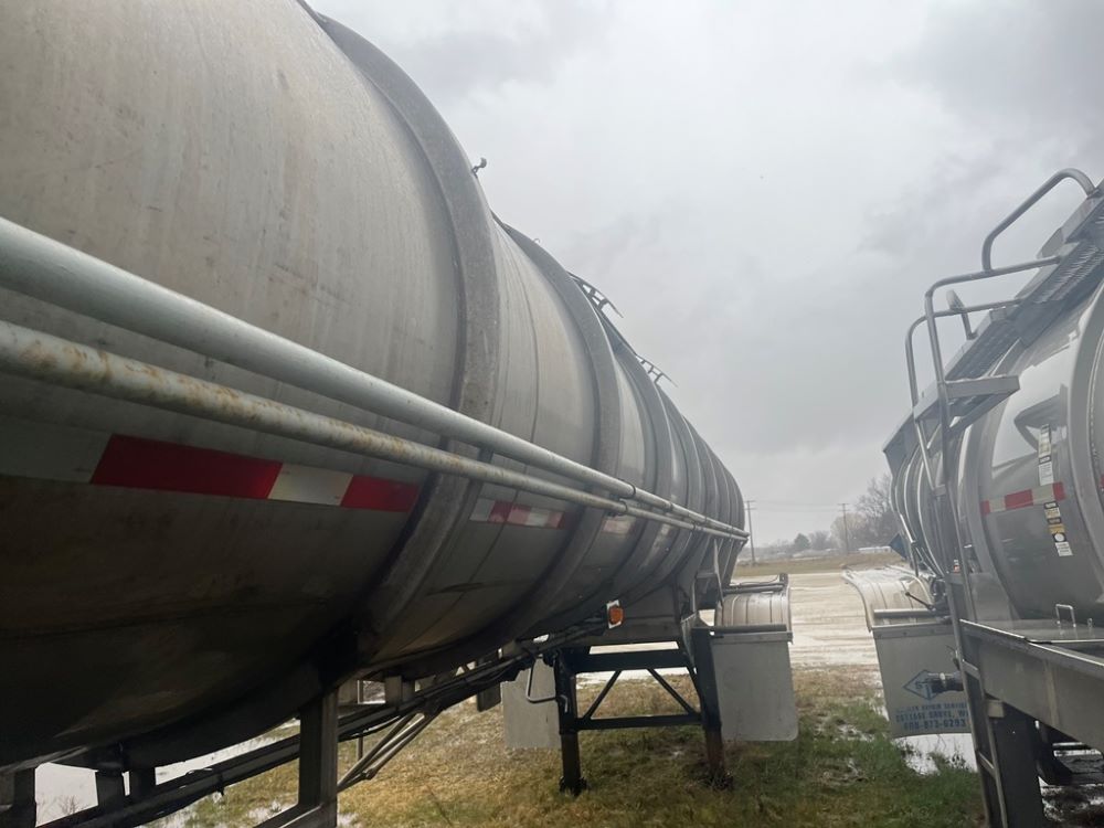 1979 Fruehauf Liquid Trailer (DR8056 Unit 5012), single compartment stainless steel liquid trailer, 5,500 gallon capacity, PTO hydraulic pump, rear discharge, tandem axle, data tag, 24.5 tires.
