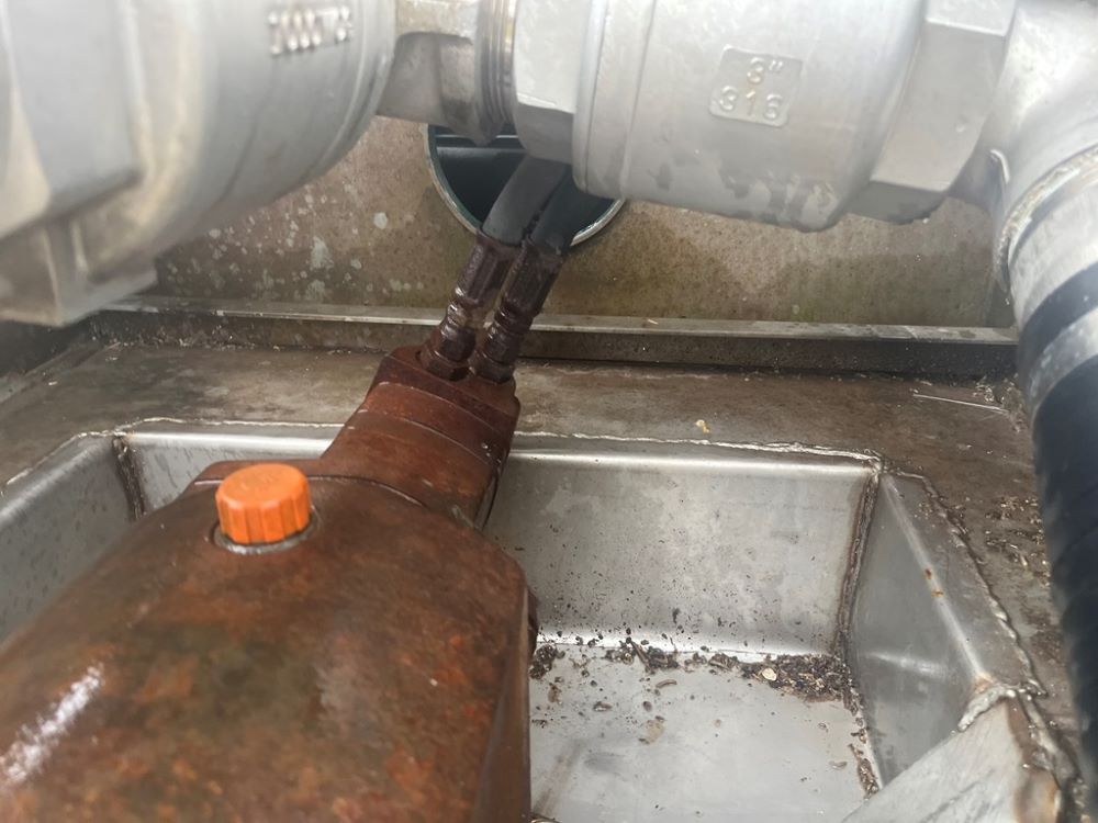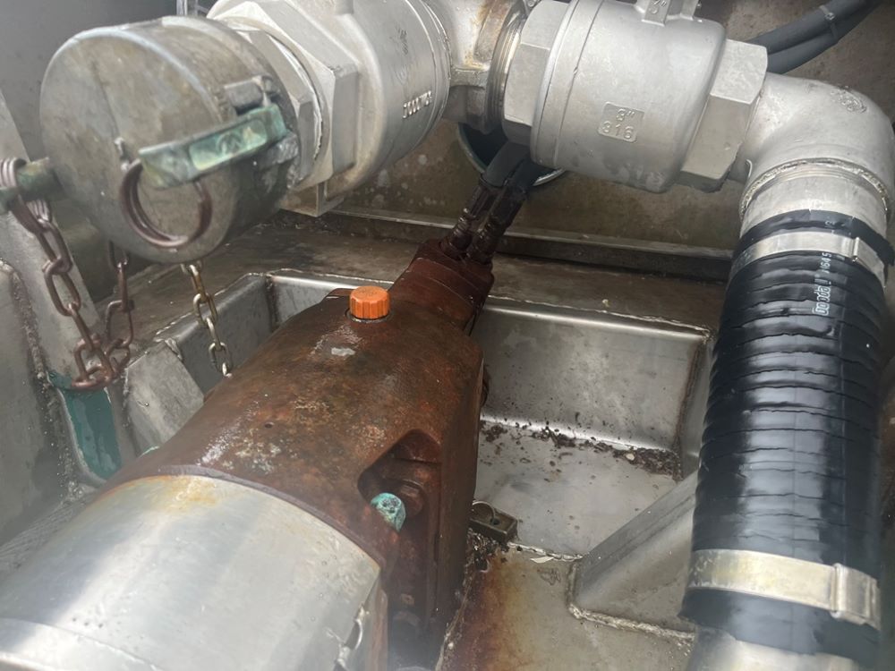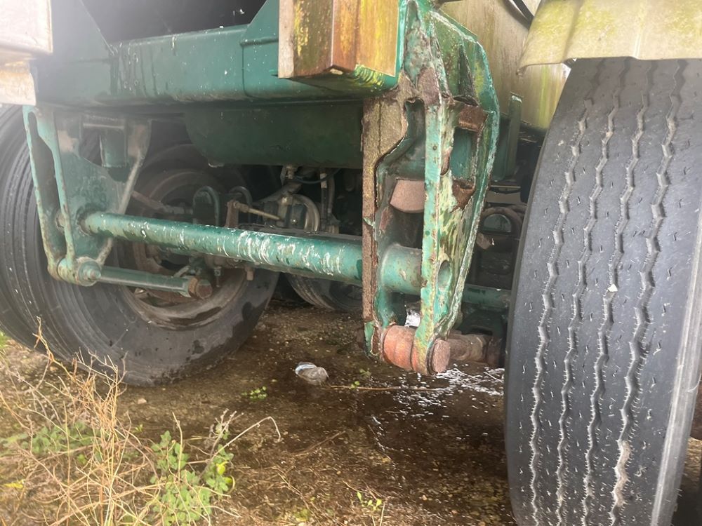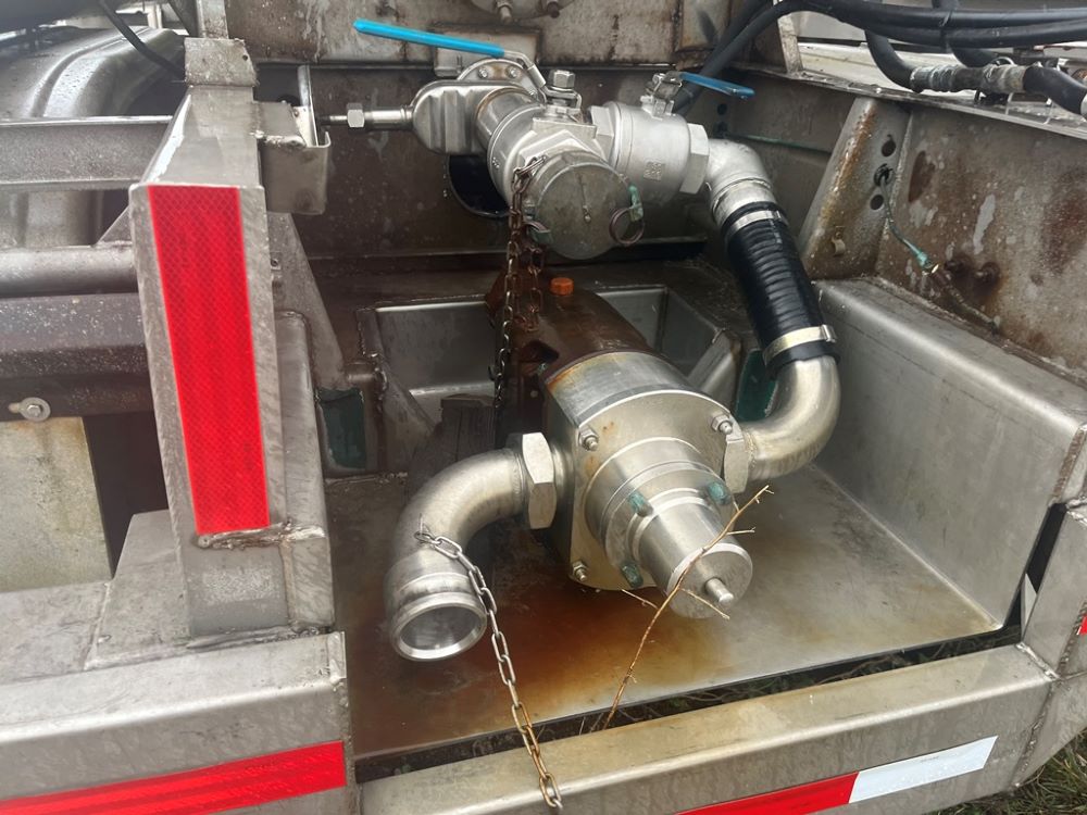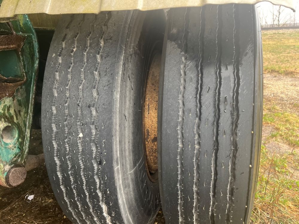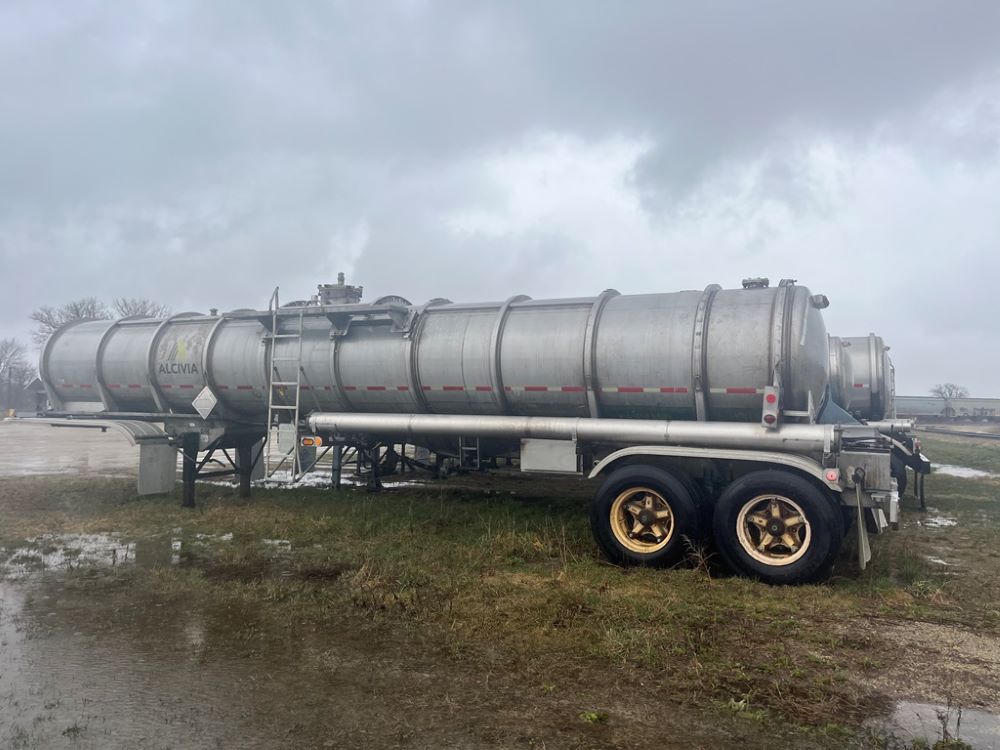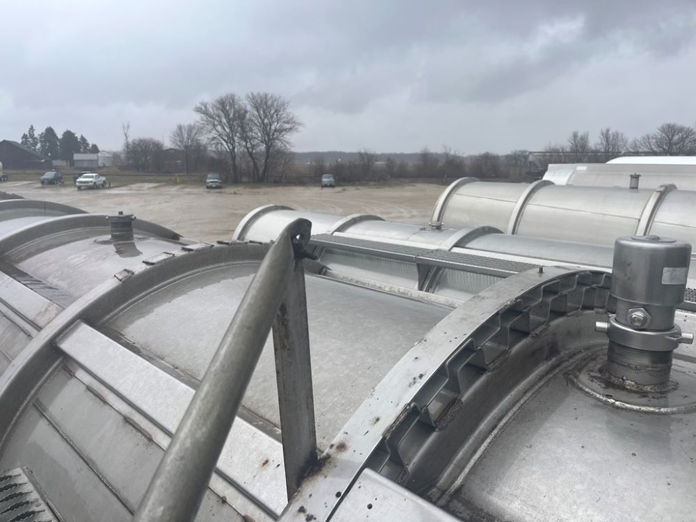 1979 Fruehauf Liquid Trailer (DR8056 Unit 5012), single compartment stainless steel liquid trailer, 5,500 gallon capacity, PTO hydraulic pump, rear discharge, tandem axle, data tag, 24.5 tires.