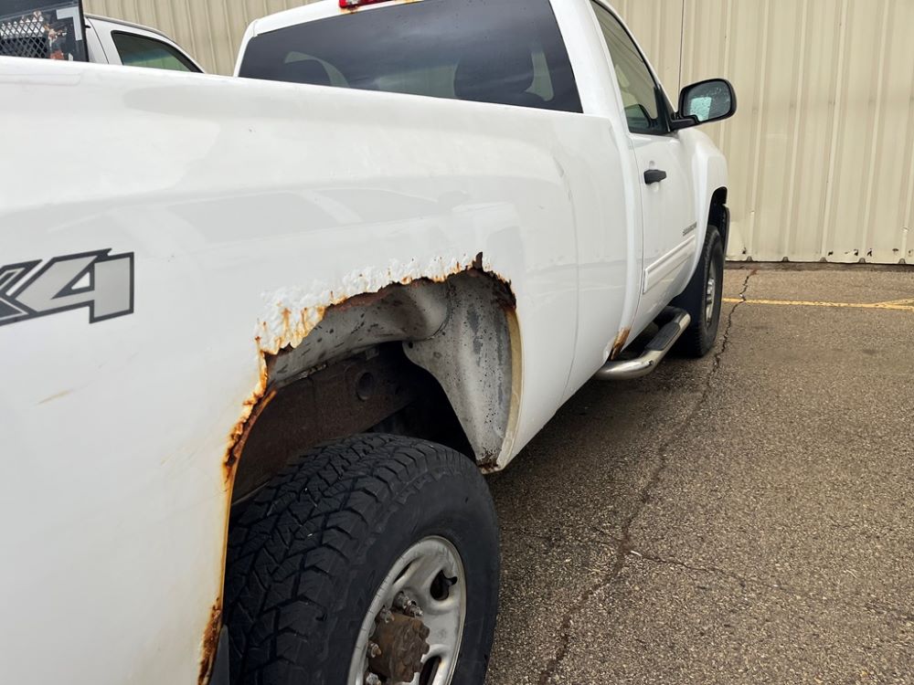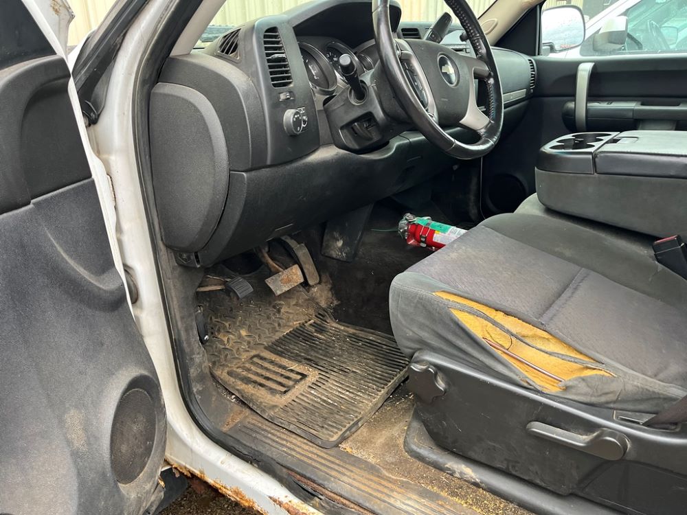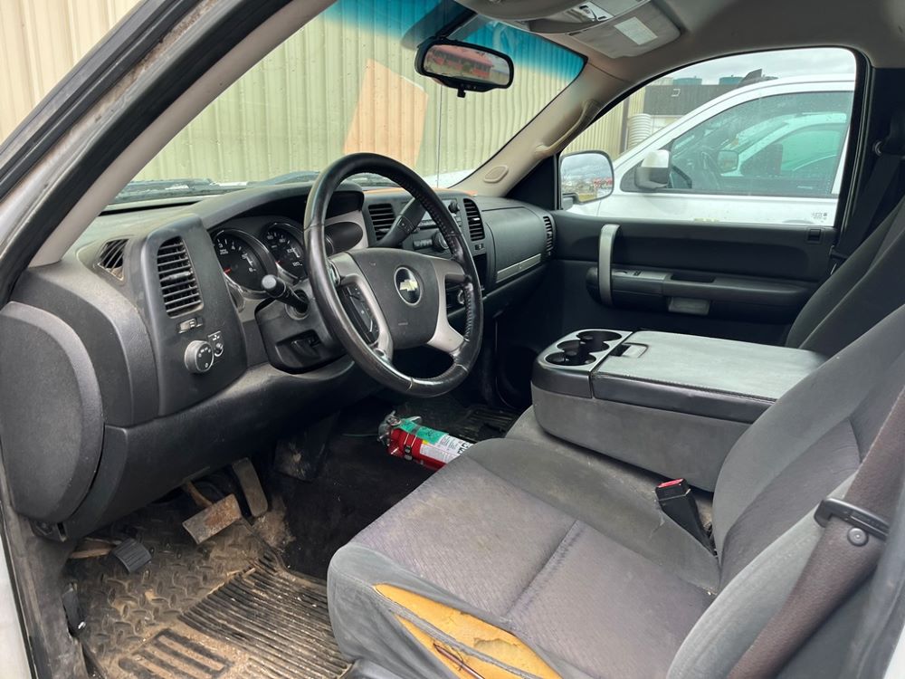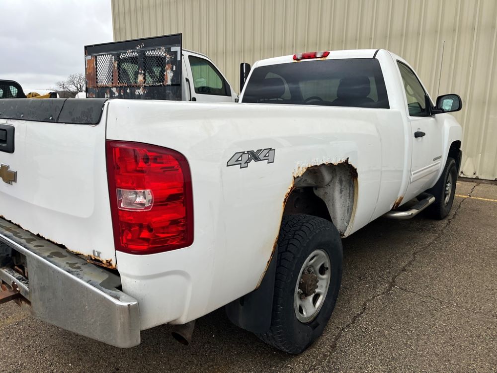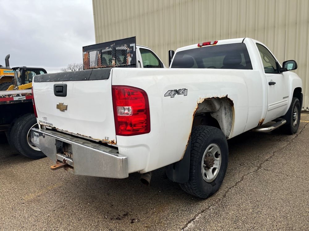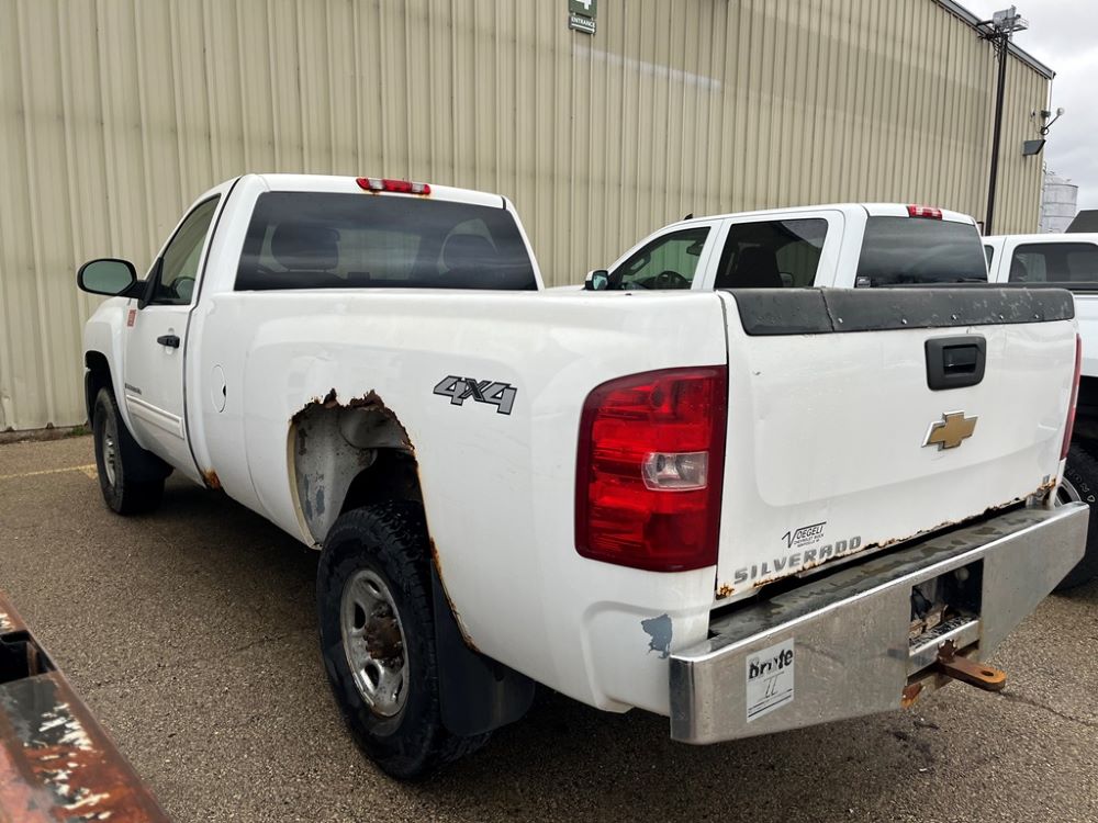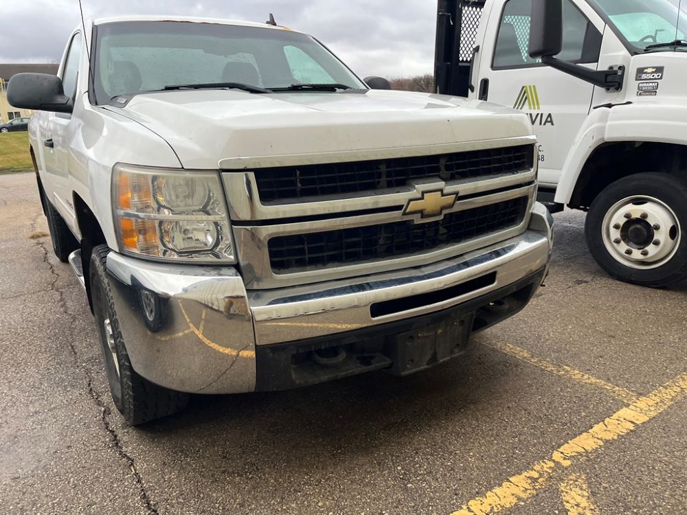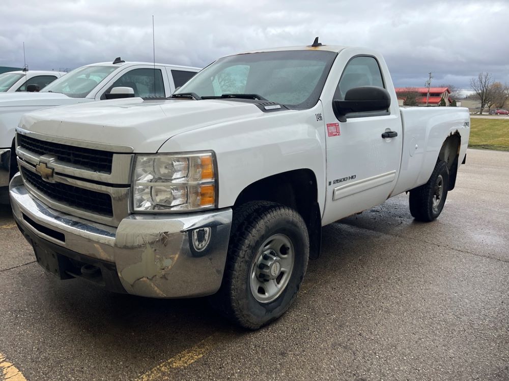 2009 Chevy 2500 Pickup (DR8066 Unit 1496), 6.0 liter gas engine, automatic transmission, 4X4, regular cab long box, chrome nerf bars, Brute II rear chrome ag bumper, power windows and locks, cab heat/air conditioning, 265/75R16 tires.