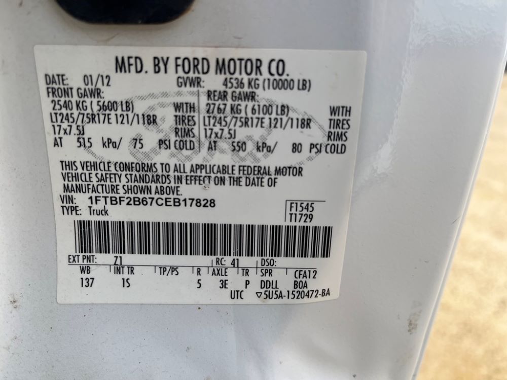 2012 Ford F250 Pickup (DR8045), gas engine, automatic transmission, 4X4, regular cab long box, spray bed liner, rear ag bumper, heat/air conditioning, power windows & locks, 265/70R17 tires, odometer reads 187,271 miles.