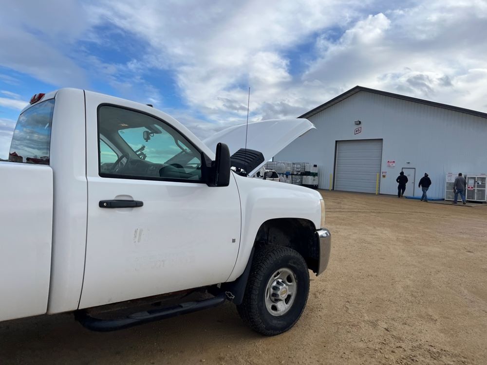 2009 Chevy Silverado Pickup (DR8046), 6.0 liter gas engine, automatic transmission, 4X4, regular cab long box, rear ag bumper, heat/air conditioning, cruise control, 265/75R18 tires, odometer reads 133,292 miles.