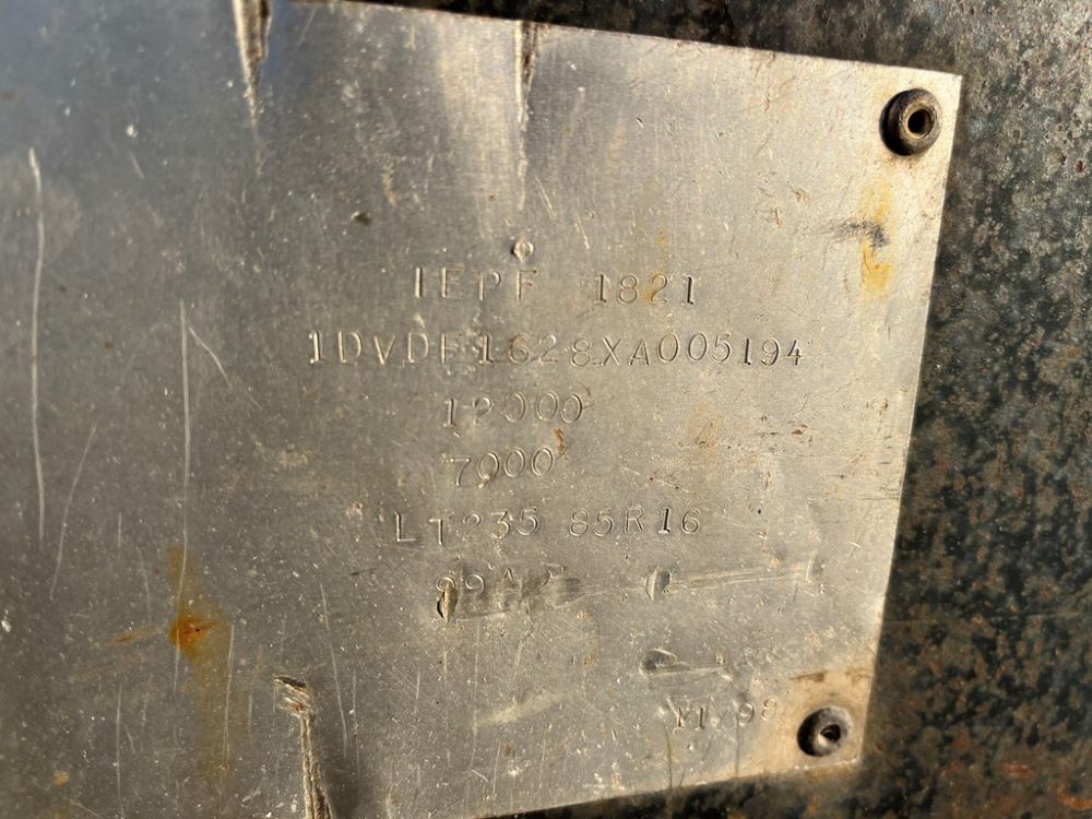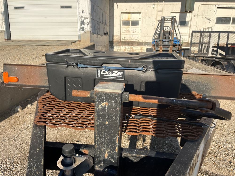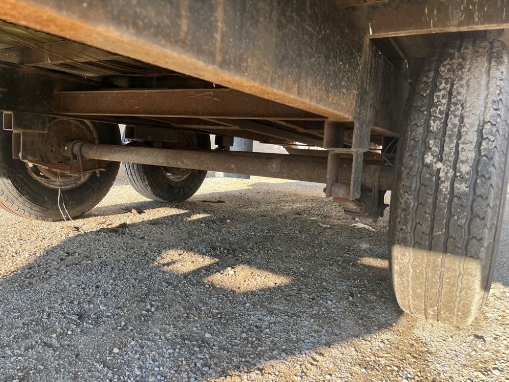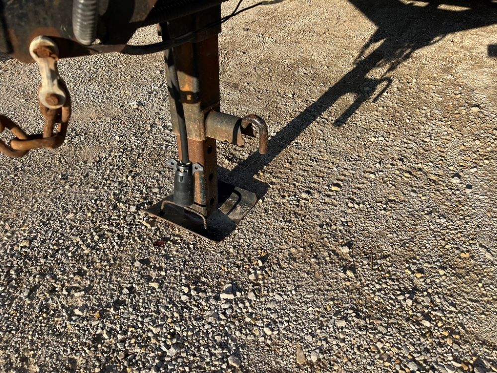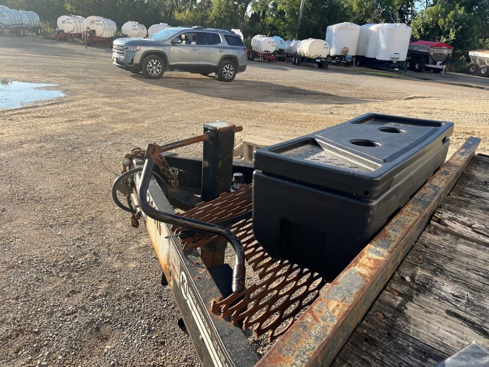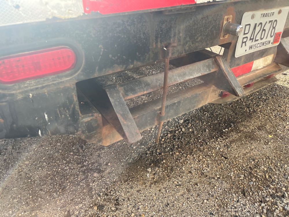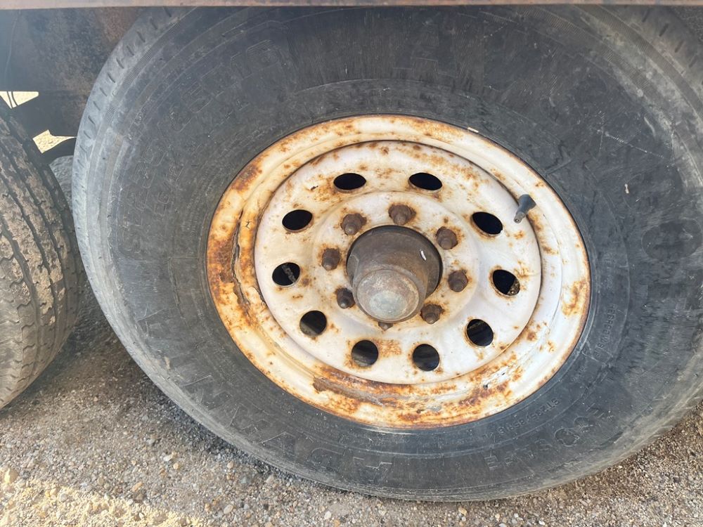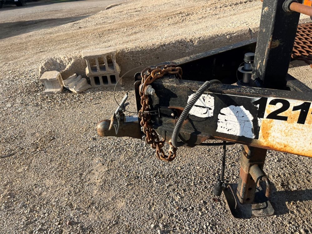 1999 Kiefer Trailer (DR5743), 16' pull type flatbed trailer, wood deck, pull out ramps, tandem axle, 235/85R16 tires, bumper hitch.