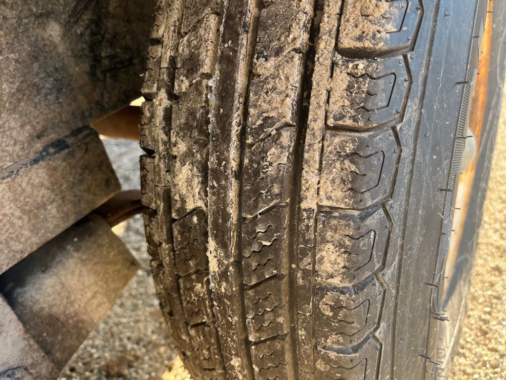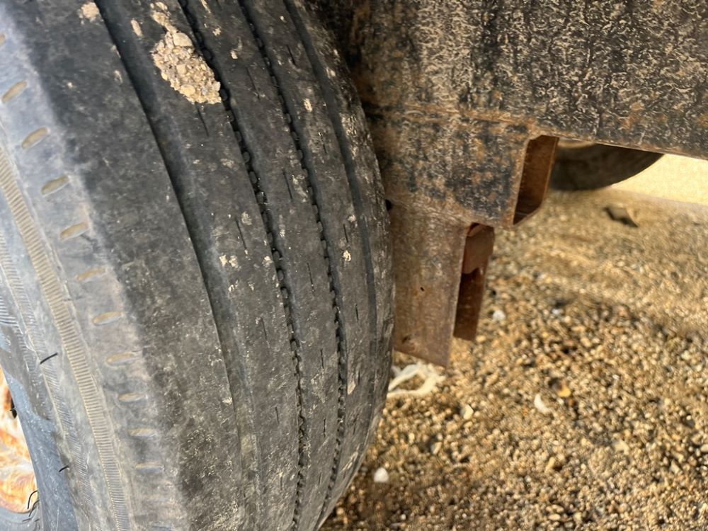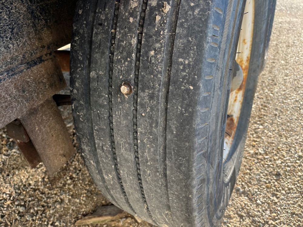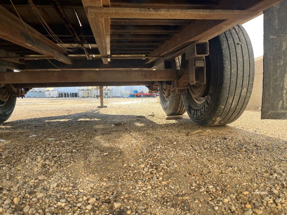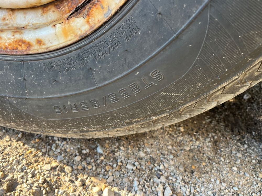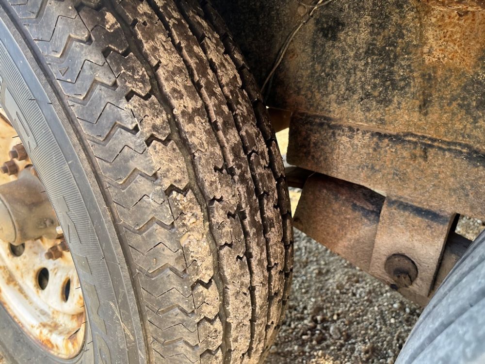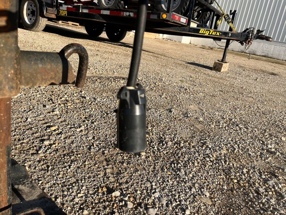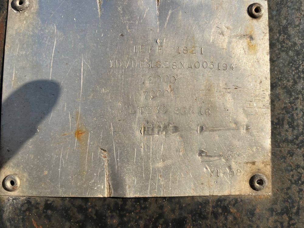 1999 Kiefer Trailer (DR5743), 16' pull type flatbed trailer, wood deck, pull out ramps, tandem axle, 235/85R16 tires, bumper hitch.