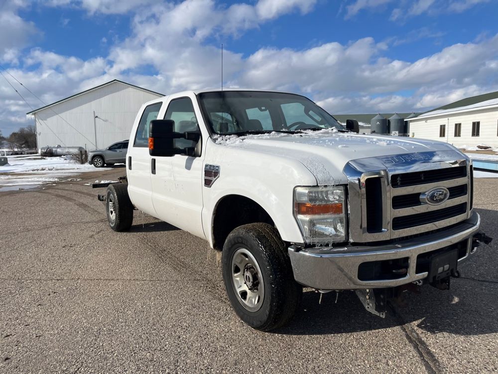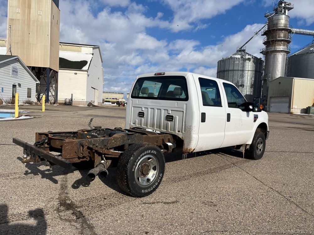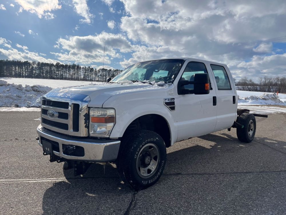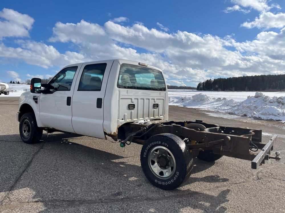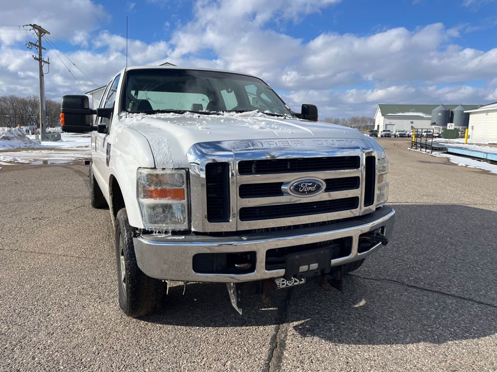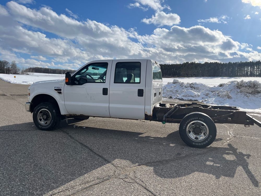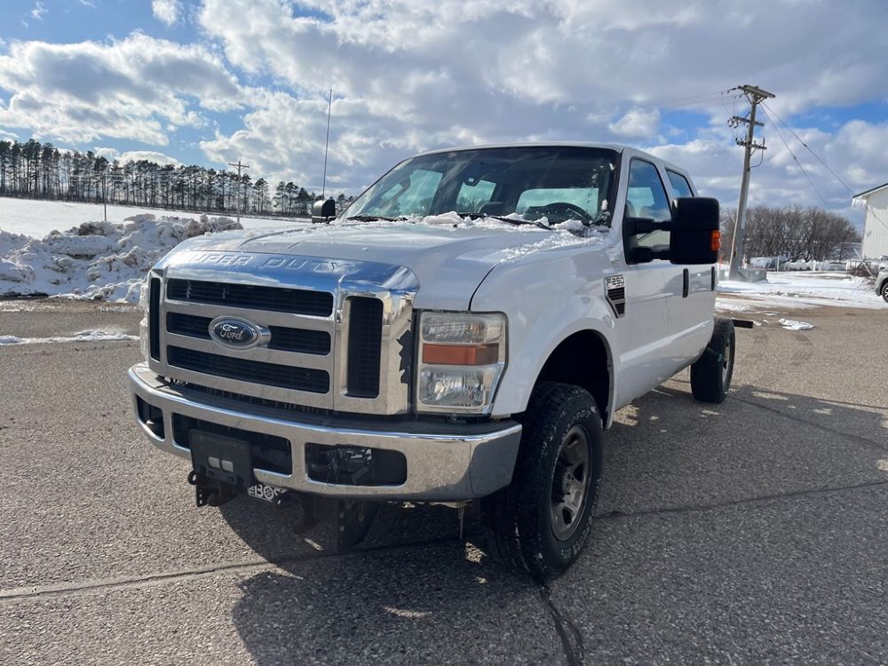 2008 Ford F250 Pickup (DR8111 Unit 6590), pickup cab/chassis, Power Stroke diesel engine, automatic transmission, 4X4, 4 door cab, rear receiver hitch bumper, AM/FM CD radio, cruise control, power windows & locks, Boss front plow bracket, 265/70R17 tires, odometer reads 176,070 miles.