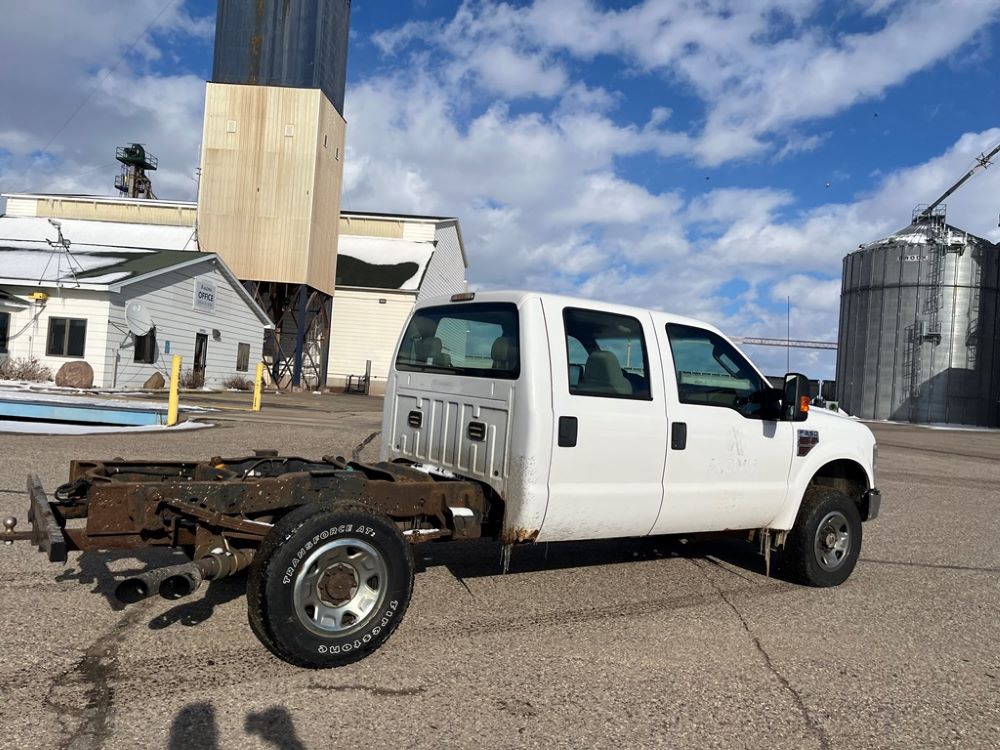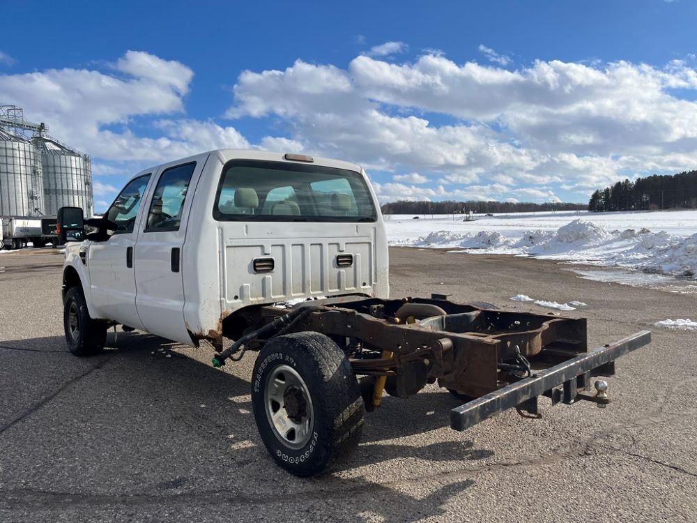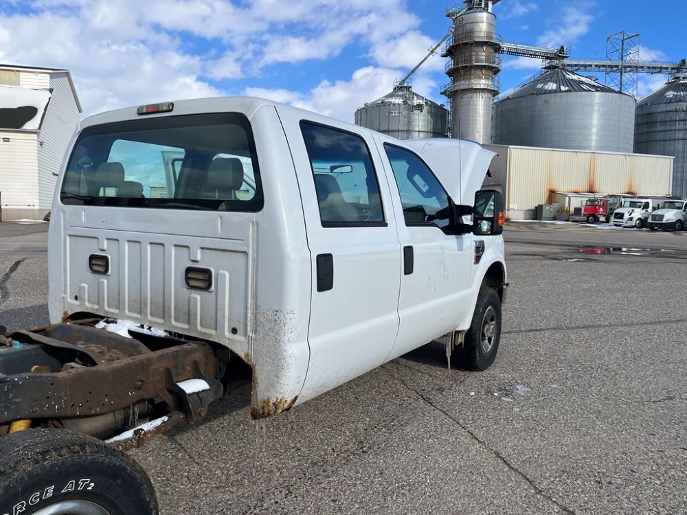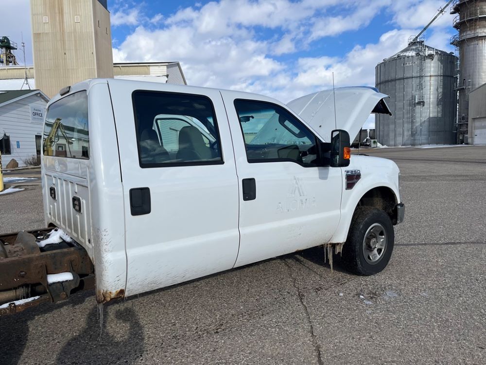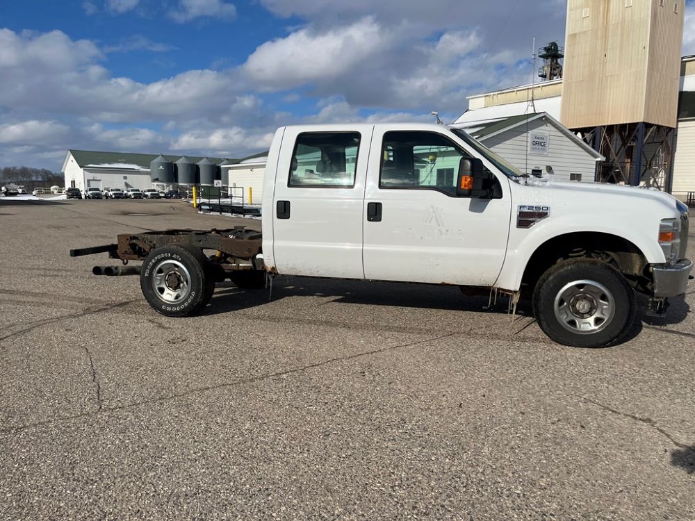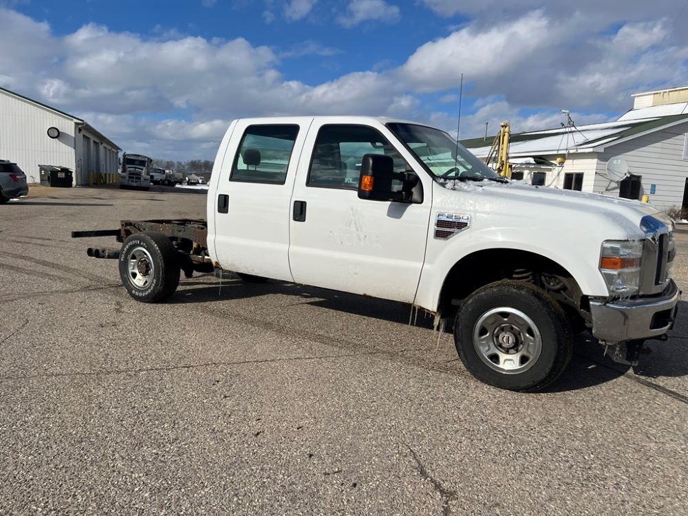 2008 Ford F250 Pickup (DR8111 Unit 6590), pickup cab/chassis, Power Stroke diesel engine, automatic transmission, 4X4, 4 door cab, rear receiver hitch bumper, AM/FM CD radio, cruise control, power windows & locks, Boss front plow bracket, 265/70R17 tires, odometer reads 176,070 miles.