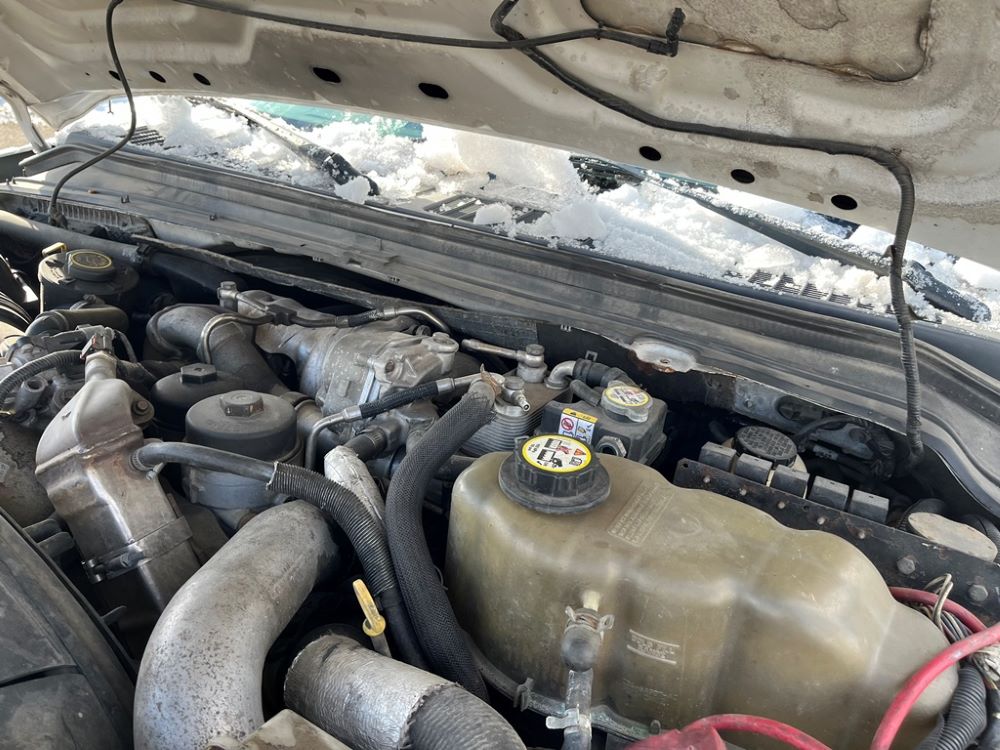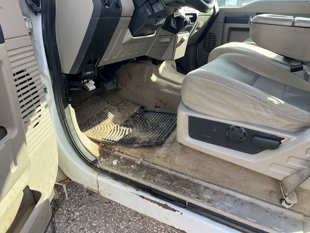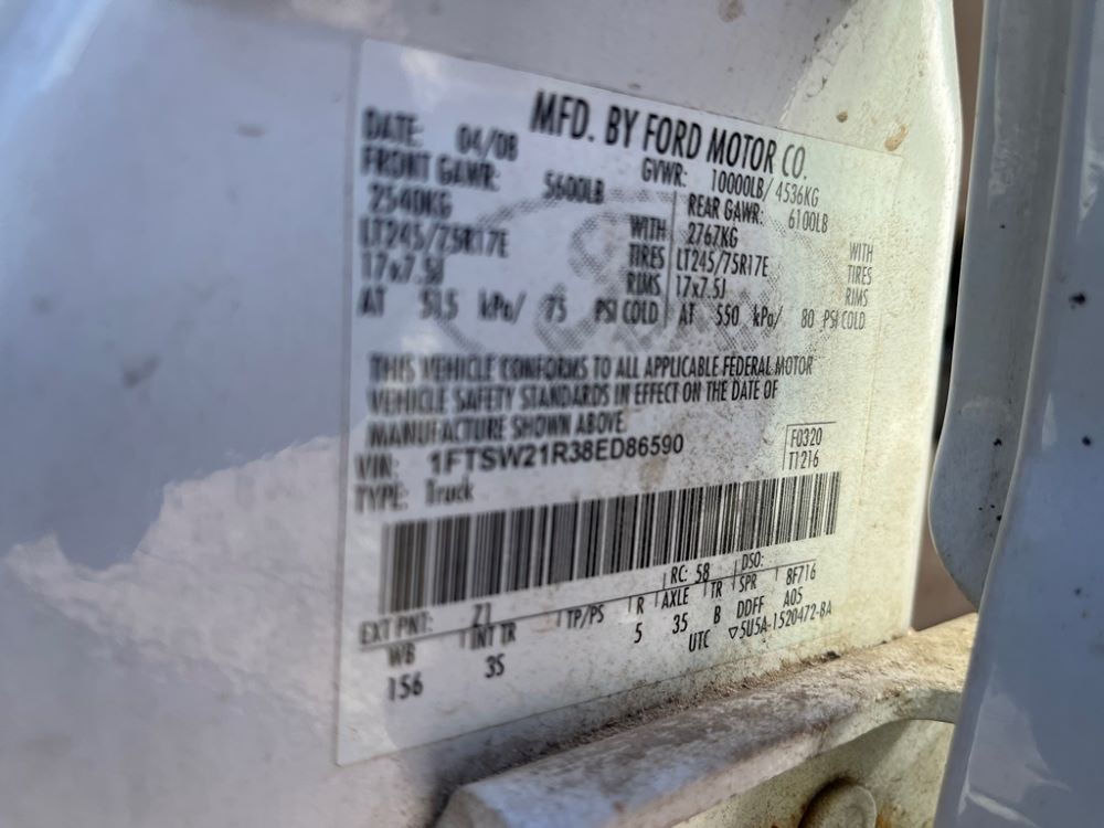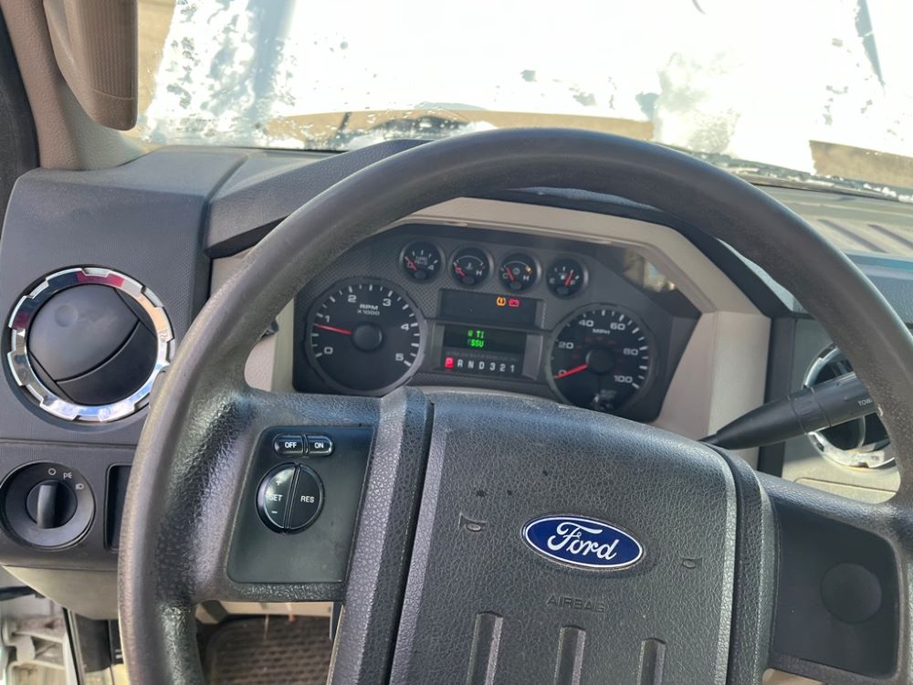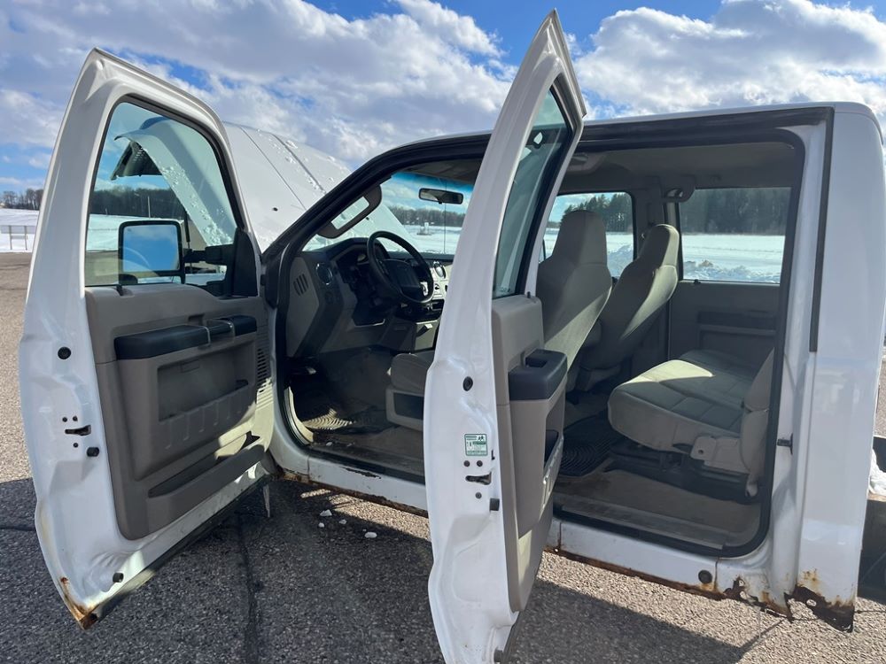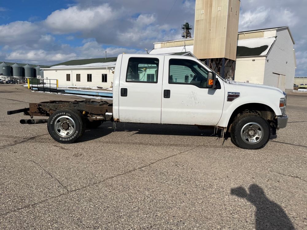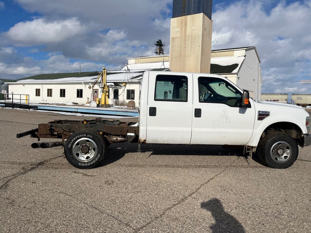 2008 Ford F250 Pickup (DR8111 Unit 6590), pickup cab/chassis, Power Stroke diesel engine, automatic transmission, 4X4, 4 door cab, rear receiver hitch bumper, AM/FM CD radio, cruise control, power windows & locks, Boss front plow bracket, 265/70R17 tires, odometer reads 176,070 miles.