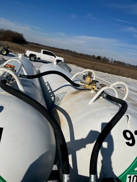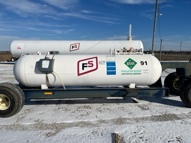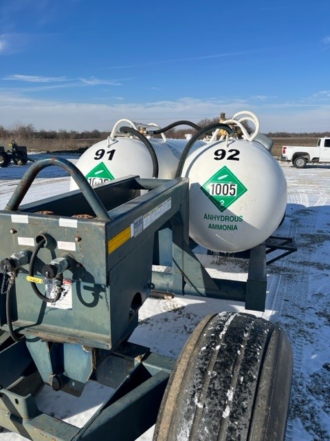 Double NH3 Nurse Tanks (PZ12109, Unit 91/92), Double 1000 gallon NH3 nurse tanks, top front fills, poly fresh water tanks, Duo Lift 5th wheel running gear, spring tongue, flotation tires.