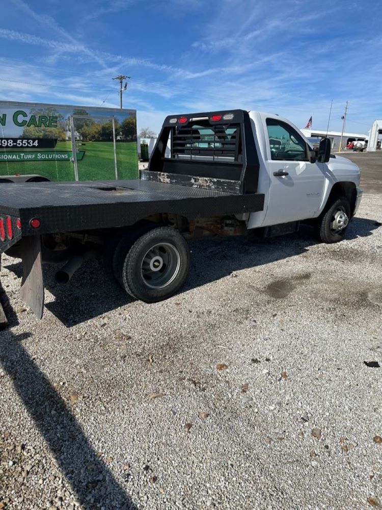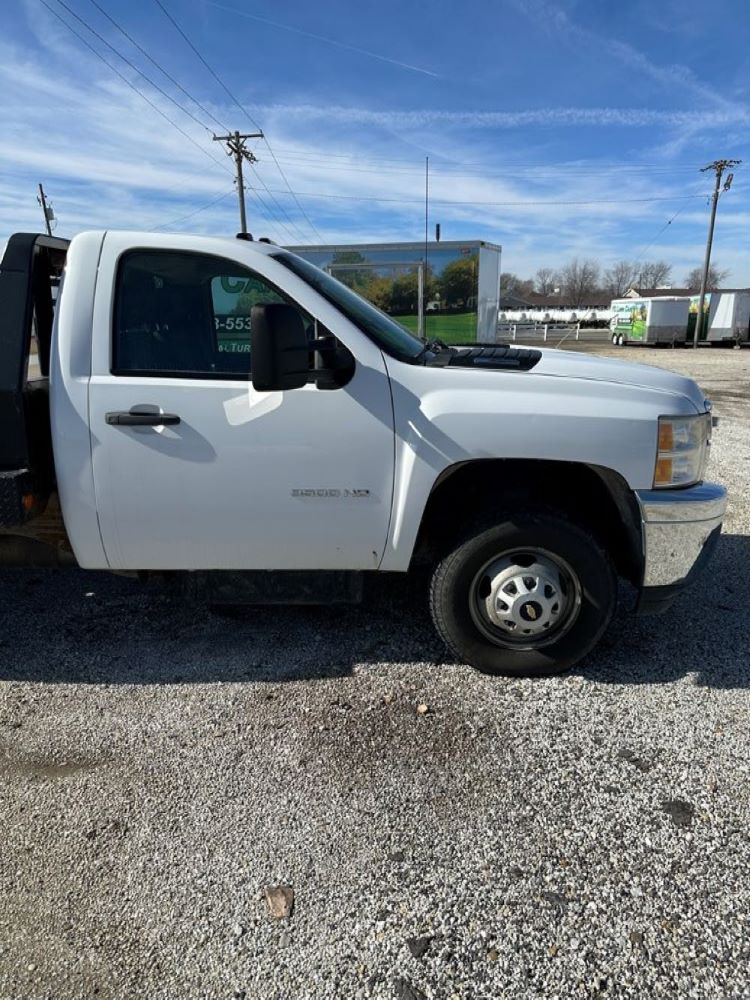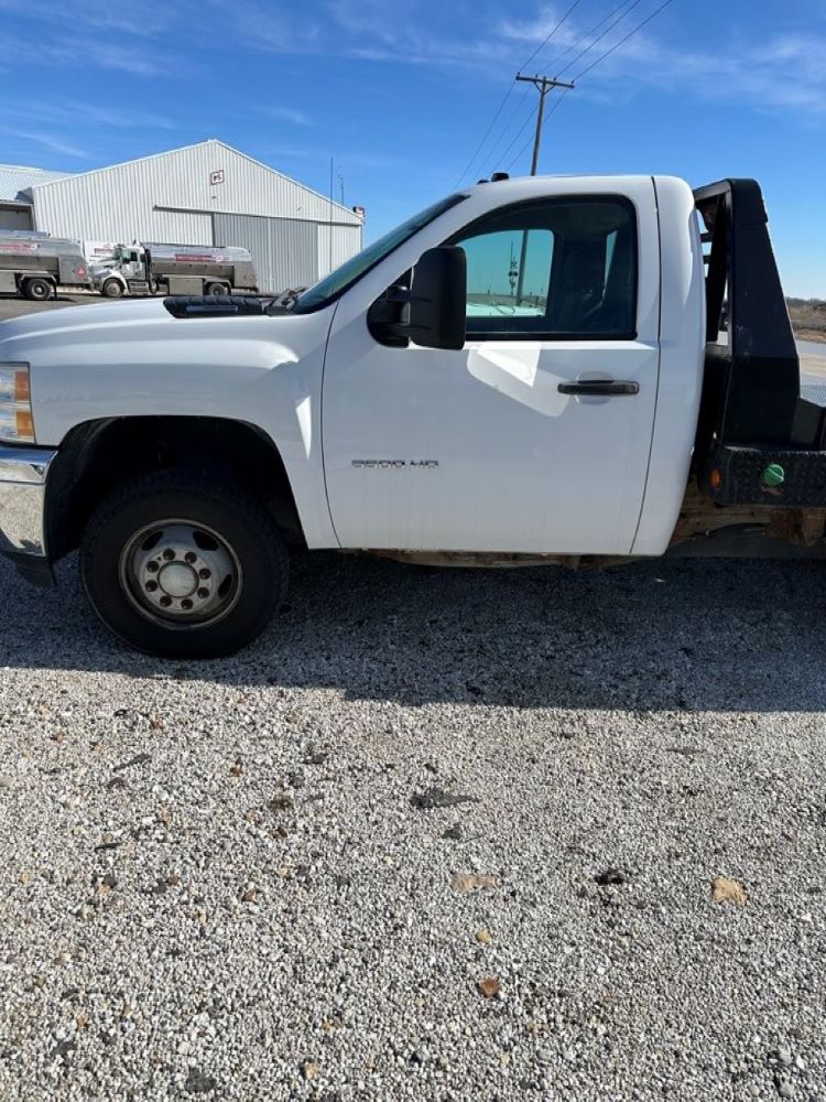 2013 Chevrolet 3500HD Flatbed Truck (PZ12097), 4x4, 6.6L Turbo diesel engine, automatic transmission, air conditioning, heat, Am/Fm radio, cruise control, power windows & locks, dually, steel flatbed, headache rack, rear hitch, shows 90,552 miles.