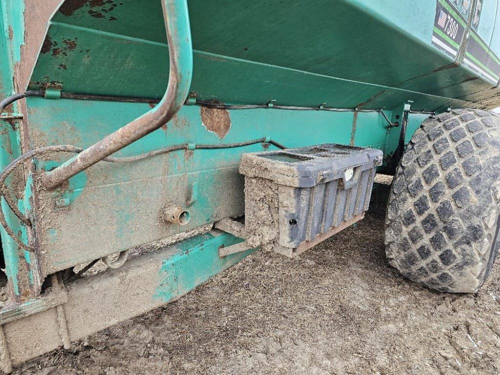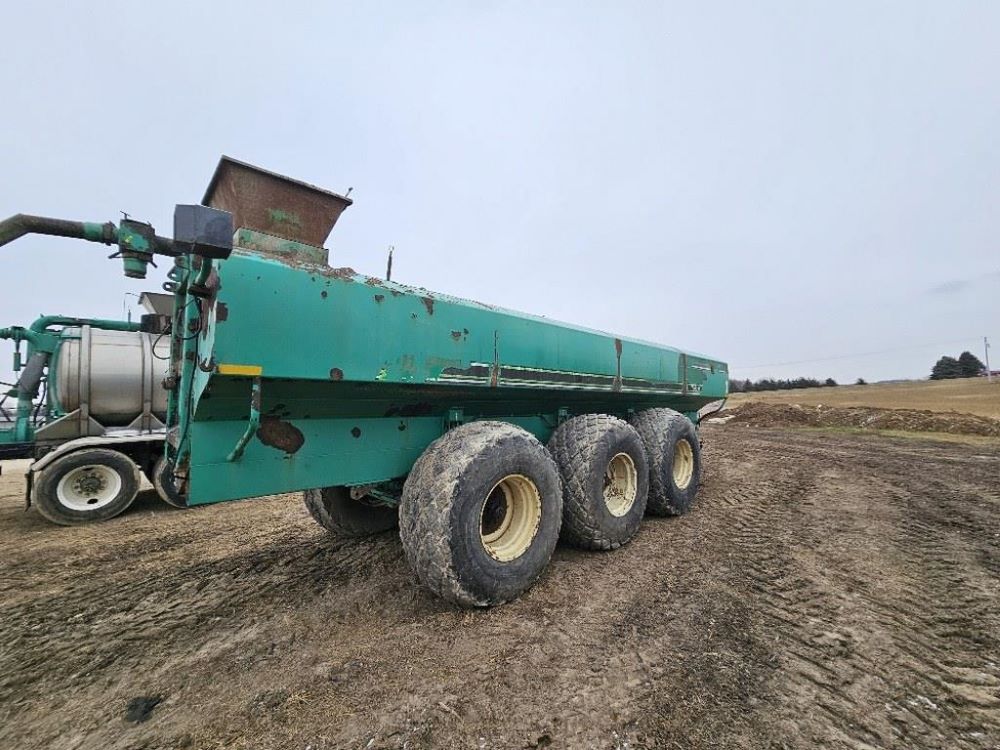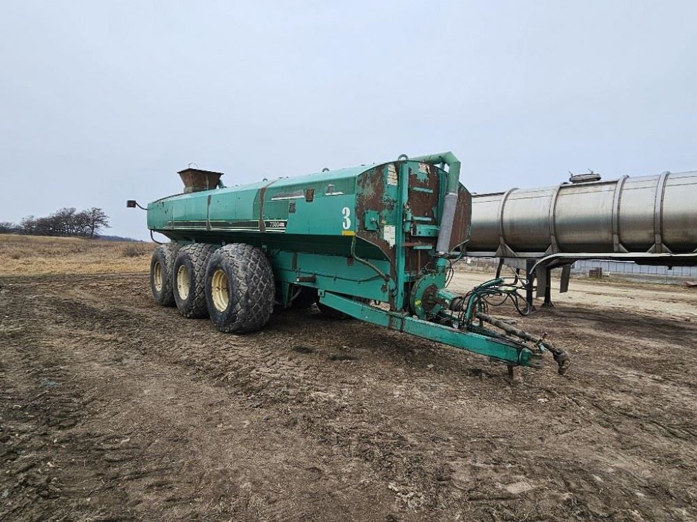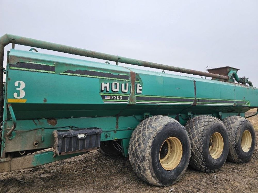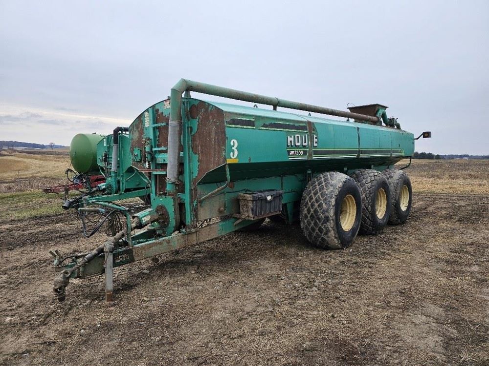 Houle 7300 Sludge Wagon (DR8123), model 7300 sludge wagon, front and rear steer axles, triple axle gear, top feed hopper, good suspension, PTO drive pump, top discharge.