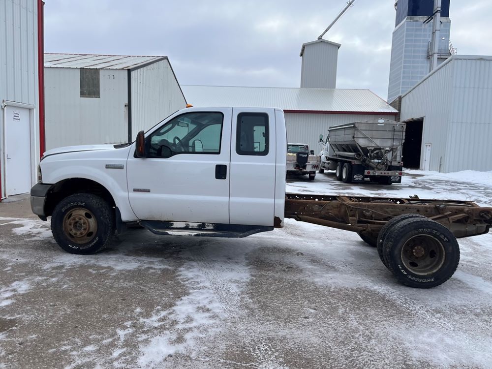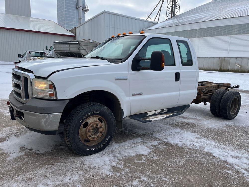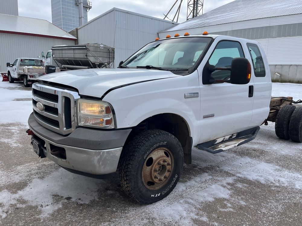 2005 Ford F350 Truck (DR8096 Unit 36), Cummins diesel engine, automatic transmission, 4X4, quad cab, this is a chassis that was a service truck, cruise control, power windows & locks, 245/75R17 tires, odometer reads 212,780 miles.