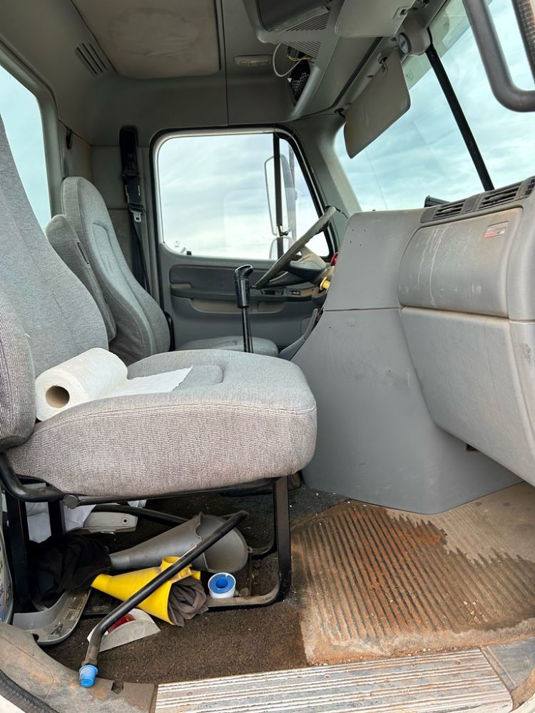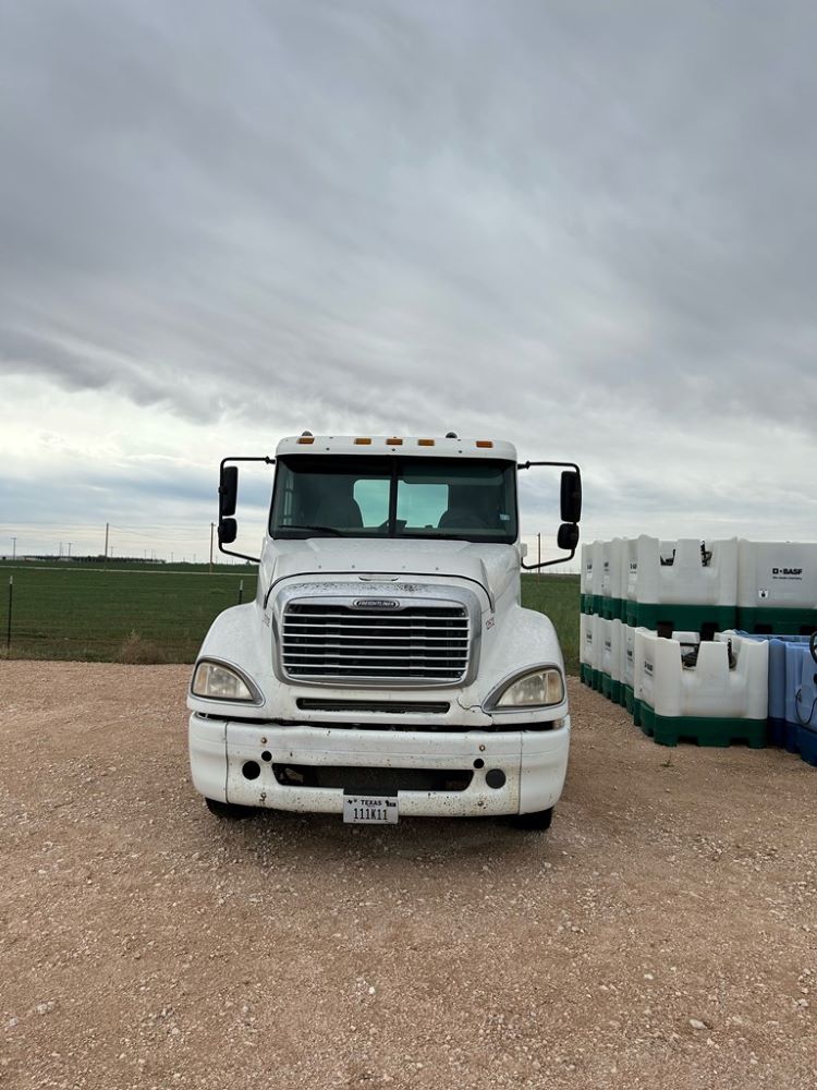 2005 Freightliner Columbia Truck (DR8120 Unit 12602), cab/chassis truck, diesel engine, 10 speed transmission, tandem axle fulls crew, air ride suspension, dual aluminum fuel tanks, air dump.