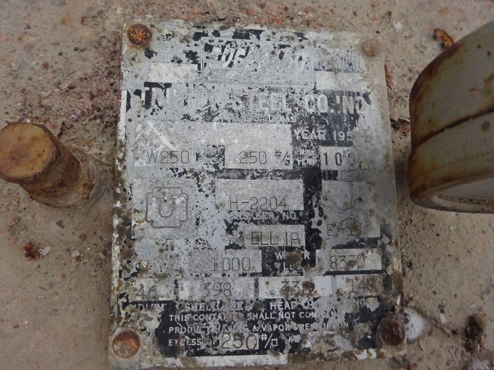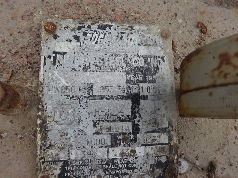 Trinity LP Tank (PZ12123), Trinity 1000 gallon LP tank, data plate.
