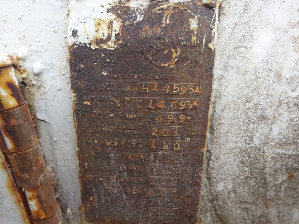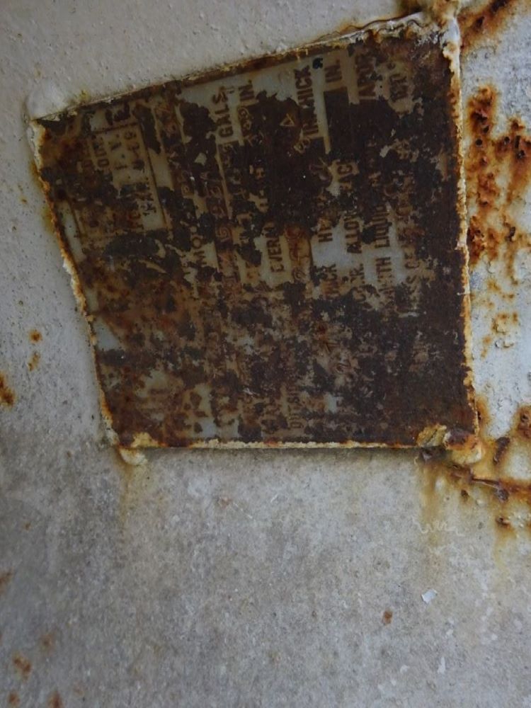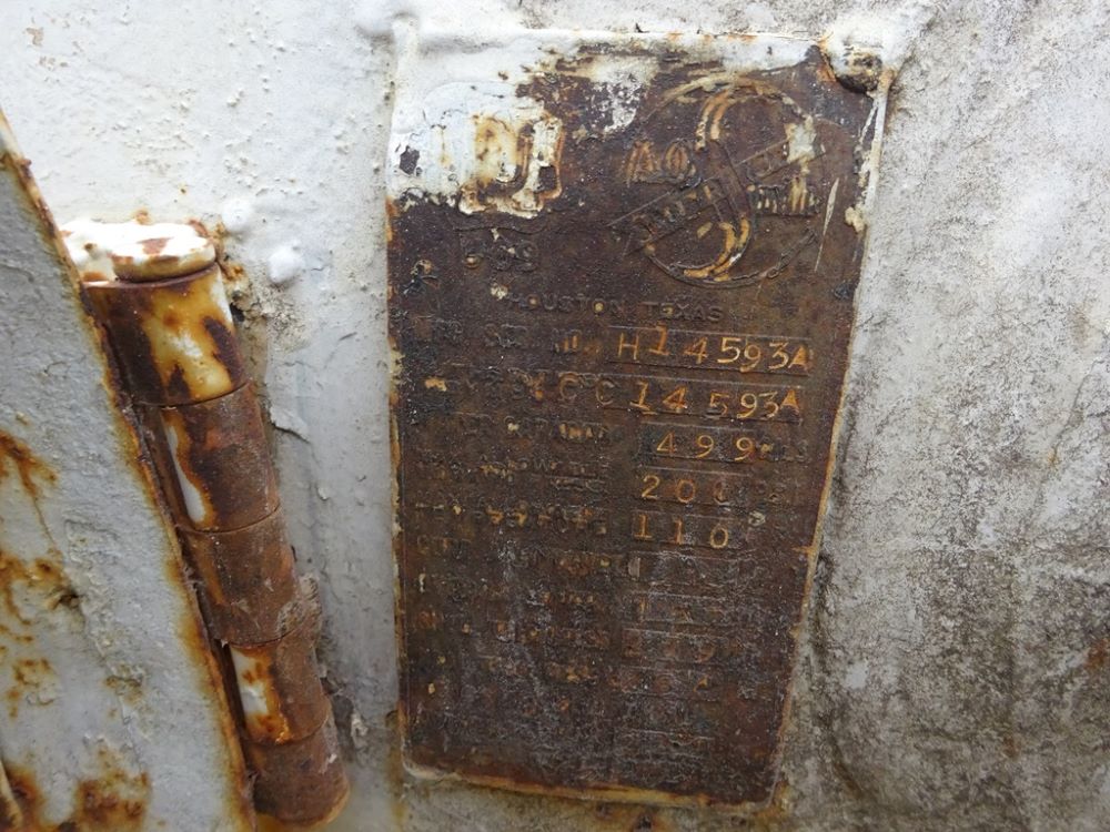 A.O. Smith LP Tank (PZ12124), A.O. Smith 499 gallon LP tank, data plate.