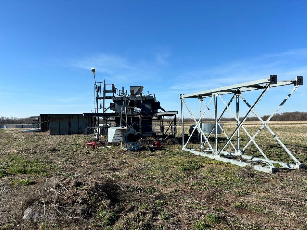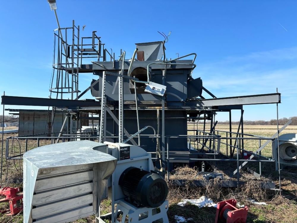 2014 Lemar Center Fill Grain Tower (GP6951), Lemar approx. 75' center fill grain tower, super structure, top distributor, 4 - Rolfes Hot Spot fans, Toshiba 60 hp electric motors, 4 - Thern model 4WS3M6 winches with Baldor .5 hp electric motors.