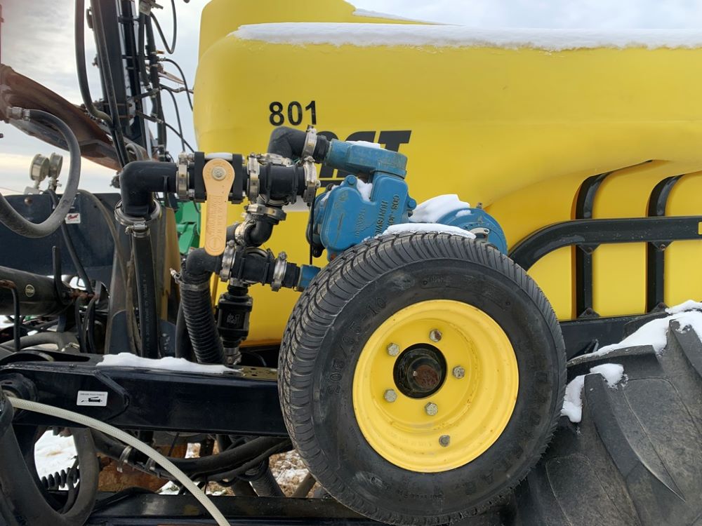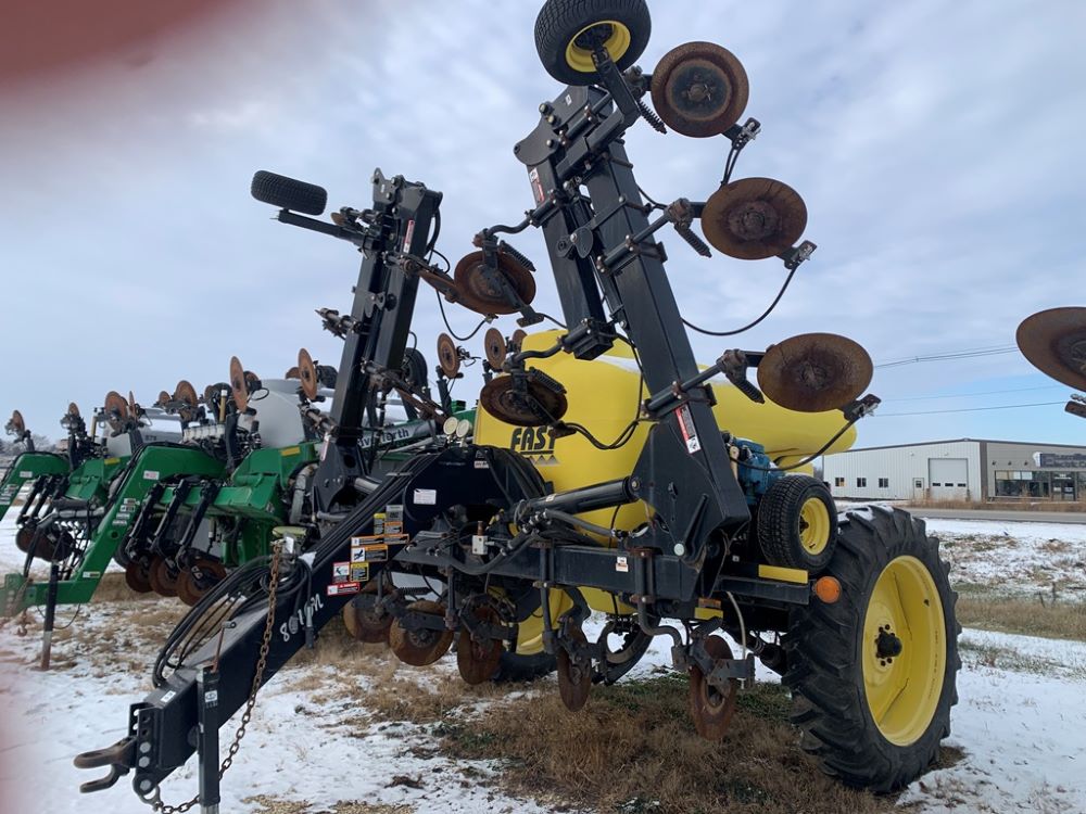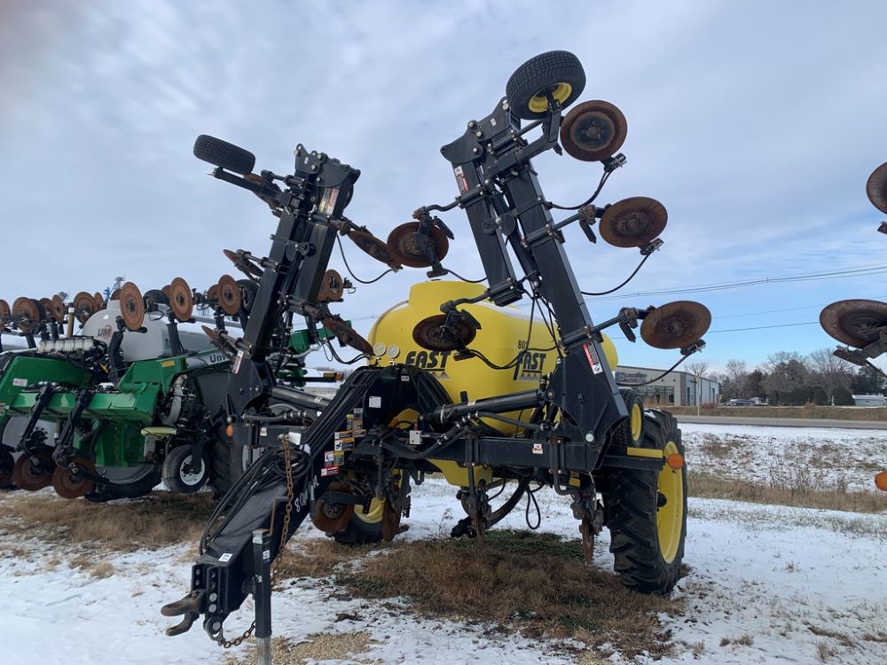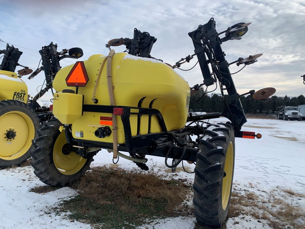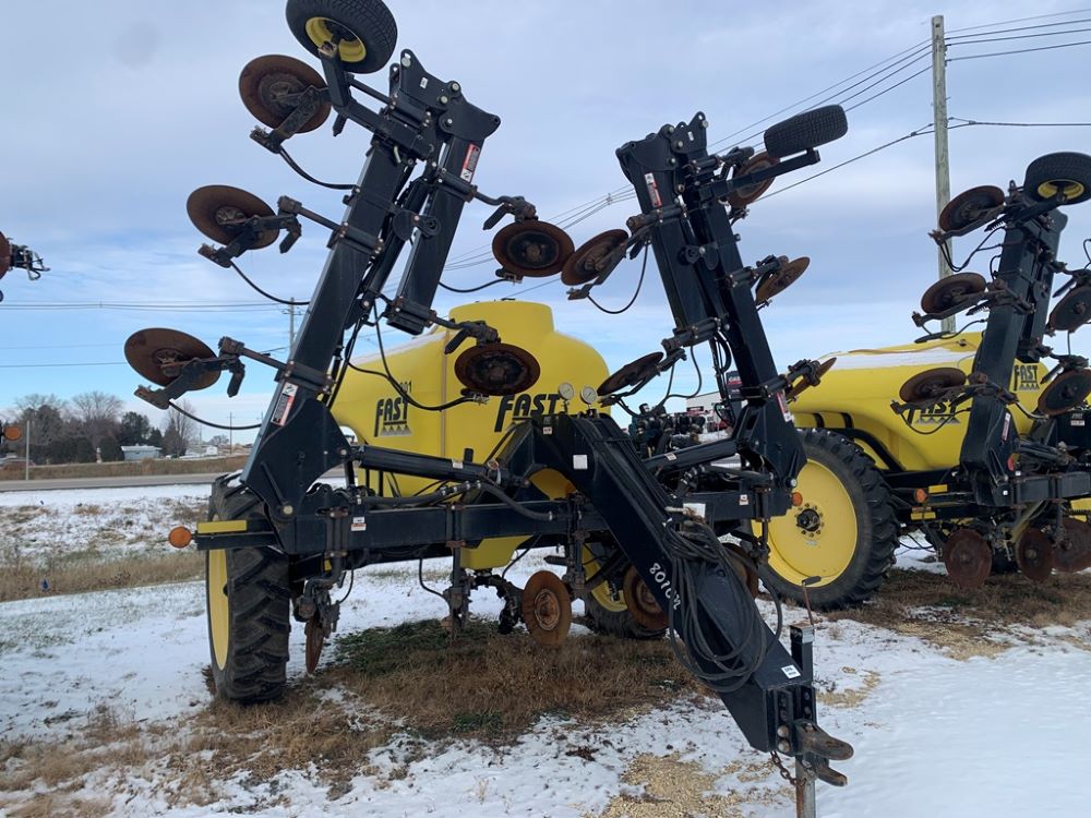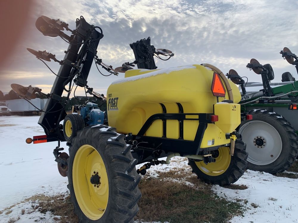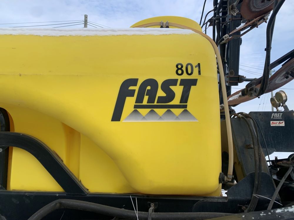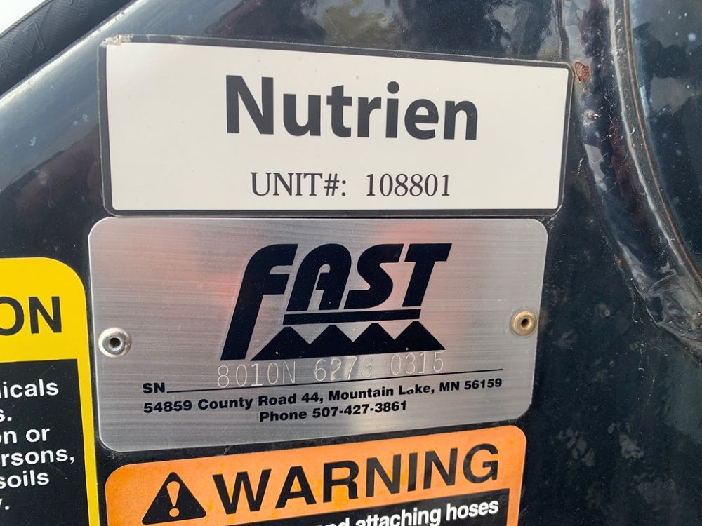 Fast 8010N Liquid Applicator (CP3230, Unit 108801), Fast model 8010N 1000 gallon poly liquid applicator, 15 coulter liquid injection, John Blue ground driven pump, hydraulic wings, poly fresh water tank, Titan 13.6-38 tires.