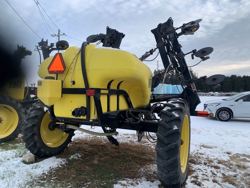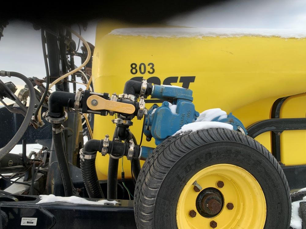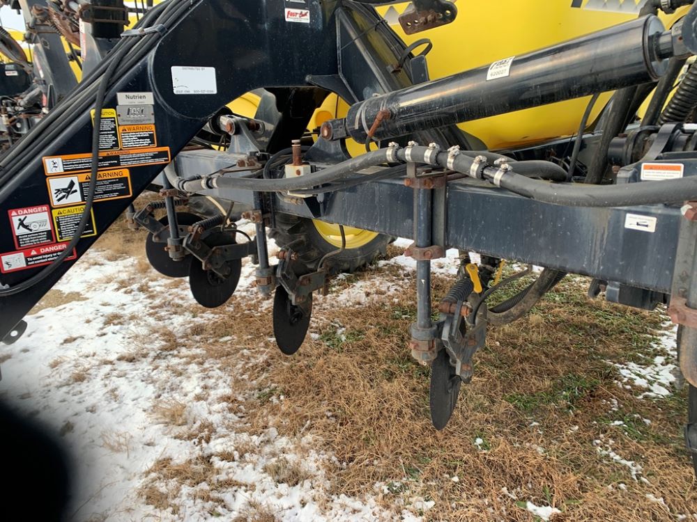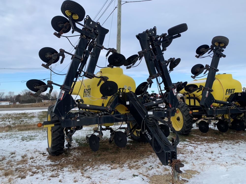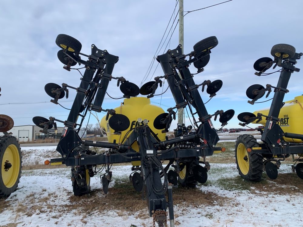Fast 8010N Liquid Applicator (CP3232, Unit 108803), Fast model 8010N 1000 gallon poly liquid applicator, 15 coulter liquid injection, John Blue ground driven pump, hydraulic wings, poly fresh water tank, Titan 13.6-38 tires.