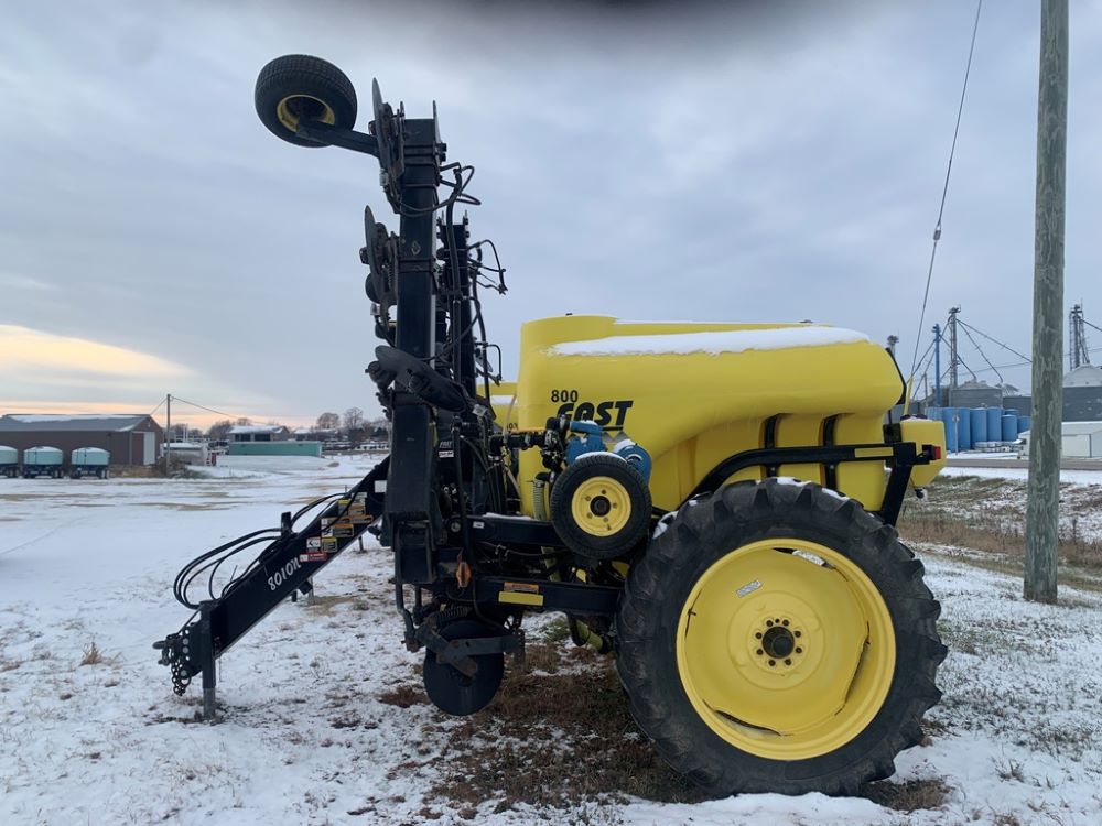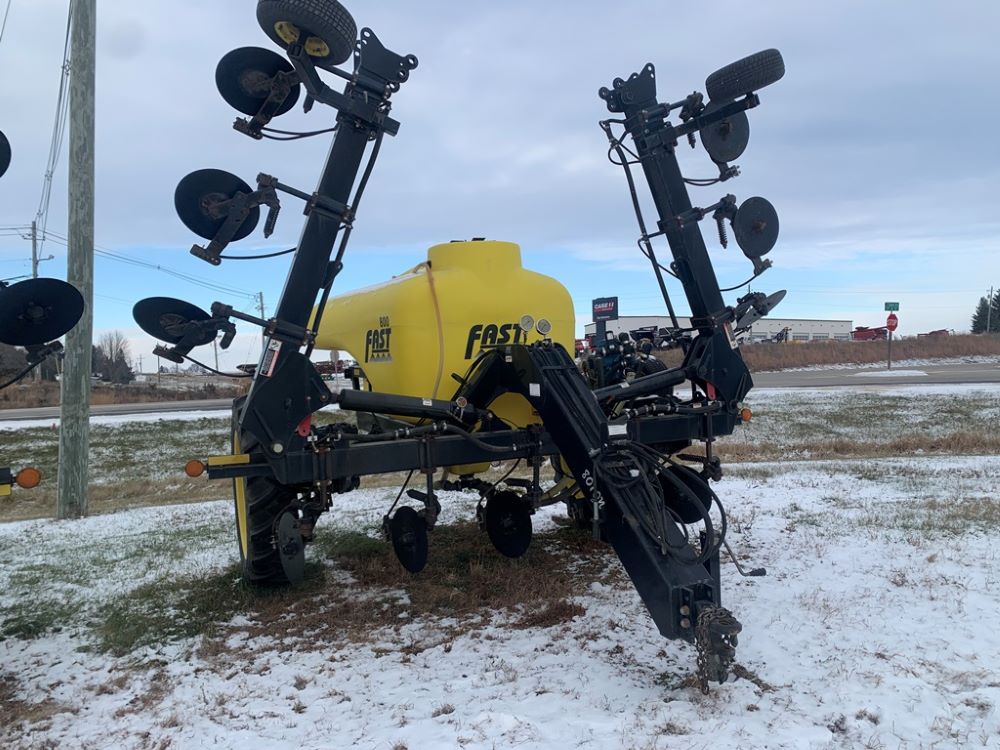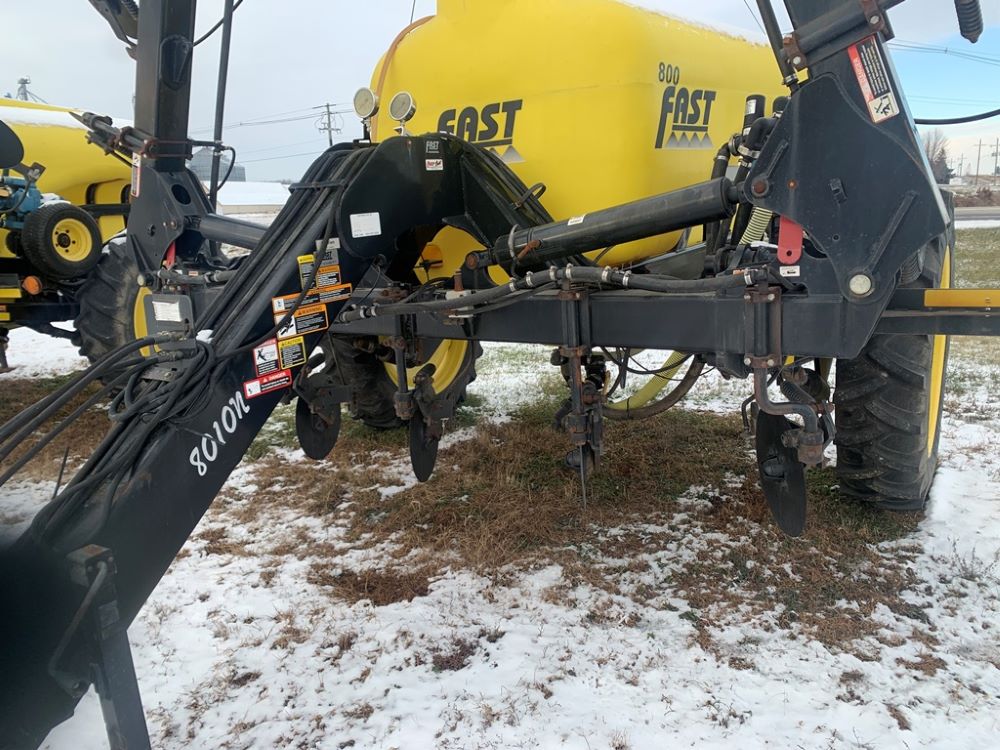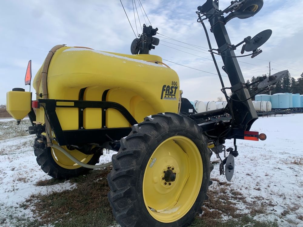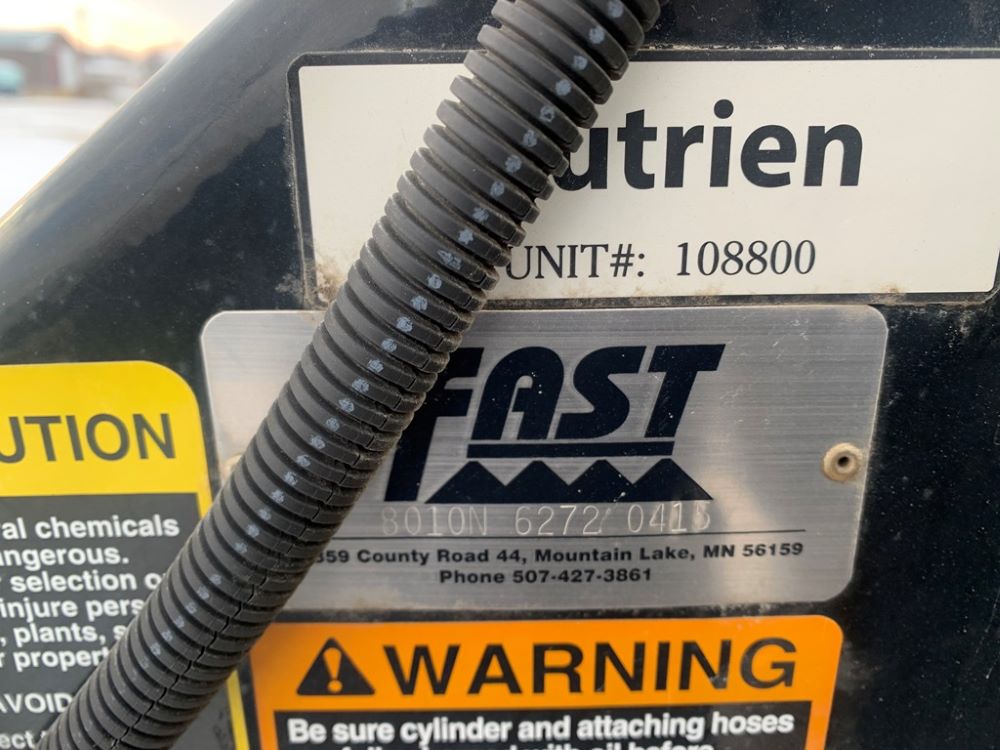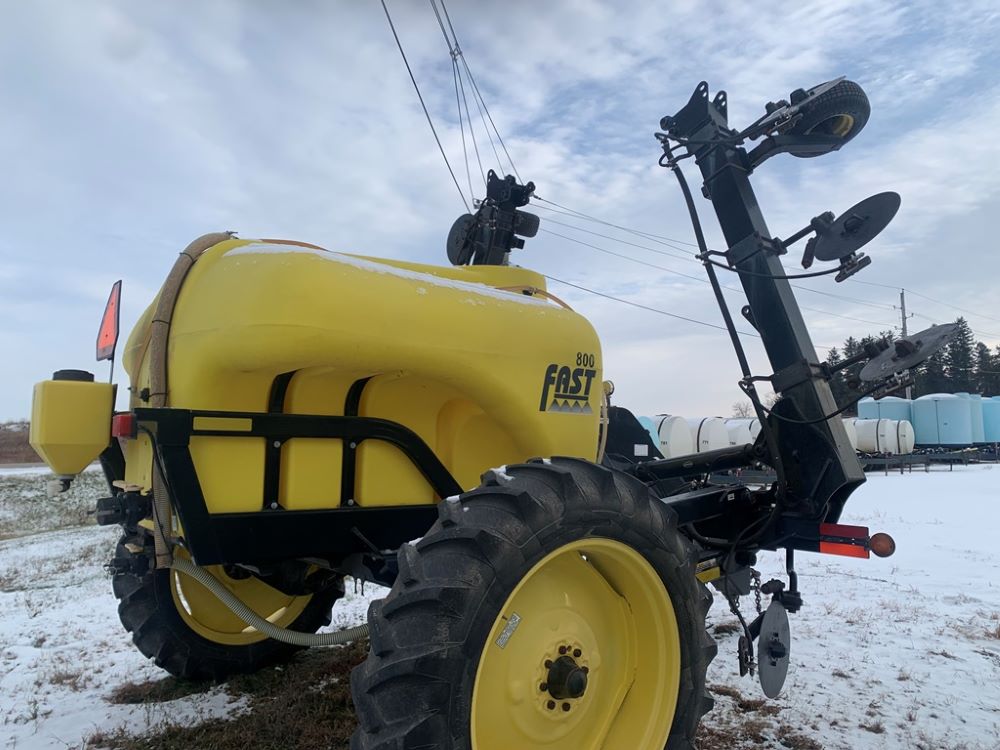 Fast 8010N Liquid Applicator (CP3233, Unit 108800), Fast model 8010N 1000 gallon poly liquid applicator, 11 coulter liquid injection, John Blue ground driven pump, hydraulic wings, poly fresh water tank, Titan 13.6-38 tires.