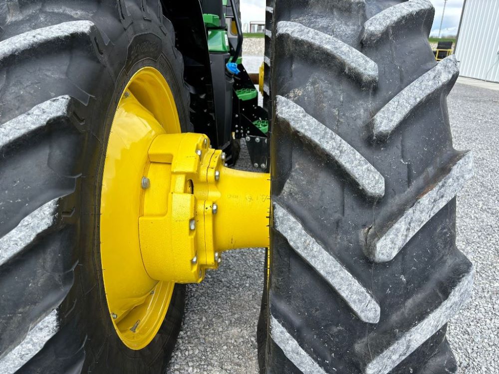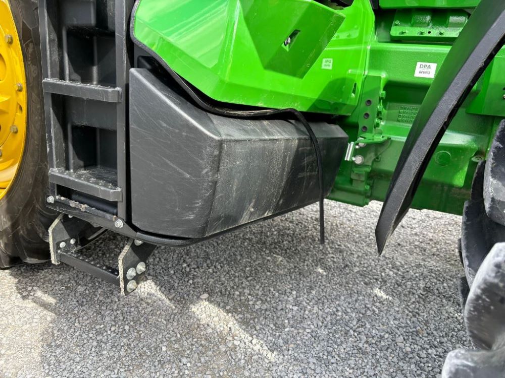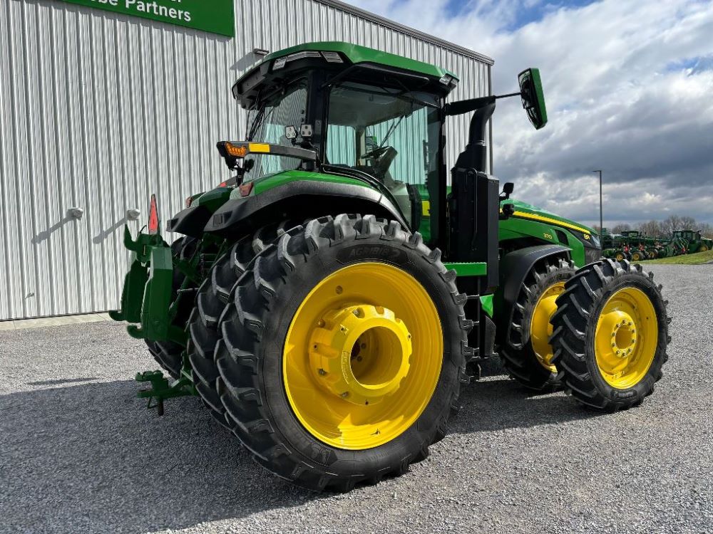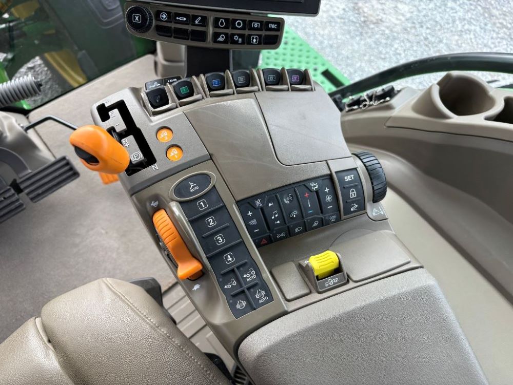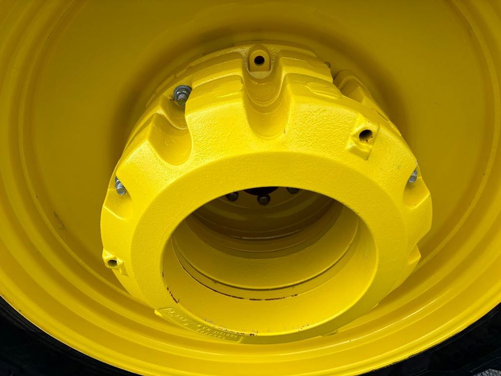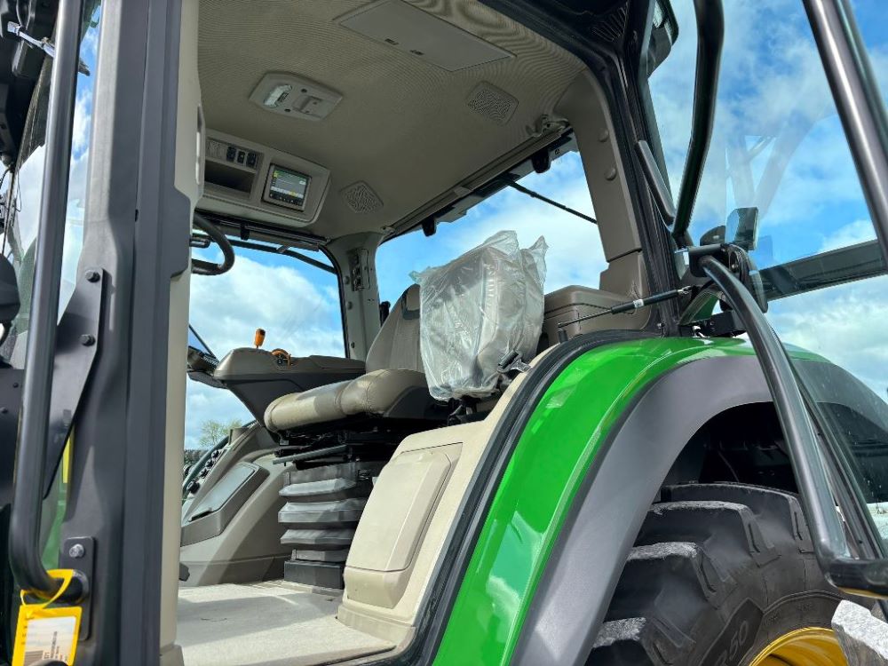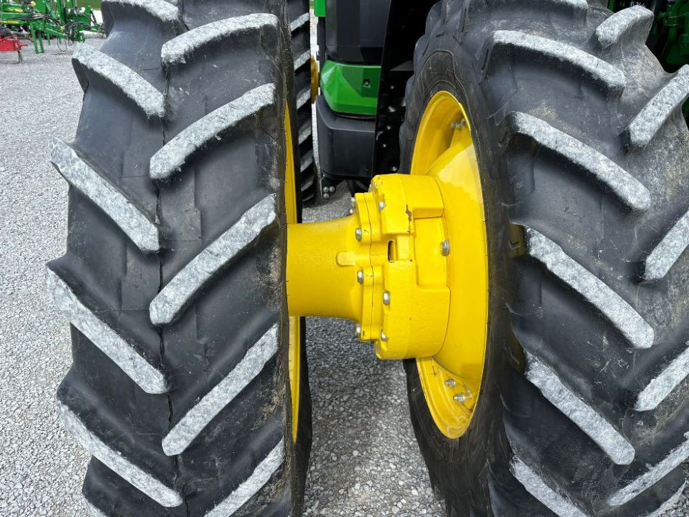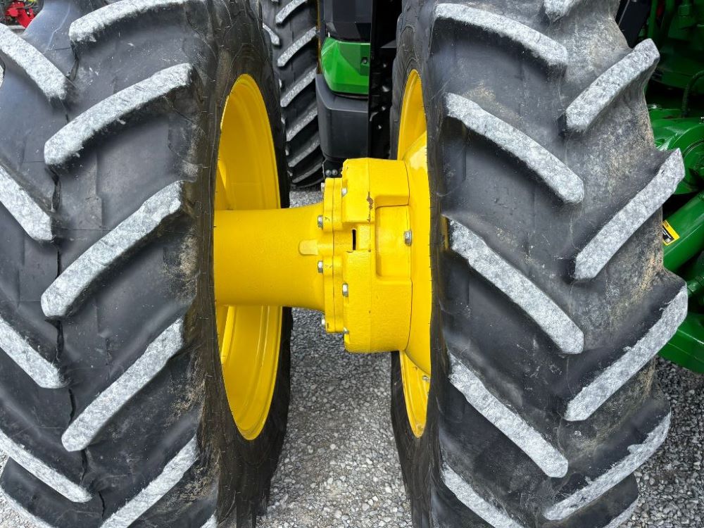 2023 John Deere 8R 370 MFWD Tractor (GP6973), John Deere 370HP 9.0L 6 cylinder diesel engine, signature edition, E23 Power Shift transmission with efficiency manager, right hand reverser with bump to shift controls, Premium cab with cab suspension, heat, air conditioning, Am/Fm radio, ultimate comfort and convenience package, premium leather air driver seat, leather buddy seat, hydraulic power steering, 84 GPM dual hydraulic pump, 5 rear remote hydraulic valves with ISO couplers and high pressure relief levers, 1000 PTO, CAT 4N three point quick hitch with quick coupler, CAT 4 draw bar with HD support, aux case drain coupler, power beyond pressure coupler, load sense coupler, rear differential lock, ILS MFWD front axle dual ready with hydraulic differential lock, (22) front suitcase weights, Michelin 380/80R38 front duals, Michelin 480/80R50 rear duals, Gen 4, 4600 command center (10") color display with automation 4.0 activation for auto-trac, turn automation, implement guidance, senction control, RowSense, data sync & data share (requires JD global position receiver which is NOT included), JD Link MTG, shows 338 hours.