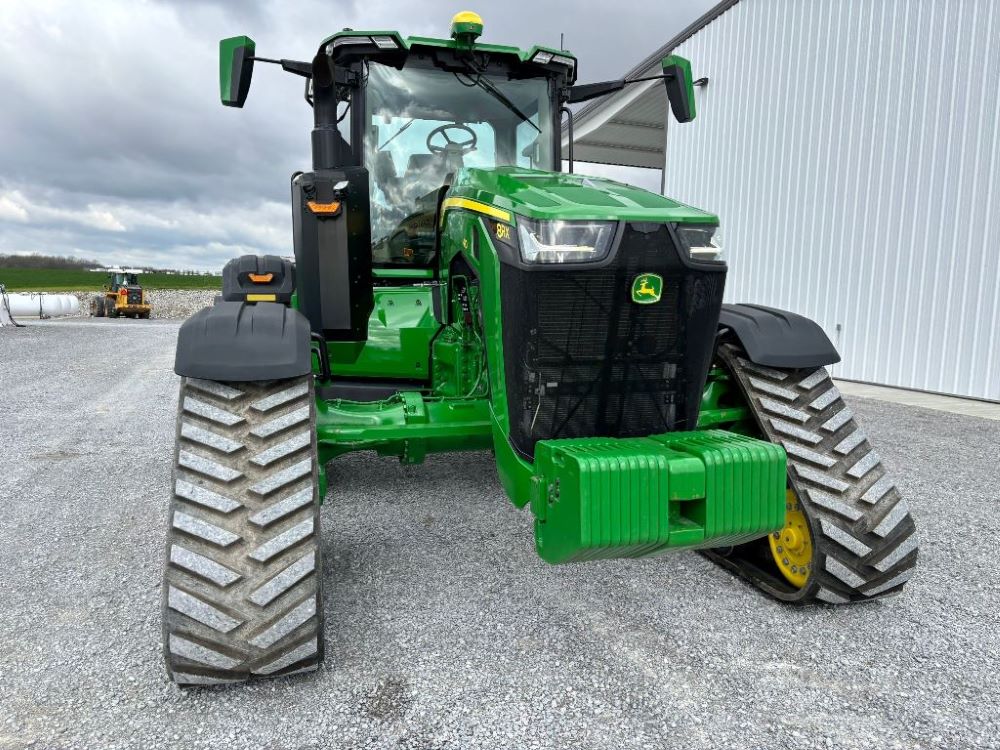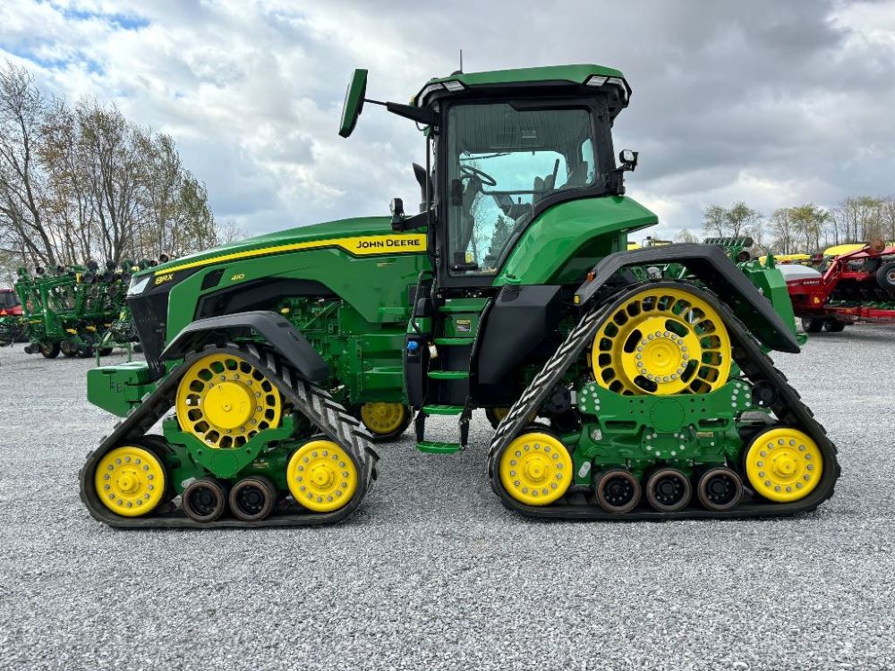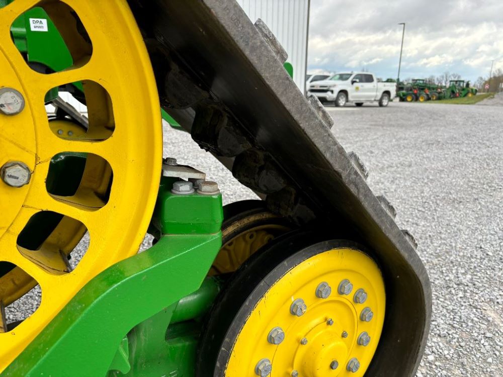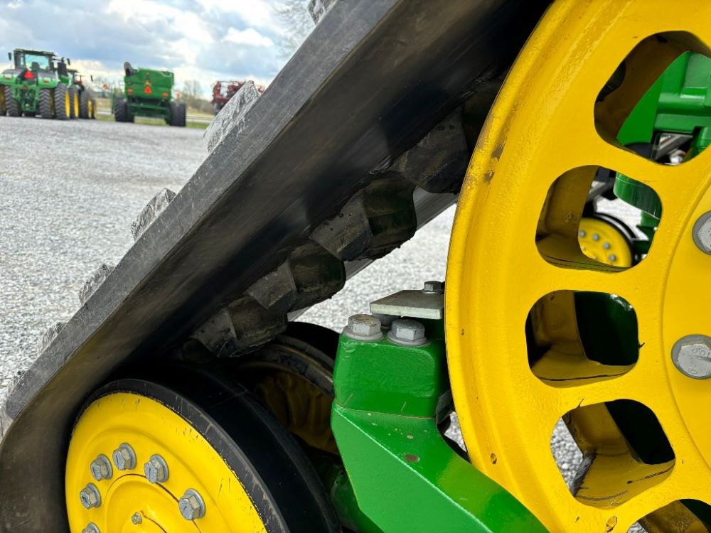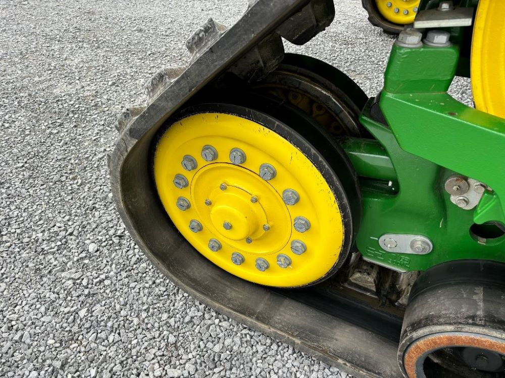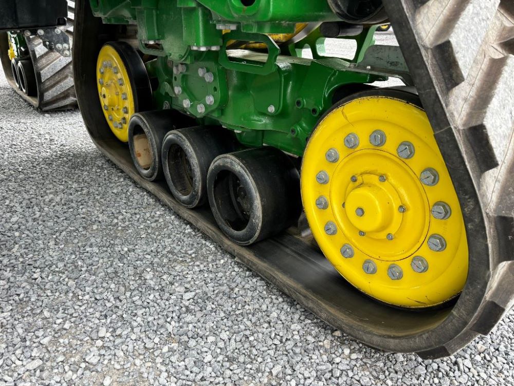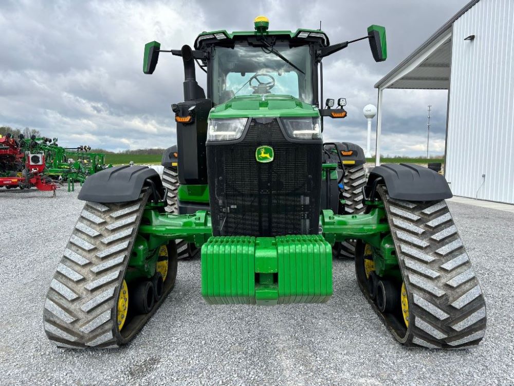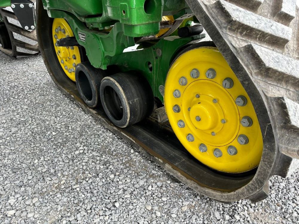 2023 John Deere 8RX 410 Tractor (GP6972), John Deere diesel engine, signature edition E23 transmission, right hand reverser with bump to shift controls, leather air drivers seat, leather buddy seat, cab suspension, CAMSO 24" tracks, 120" tread spacing, 5 port hydraulic outlets, 1000 PTO, CAT 4 adjustable swing, quick hitch, foot operated speed control, (18) front suitcase weights, 4600 command center, automation 4.0, StarFire 6000 receiver, shows 390 hours.