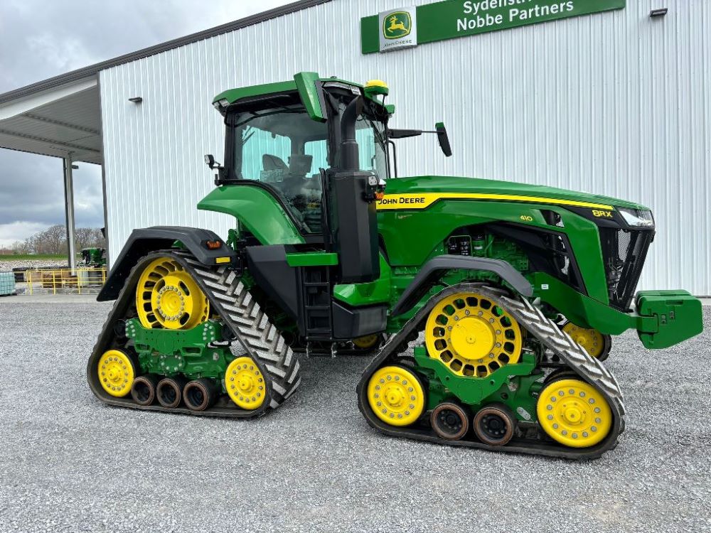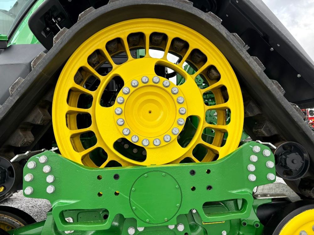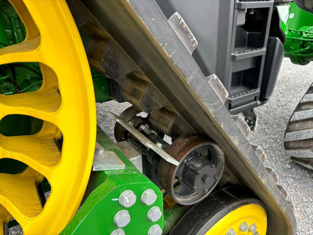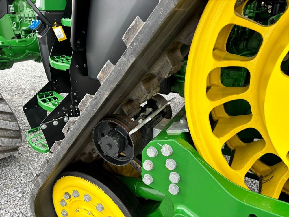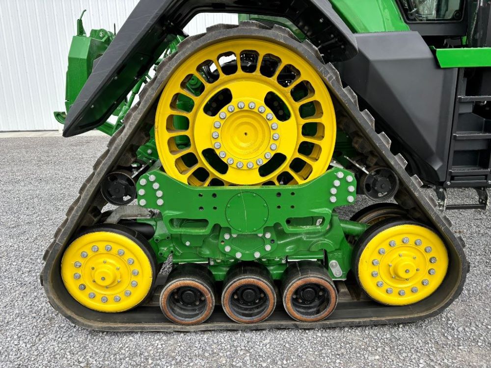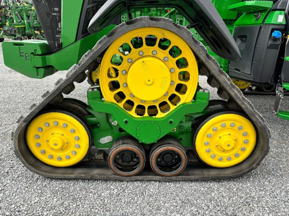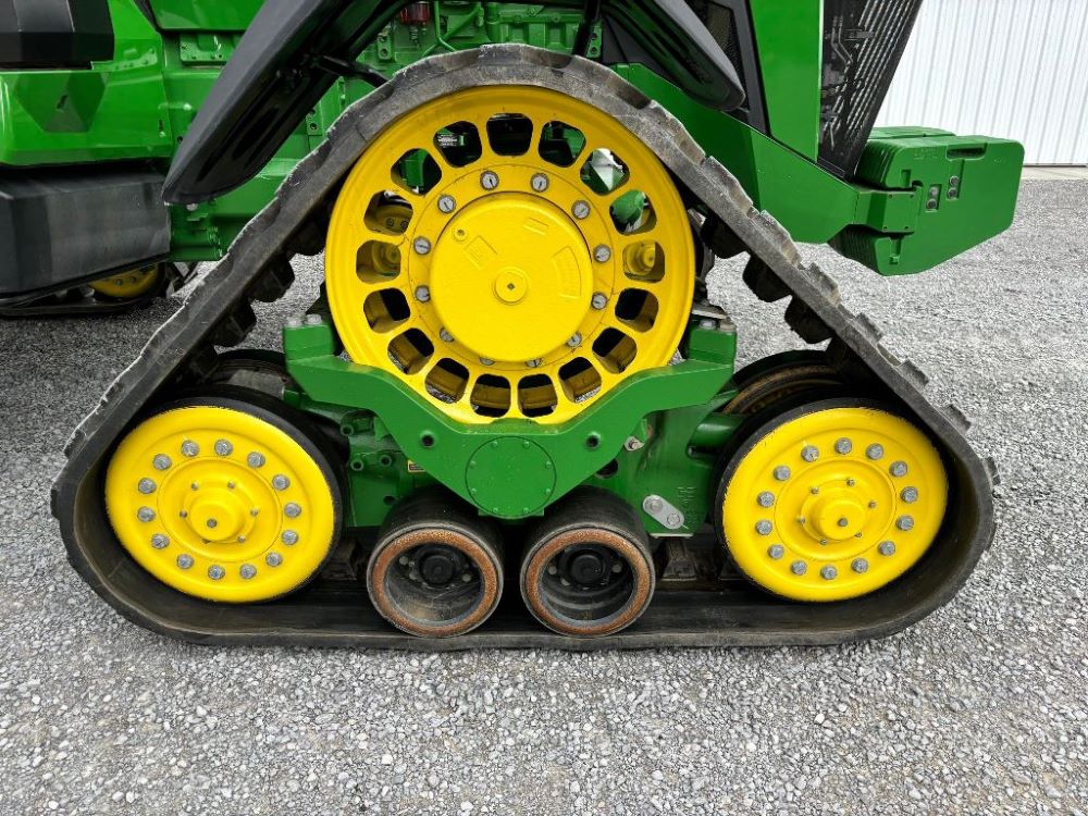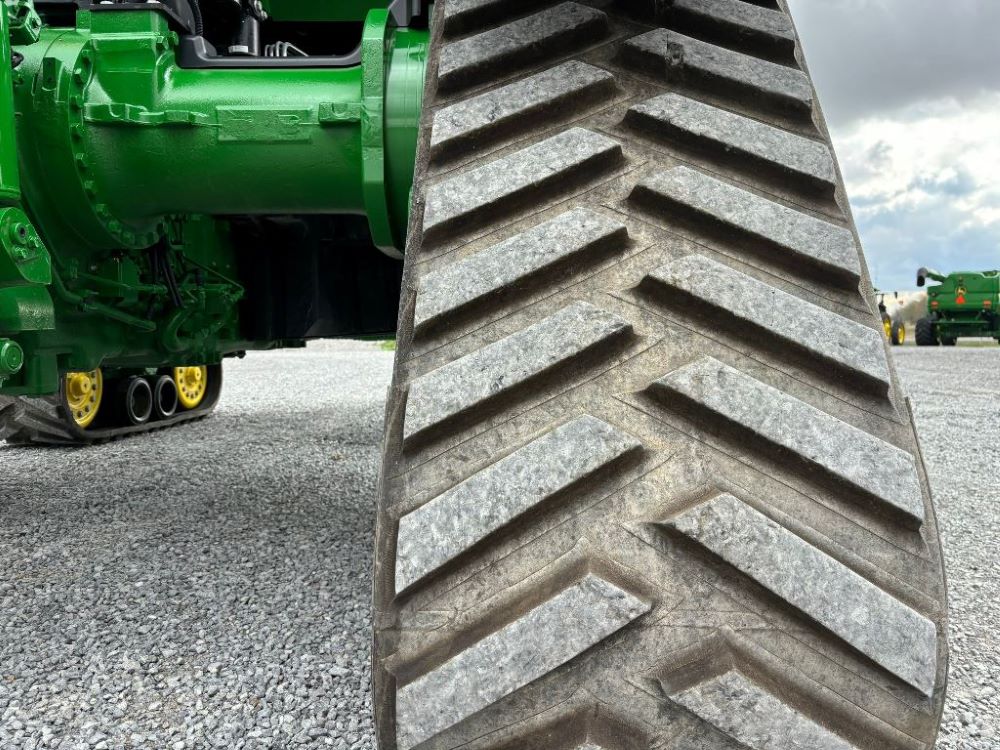 2023 John Deere 8RX 410 Tractor (GP6972), John Deere diesel engine, signature edition E23 transmission, right hand reverser with bump to shift controls, leather air drivers seat, leather buddy seat, cab suspension, CAMSO 24" tracks, 120" tread spacing, 5 port hydraulic outlets, 1000 PTO, CAT 4 adjustable swing, quick hitch, foot operated speed control, (18) front suitcase weights, 4600 command center, automation 4.0, StarFire 6000 receiver, shows 390 hours.