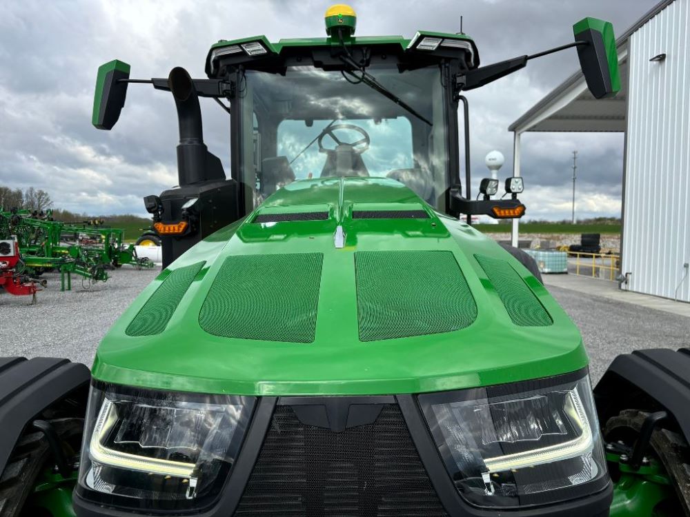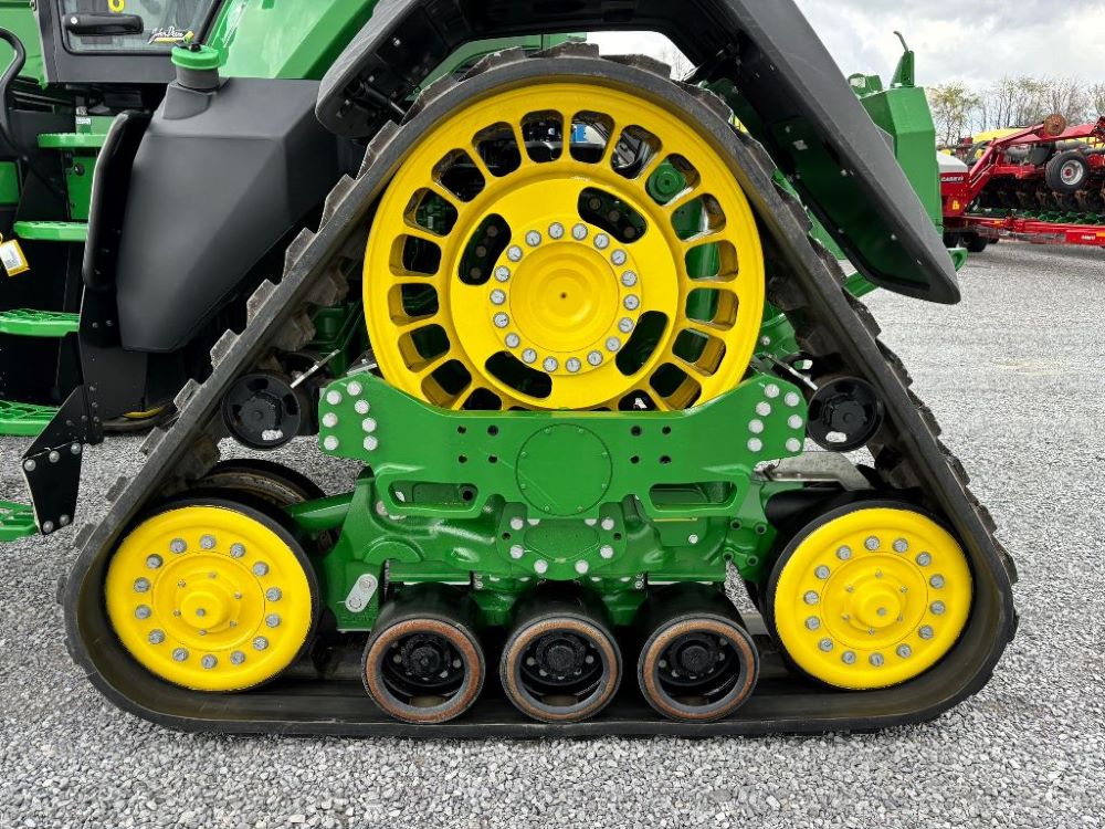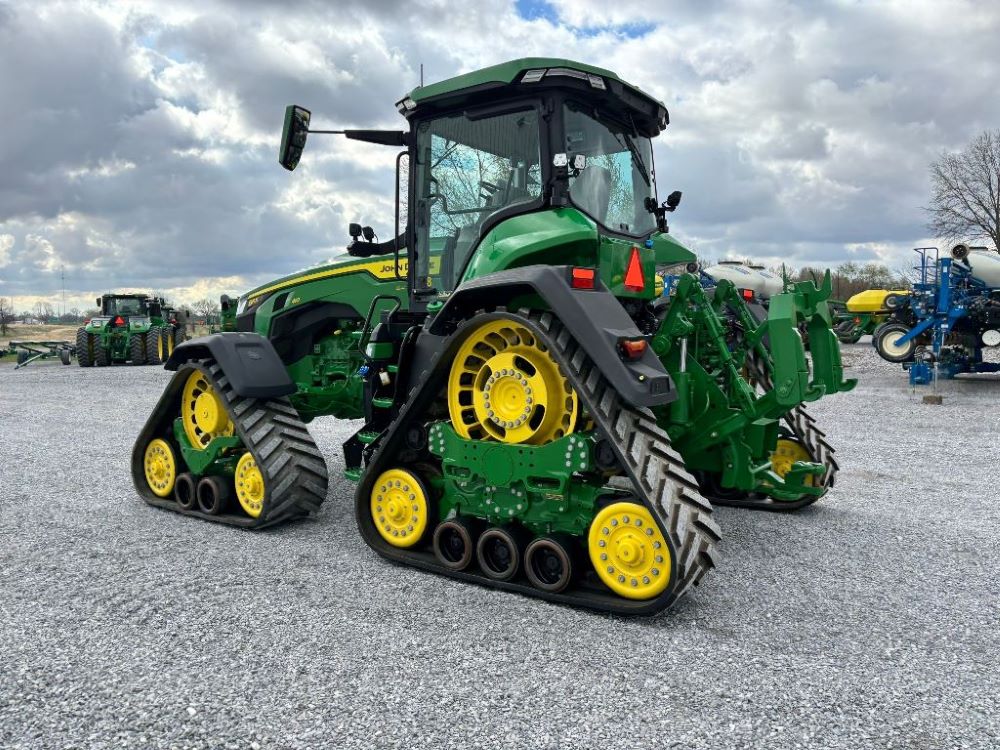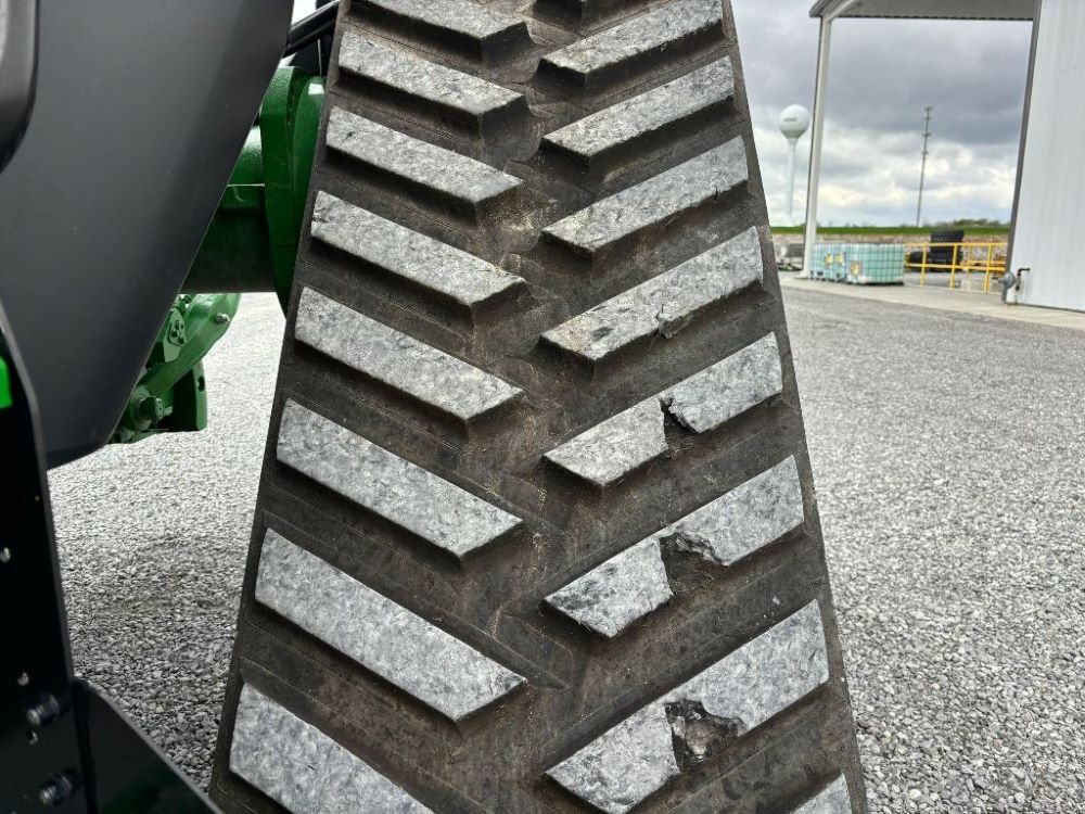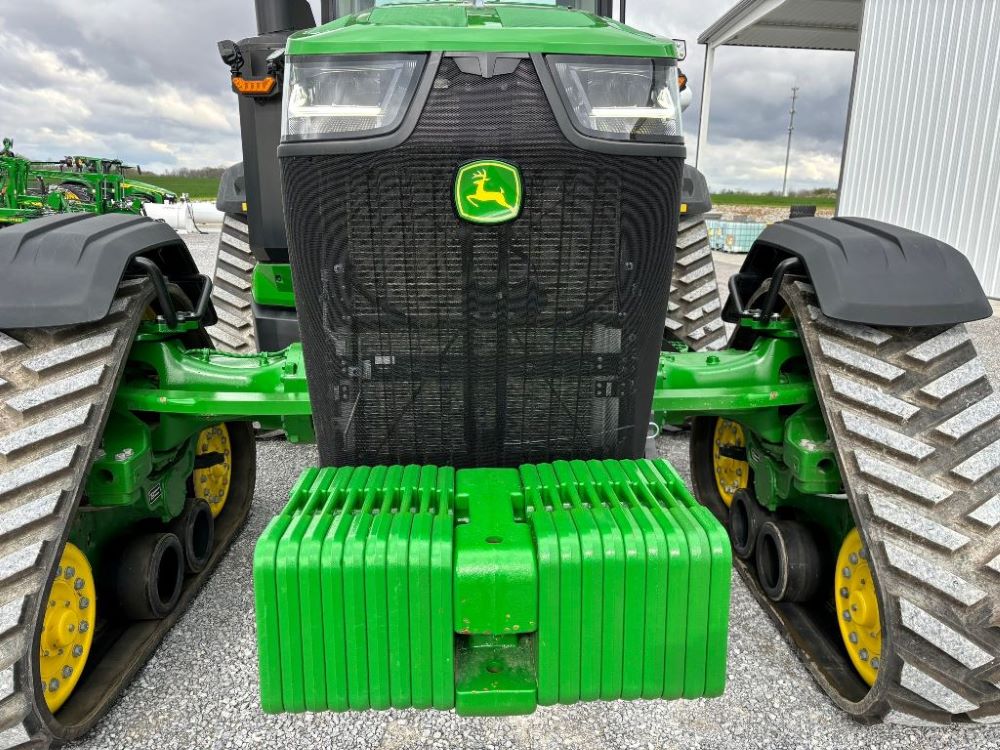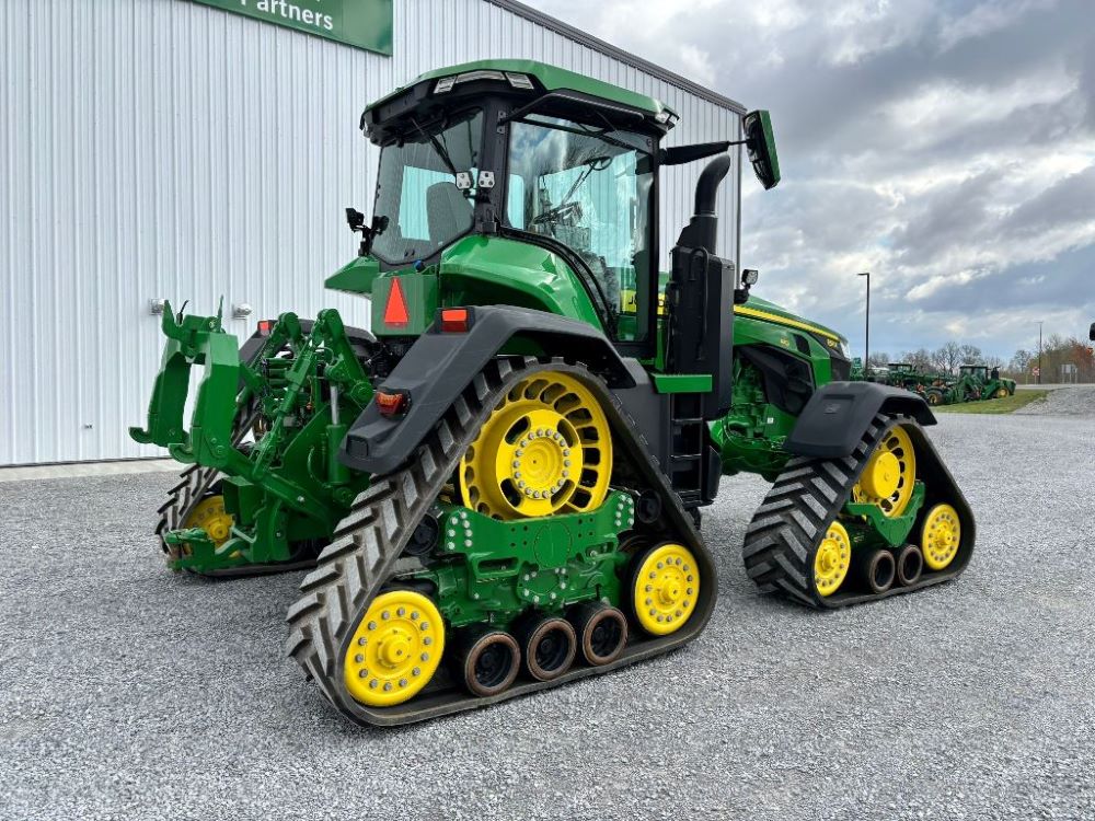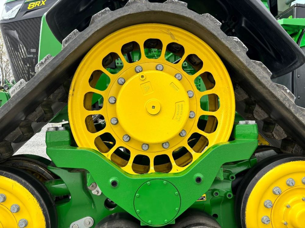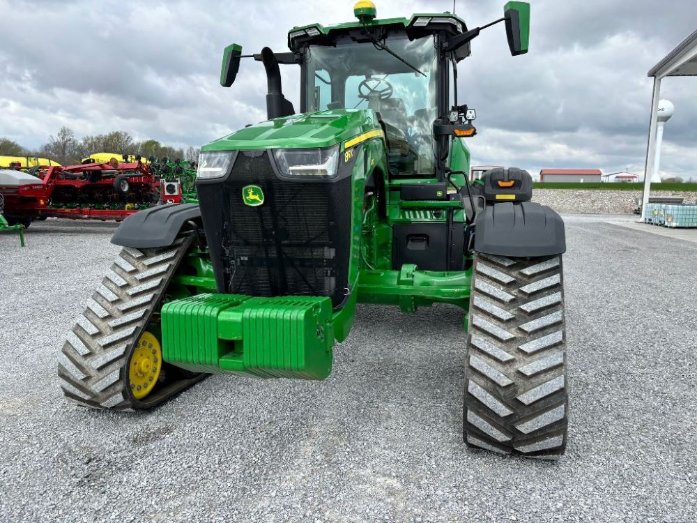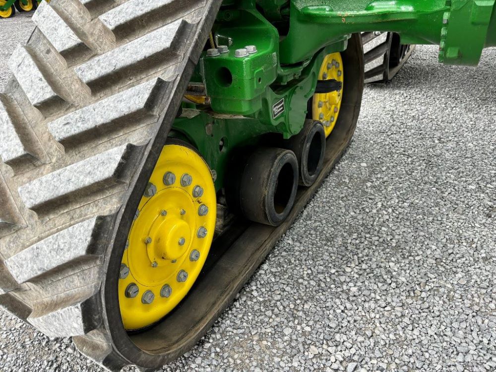 2023 John Deere 8RX 410 Tractor (GP6972), John Deere diesel engine, signature edition E23 transmission, right hand reverser with bump to shift controls, leather air drivers seat, leather buddy seat, cab suspension, CAMSO 24" tracks, 120" tread spacing, 5 port hydraulic outlets, 1000 PTO, CAT 4 adjustable swing, quick hitch, foot operated speed control, (18) front suitcase weights, 4600 command center, automation 4.0, StarFire 6000 receiver, shows 390 hours.