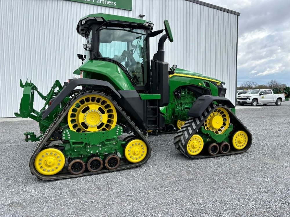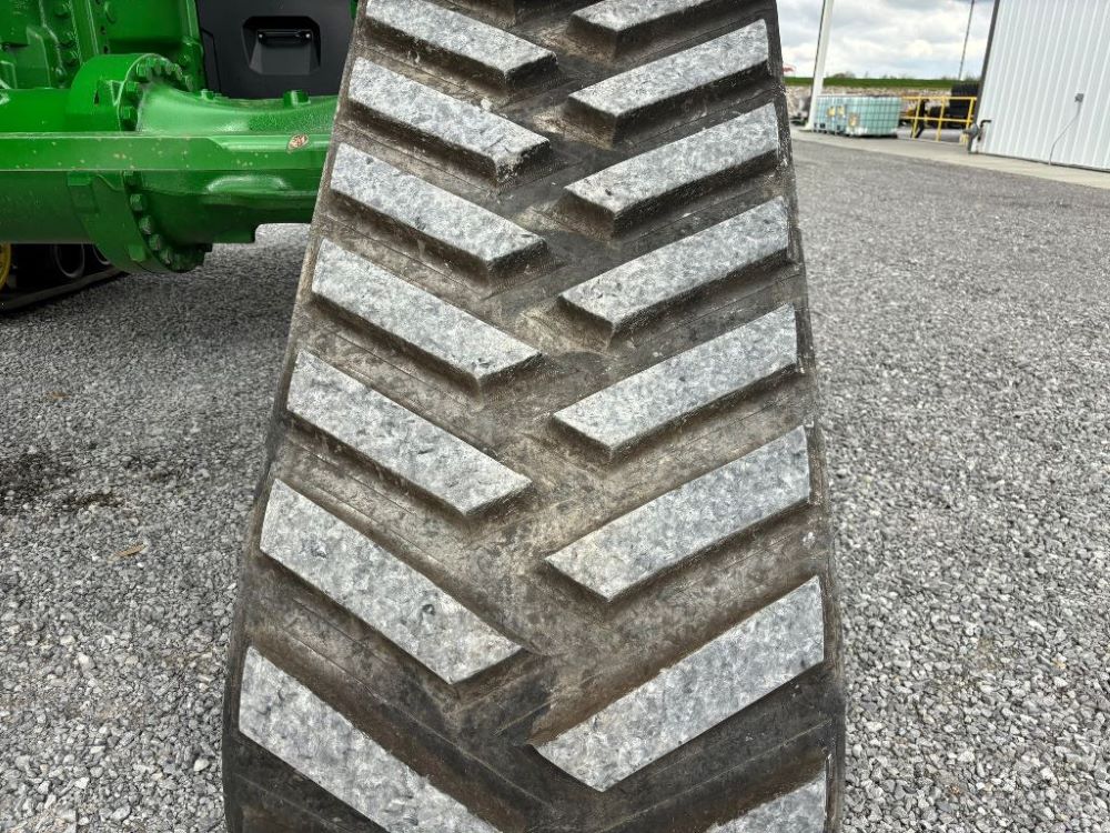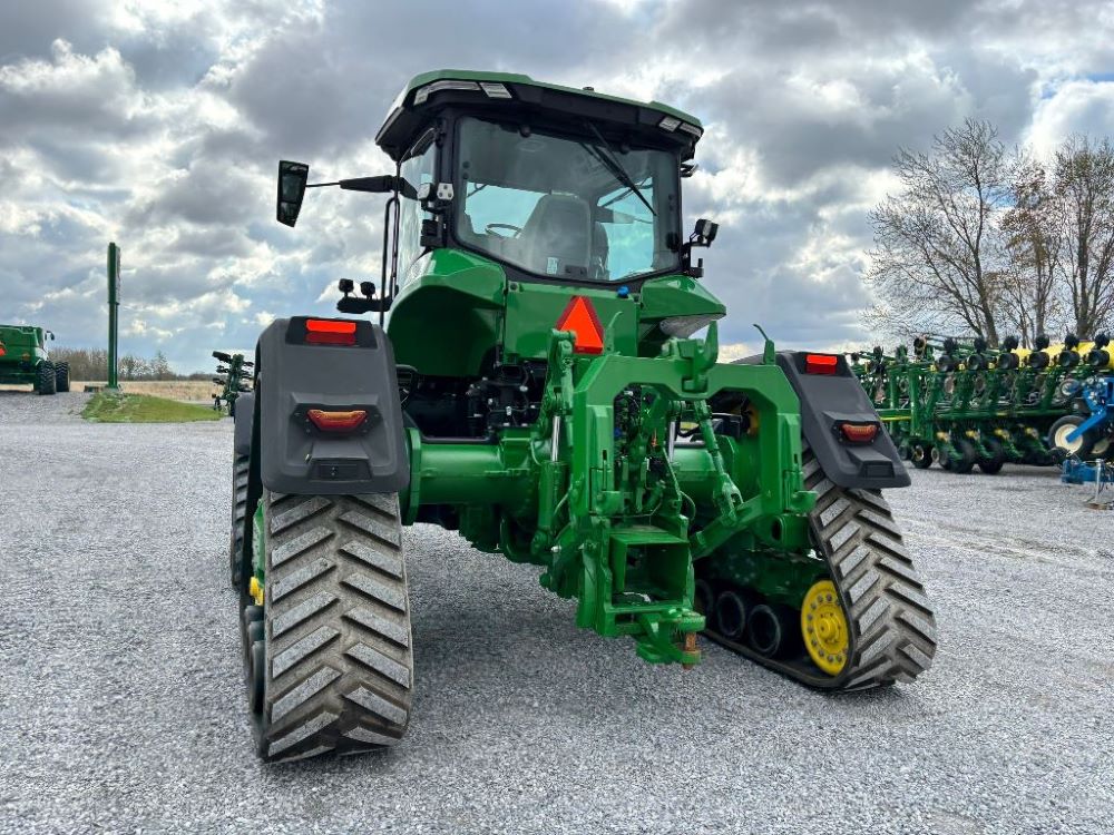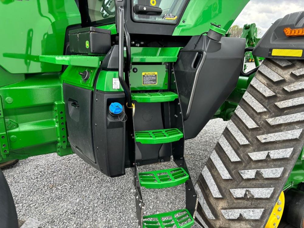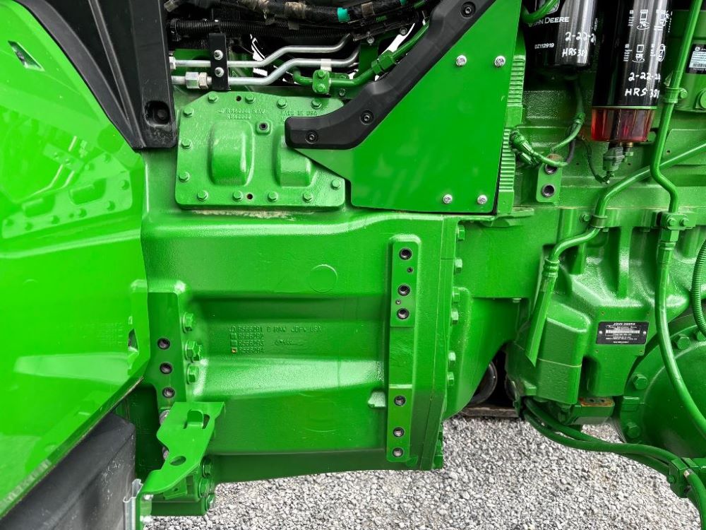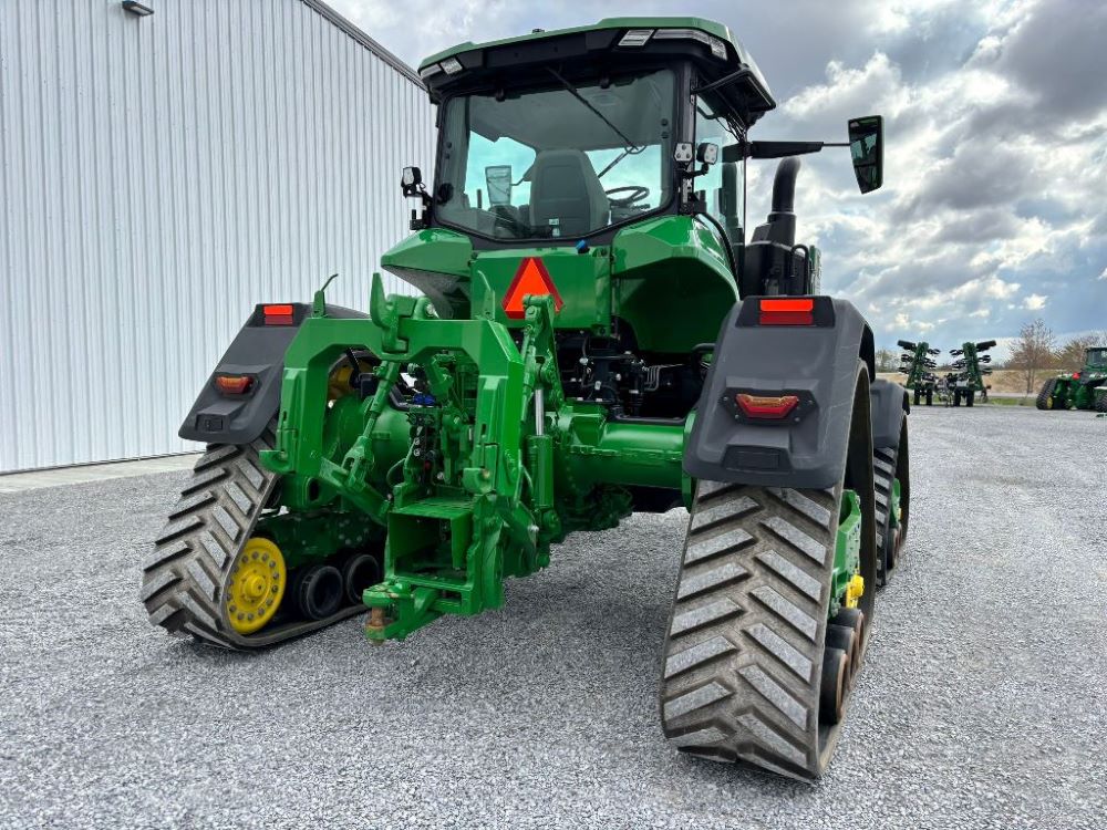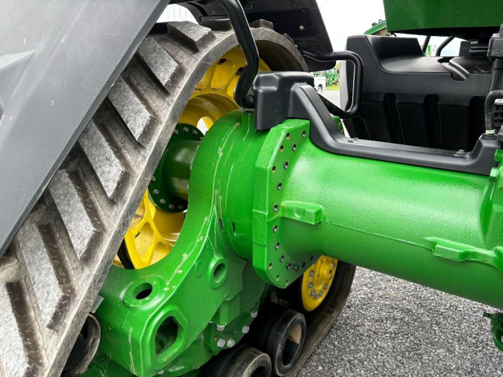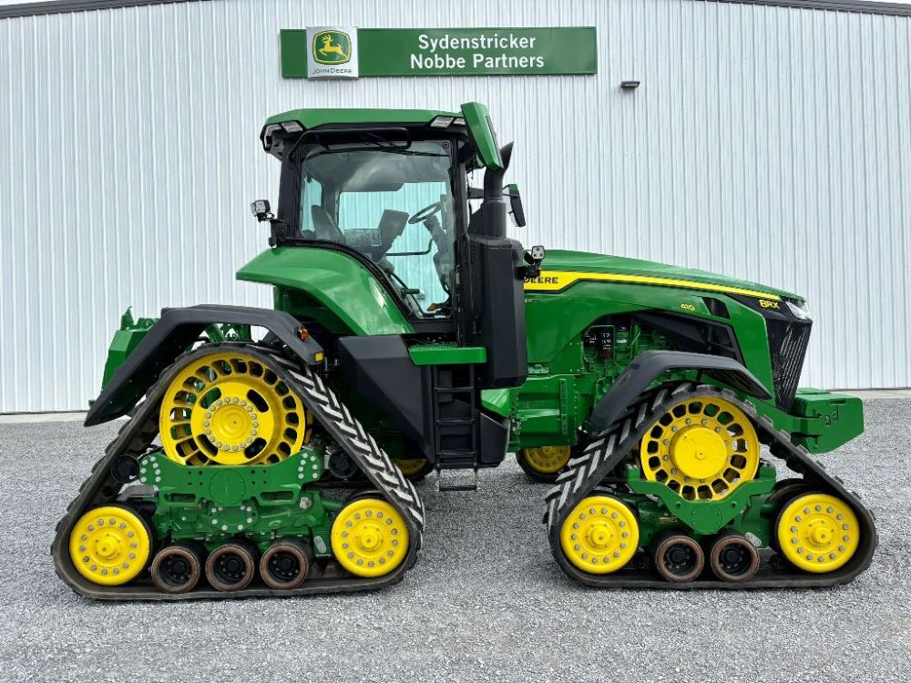 2023 John Deere 8RX 410 Tractor (GP6972), John Deere diesel engine, signature edition E23 transmission, right hand reverser with bump to shift controls, leather air drivers seat, leather buddy seat, cab suspension, CAMSO 24" tracks, 120" tread spacing, 5 port hydraulic outlets, 1000 PTO, CAT 4 adjustable swing, quick hitch, foot operated speed control, (18) front suitcase weights, 4600 command center, automation 4.0, StarFire 6000 receiver, shows 390 hours.