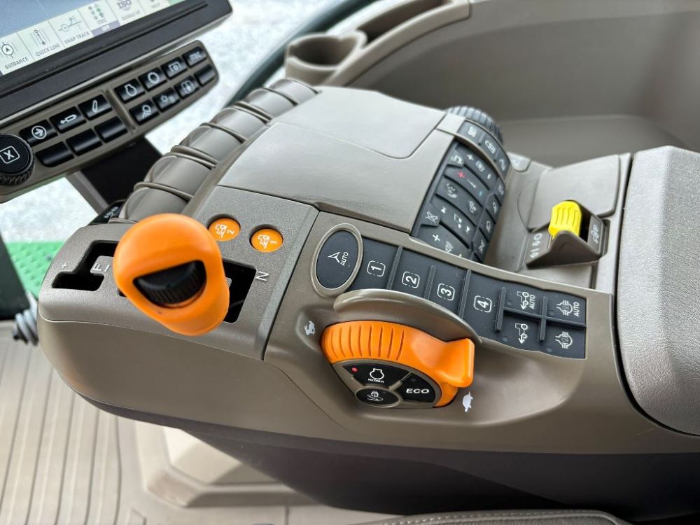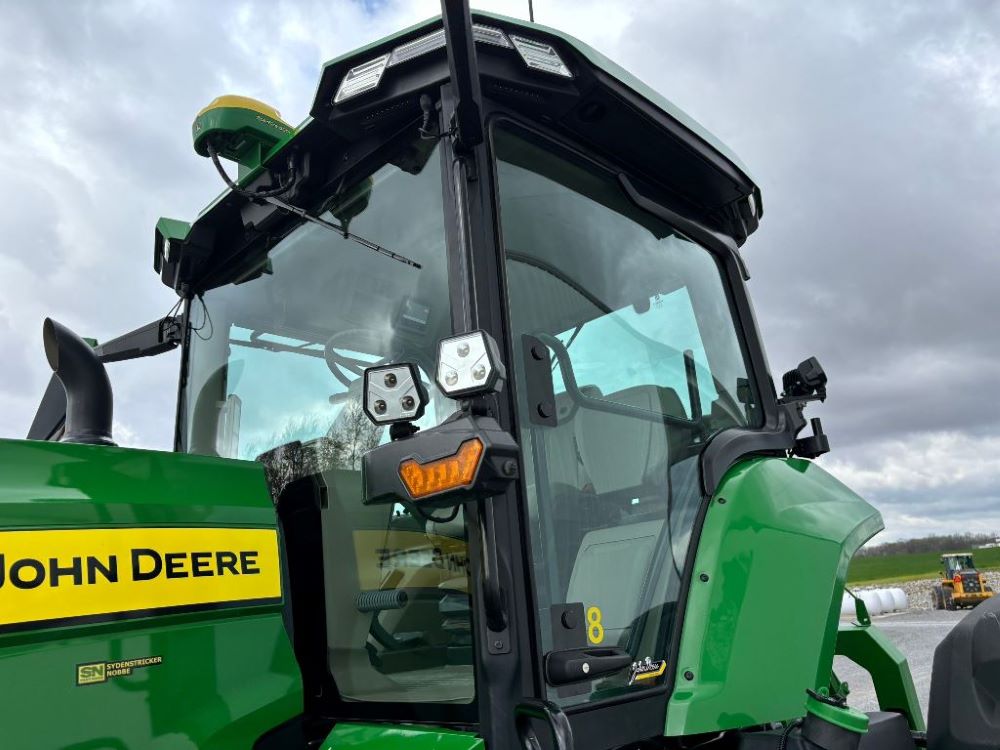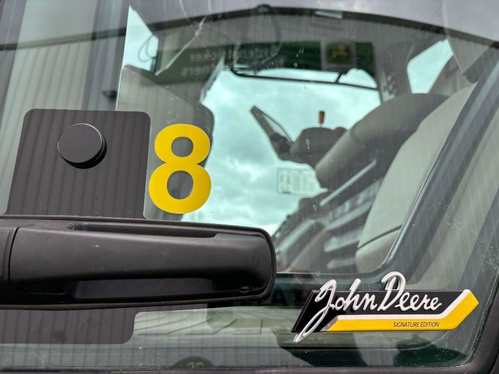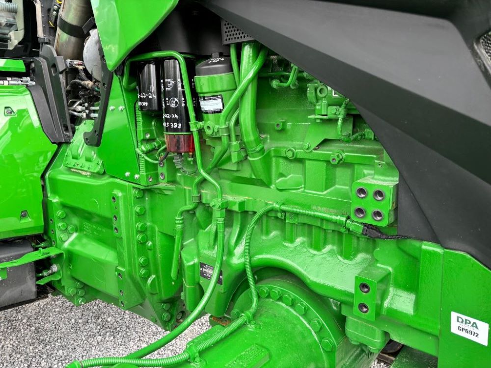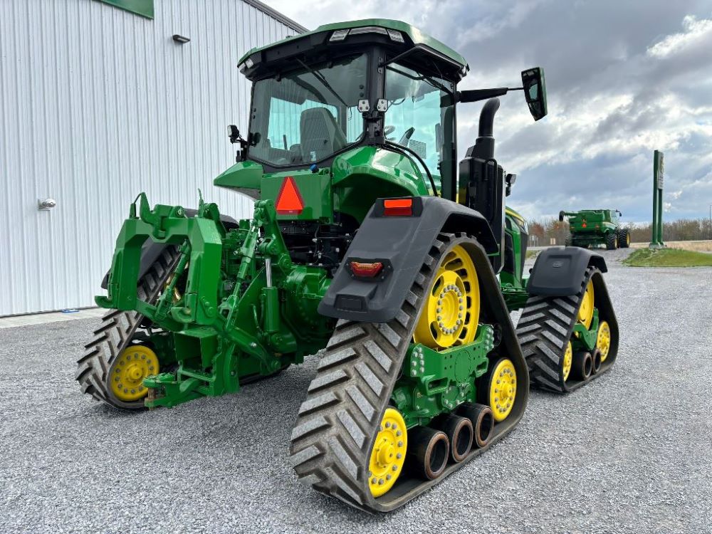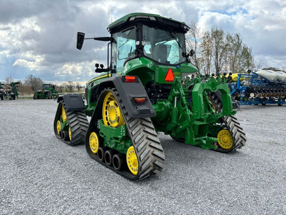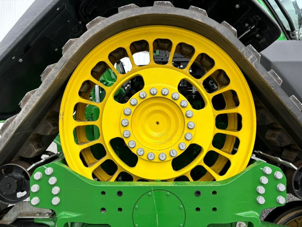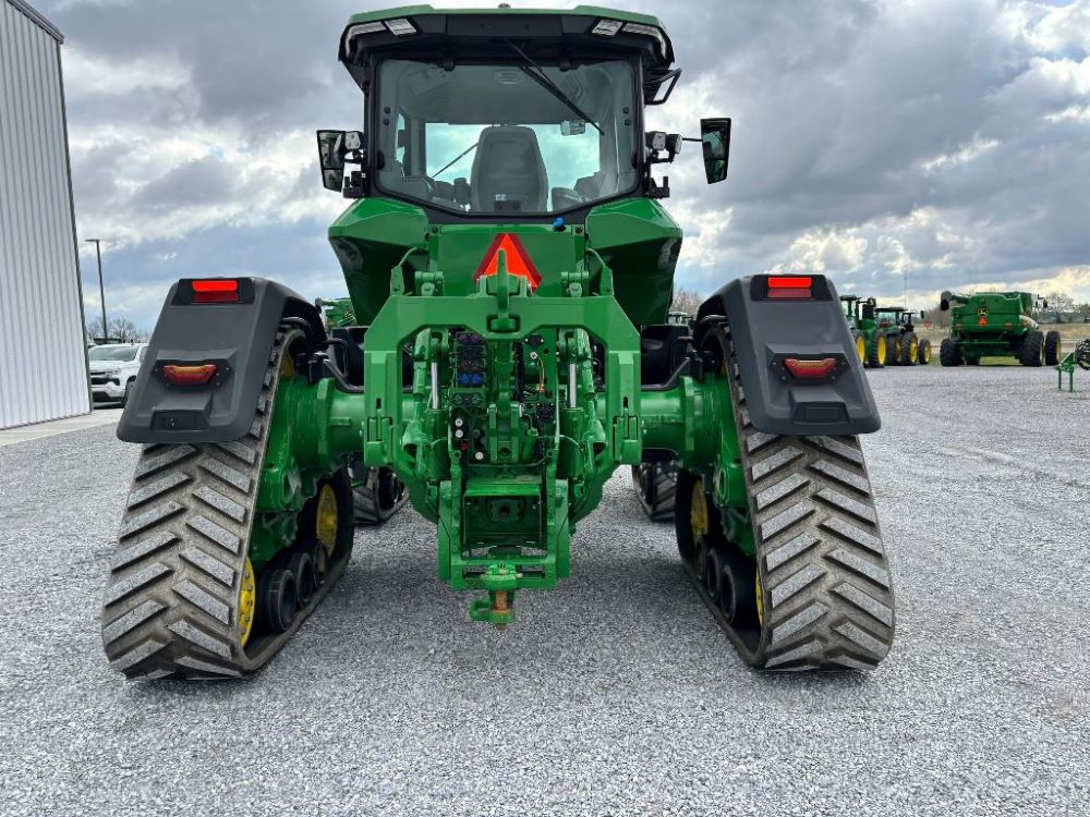 2023 John Deere 8RX 410 Tractor (GP6972), John Deere diesel engine, signature edition E23 transmission, right hand reverser with bump to shift controls, leather air drivers seat, leather buddy seat, cab suspension, CAMSO 24" tracks, 120" tread spacing, 5 port hydraulic outlets, 1000 PTO, CAT 4 adjustable swing, quick hitch, foot operated speed control, (18) front suitcase weights, 4600 command center, automation 4.0, StarFire 6000 receiver, shows 390 hours.