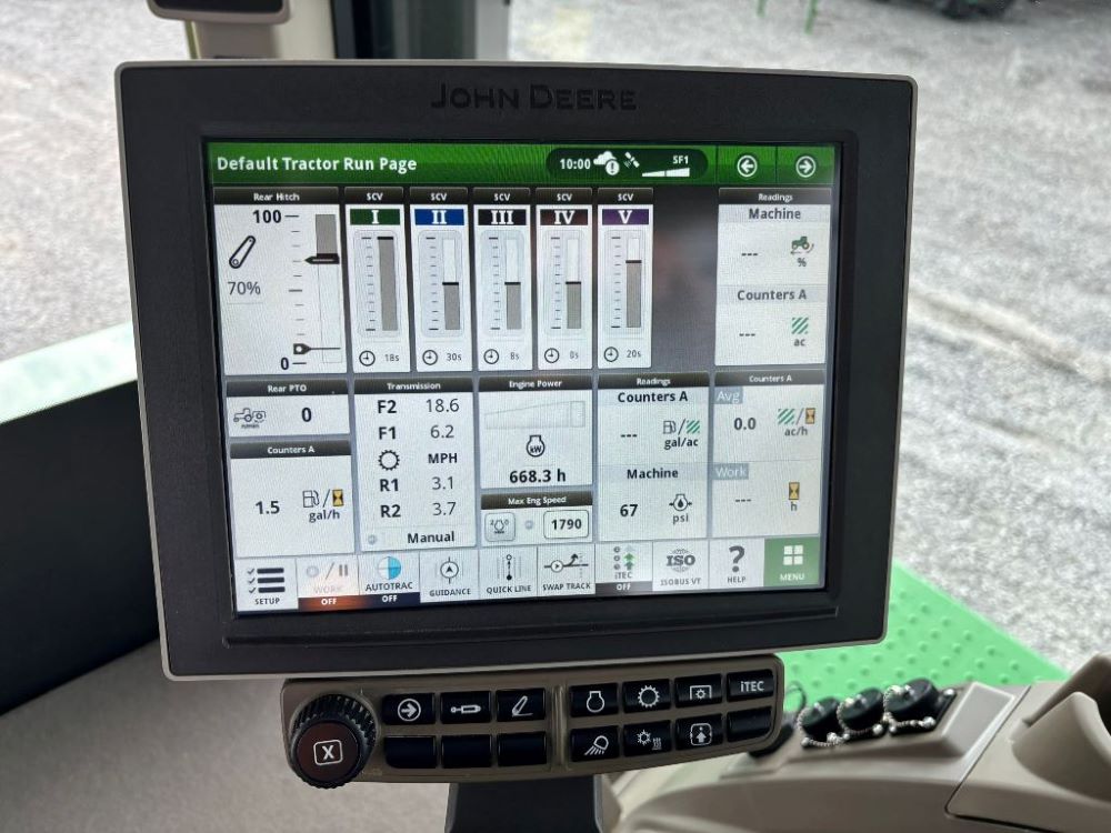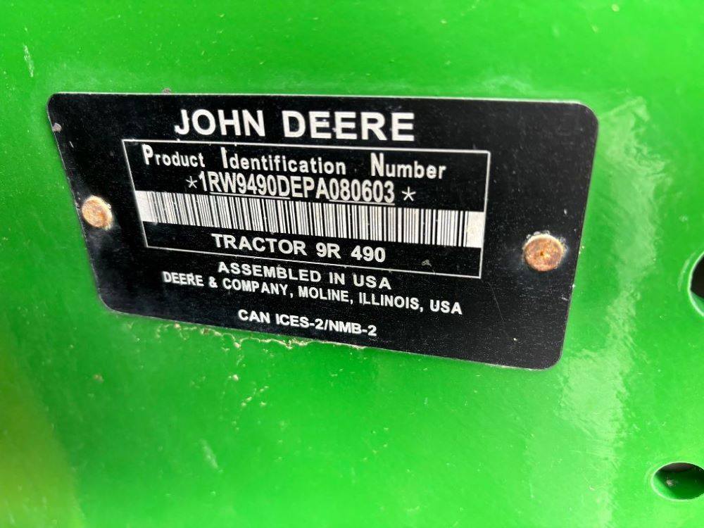 2023 John Deere 9R 490 Articulated 4WD Tractor (GP6974), John Deere 490HP diesel engine, signature edition, E18 transmission, heat, air conditioning, Am/Fm radio, active seat II, leather driver seat, leather buddy seat, hydraulic power steering, 5 rear hydraulic ports, 1000 PTO, CAT 5 draw bar, quick hitch, heavy duty frame with Tapere, Firestone 480/80R50 front/rear duals, 4600 command center, automation 4.0, ultimate comfort package, StarFire 6000 receiver, shows 668 hours.2023 John Deere 9R 490 Articulated 4WD Tractor (GP6974), John Deere 490HP diesel engine, signature edition, E18 transmission, heat, air conditioning, Am/Fm radio, active seat II, leather driver seat, leather buddy seat, hydraulic power steering, 5 rear hydraulic ports, 1000 PTO, CAT 5 draw bar, quick hitch, heavy duty frame with Tapere, Firestone 480/80R50 front/rear duals, 4600 command center, automation 4.0, ultimate comfort package, StarFire 6000 receiver, shows 668 hours.