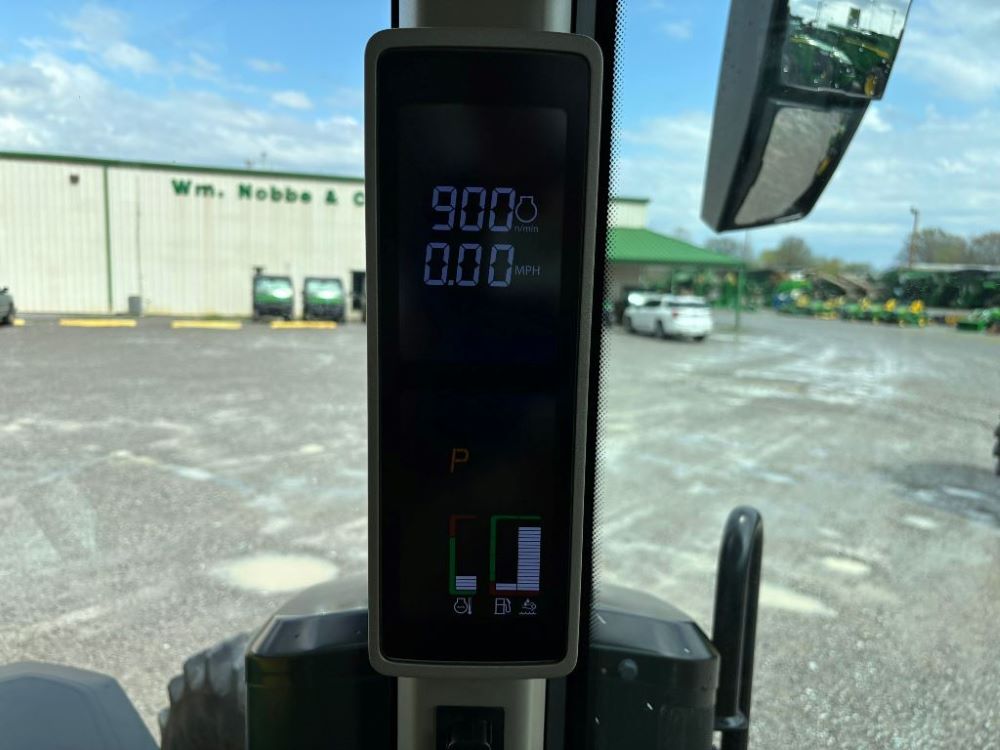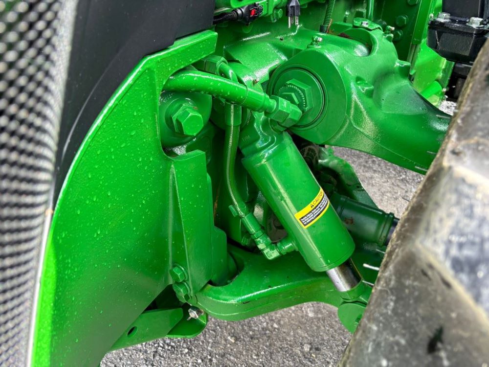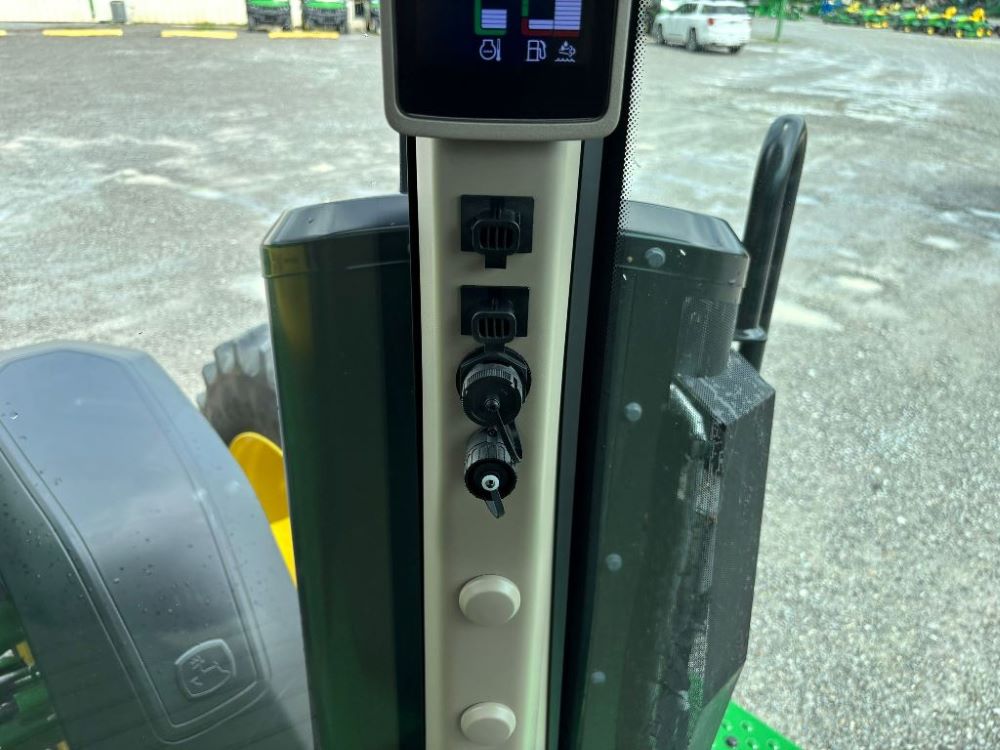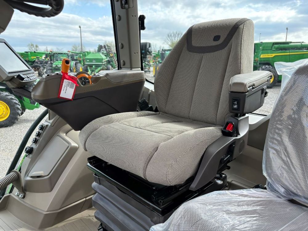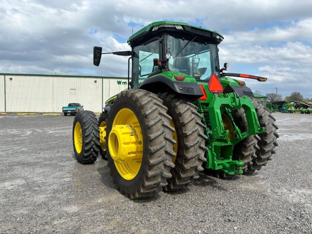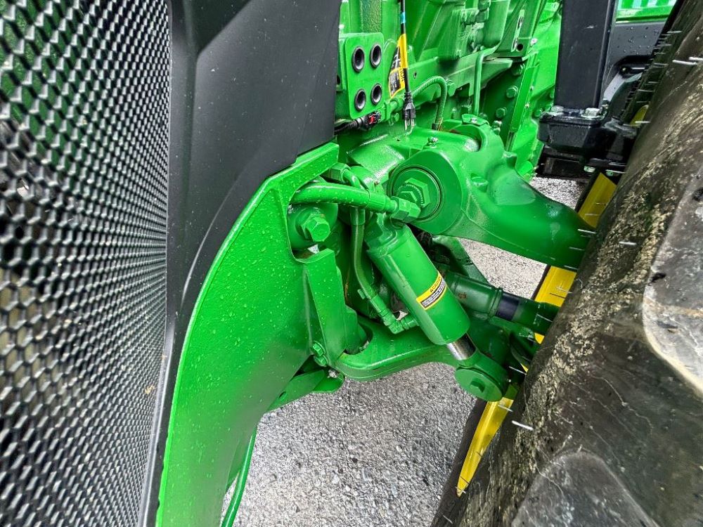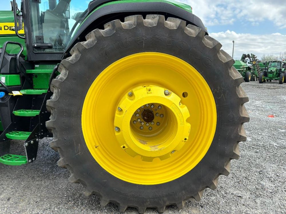 2023 John Deere 8R 340 MFWD Tractor (GP6966), John Deere 340HP 9.0L 6 cylinder diesel engine, E23 power shift transmission with efficiency manager, righ hand reverser with bump to shift controls, Premium cab with cab suspension, premium comfort and convenience package, heat, air conditioning, Am/Fm radio, cloth air driver seat, buddy seat, 5 port hydraulics with ISO couplers and high pressure relief levers, 1000 PTO, (22) CAT 4N/3 three point hitch with quick coupler, Cat 4 drawbar with HD support, aux case drain coupler, power beyond pressure coupler, load sense coupler, front suitcase weights, Firestone 420/85R34 front duals, Firestone 480/80R50 rear duals, rear wheel weights, hydraulic power steering, 60 GPM hyraulic pump, Gen 4, 4600 command center (10") color display with Premium 3.0 activation for auto-trac, section control, RowSense, data sync & data share, JD Link MTG (requires global position receiver which is NOT included), shows 134 hours.