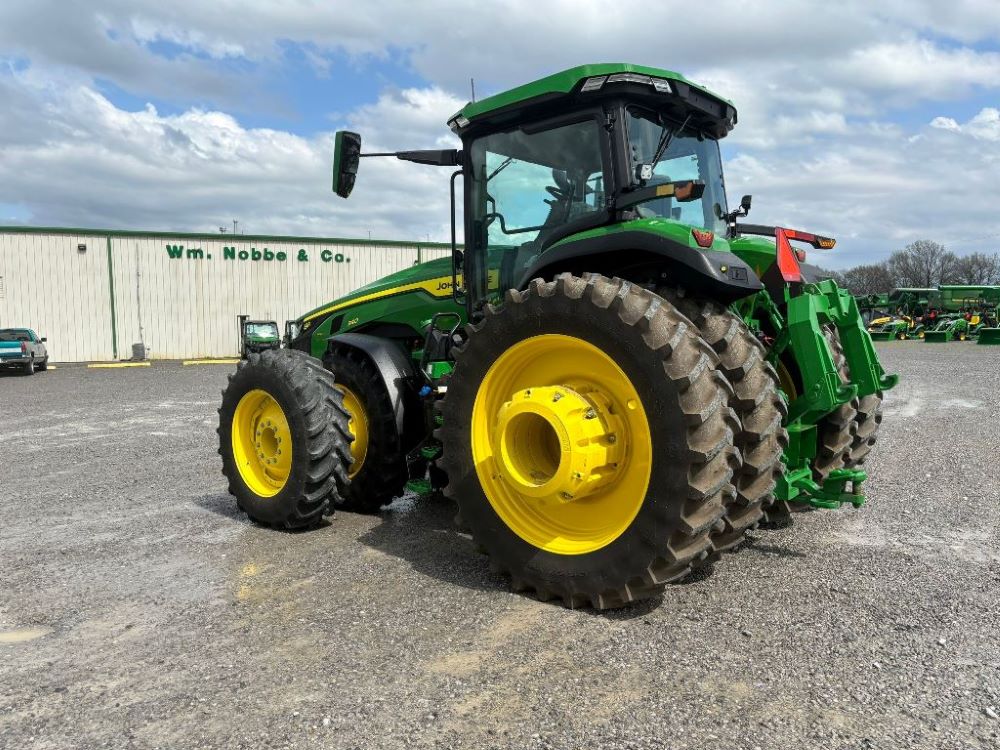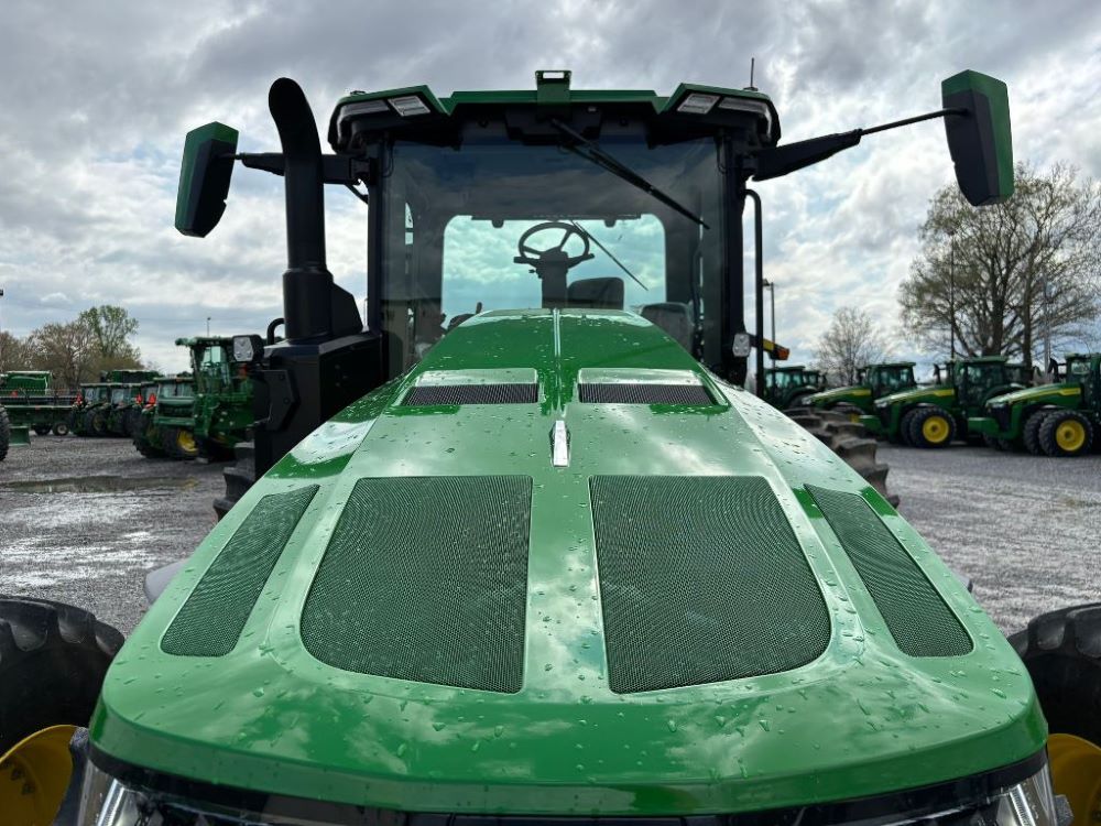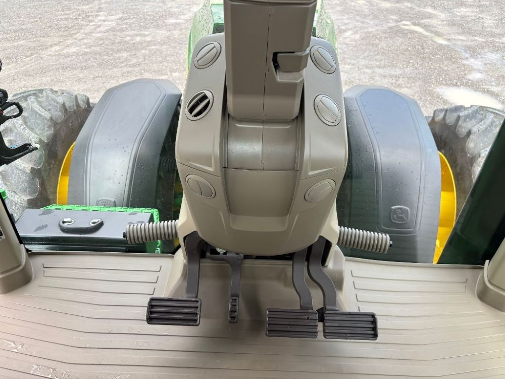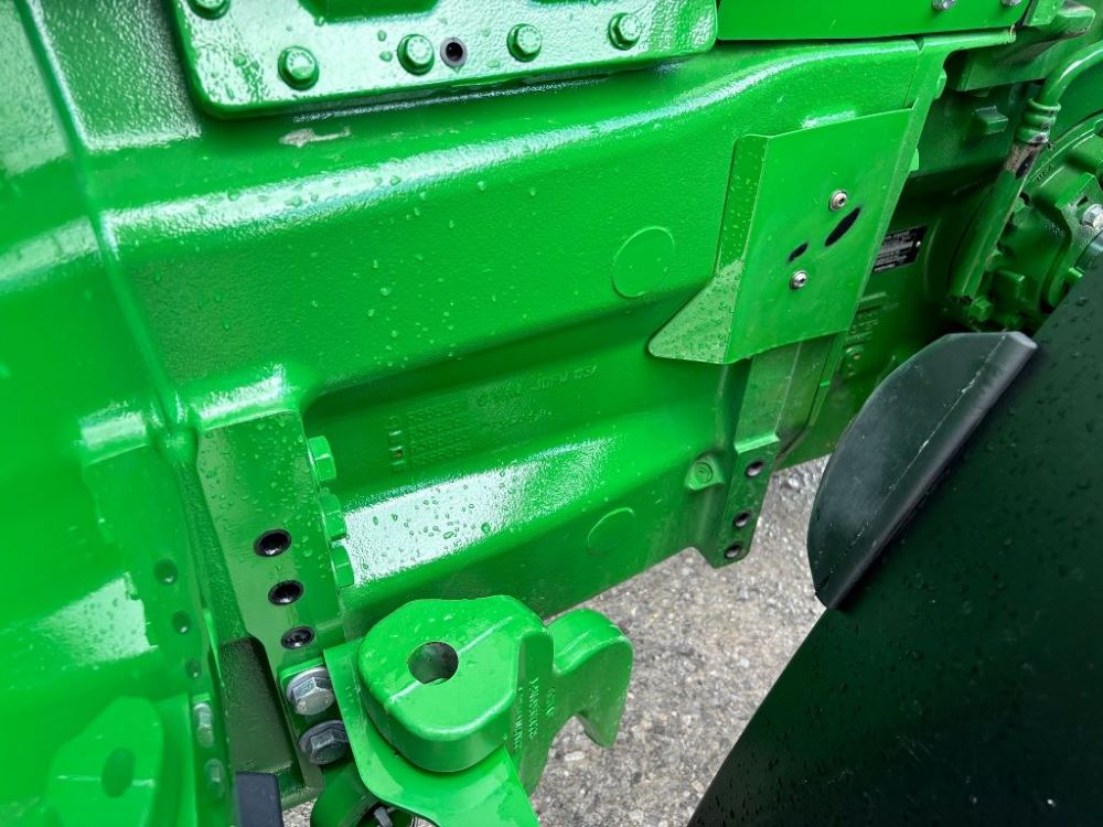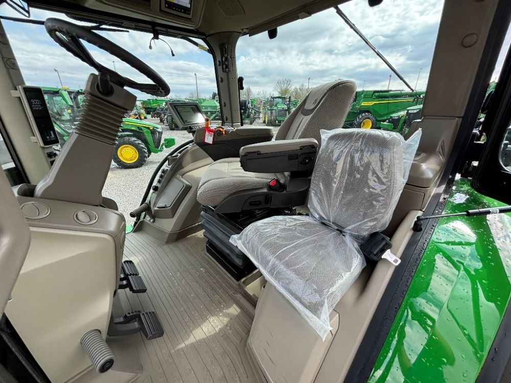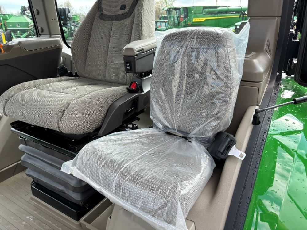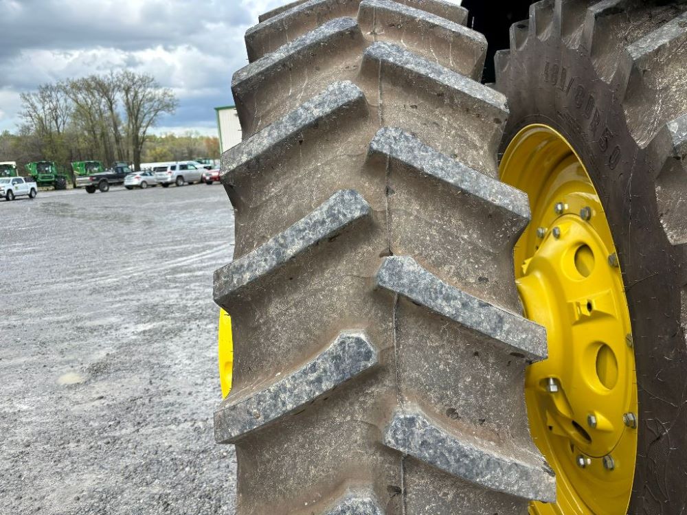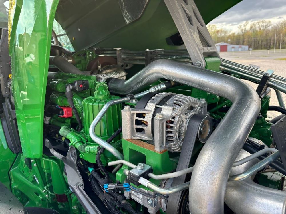 2023 John Deere 8R 340 MFWD Tractor (GP6966), John Deere 340HP 9.0L 6 cylinder diesel engine, E23 power shift transmission with efficiency manager, righ hand reverser with bump to shift controls, Premium cab with cab suspension, premium comfort and convenience package, heat, air conditioning, Am/Fm radio, cloth air driver seat, buddy seat, 5 port hydraulics with ISO couplers and high pressure relief levers, 1000 PTO, (22) CAT 4N/3 three point hitch with quick coupler, Cat 4 drawbar with HD support, aux case drain coupler, power beyond pressure coupler, load sense coupler, front suitcase weights, Firestone 420/85R34 front duals, Firestone 480/80R50 rear duals, rear wheel weights, hydraulic power steering, 60 GPM hyraulic pump, Gen 4, 4600 command center (10") color display with Premium 3.0 activation for auto-trac, section control, RowSense, data sync & data share, JD Link MTG (requires global position receiver which is NOT included), shows 134 hours.
