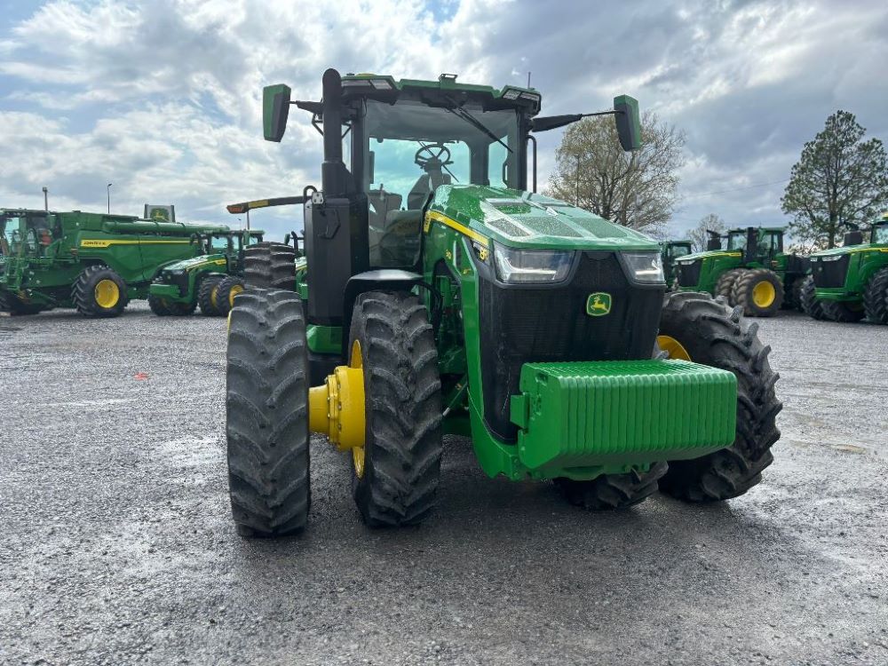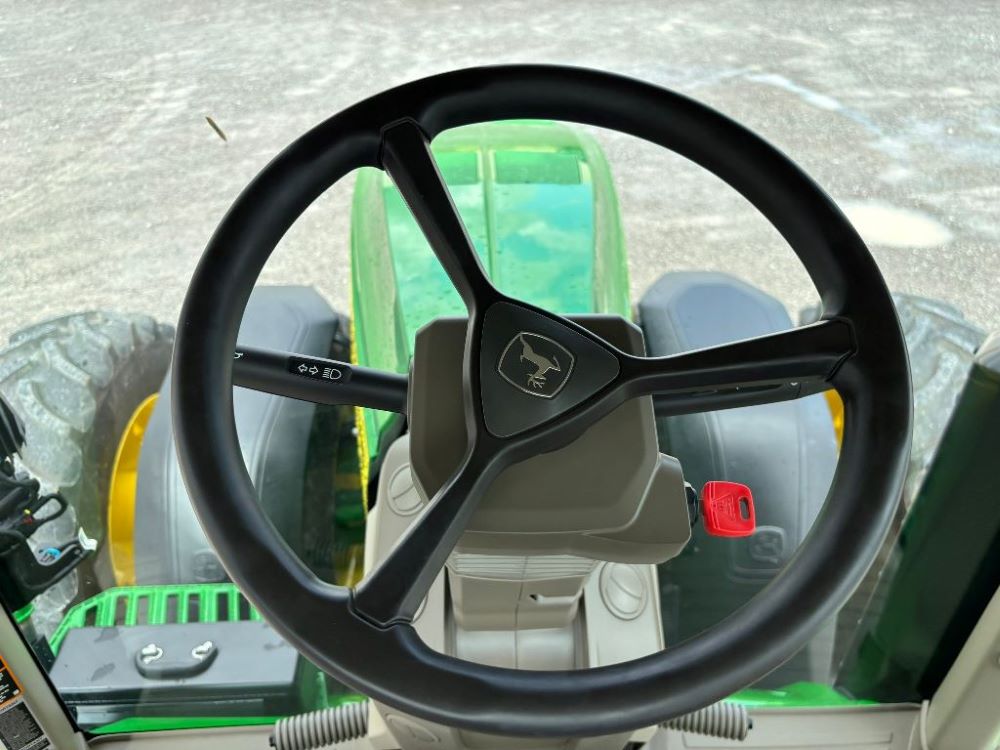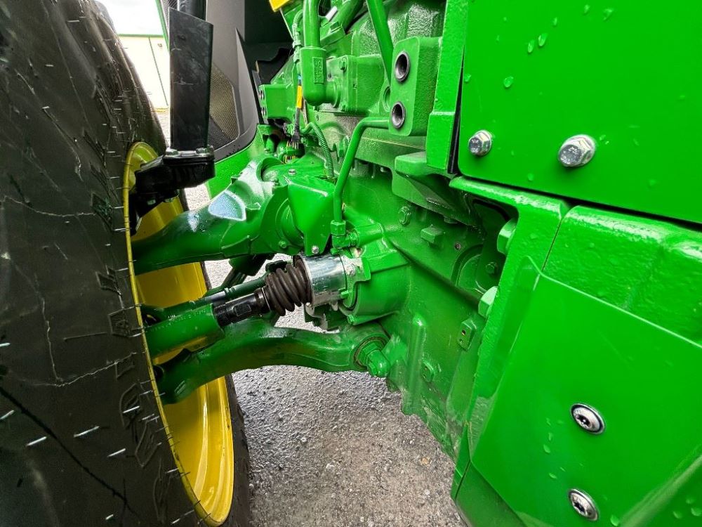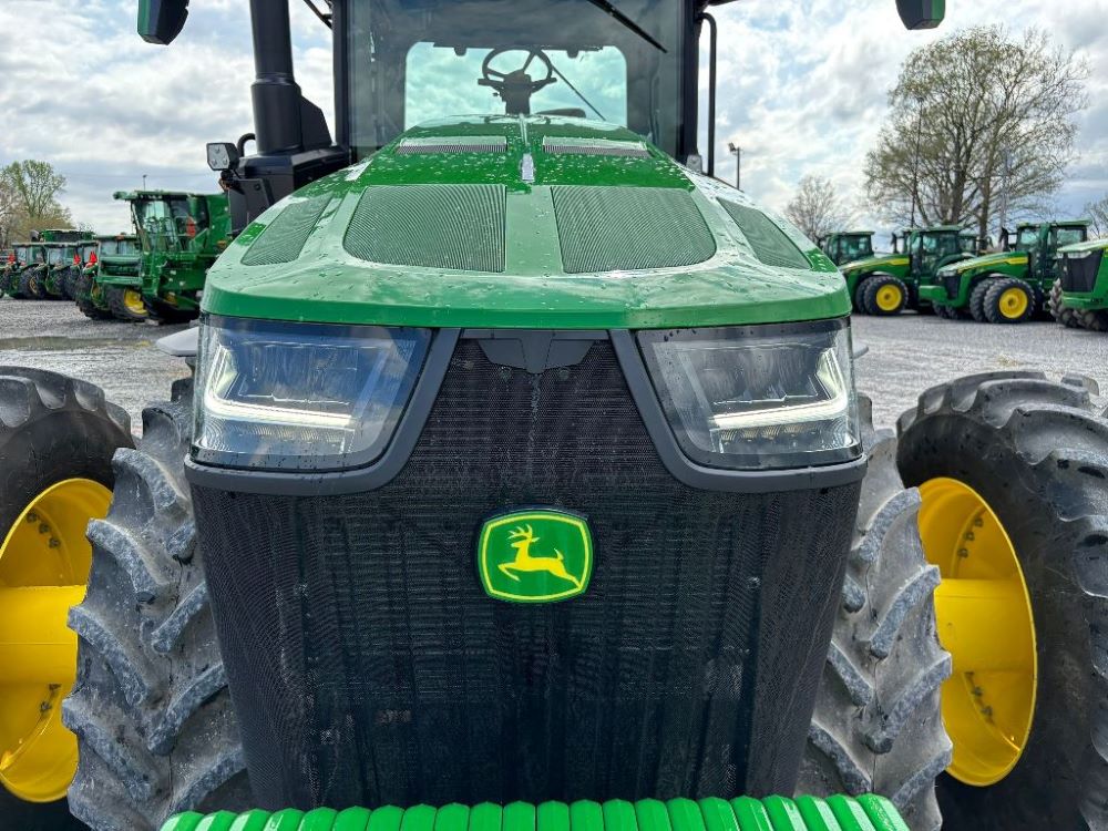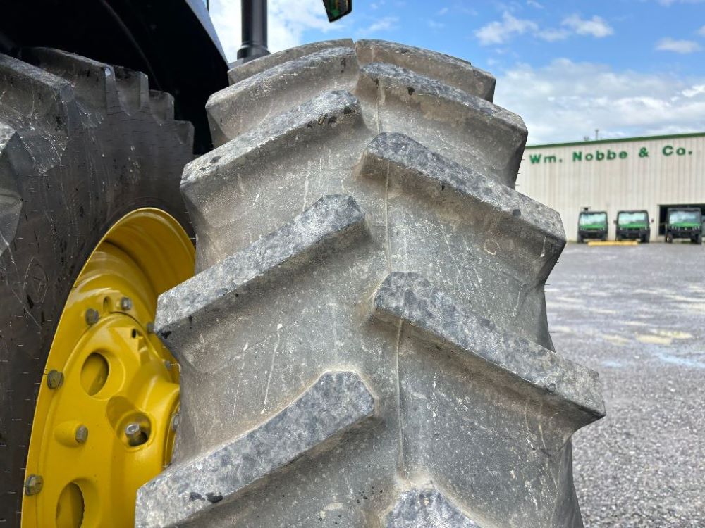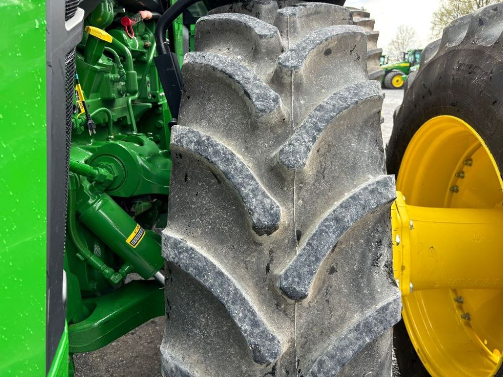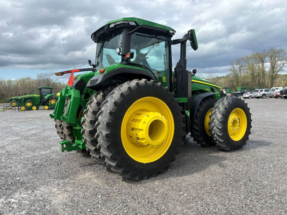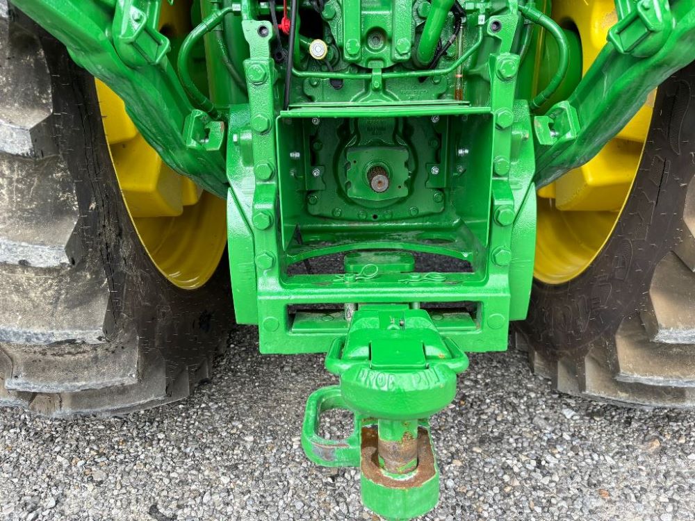 2023 John Deere 8R 340 MFWD Tractor (GP6966), John Deere 340HP 9.0L 6 cylinder diesel engine, E23 power shift transmission with efficiency manager, righ hand reverser with bump to shift controls, Premium cab with cab suspension, premium comfort and convenience package, heat, air conditioning, Am/Fm radio, cloth air driver seat, buddy seat, 5 port hydraulics with ISO couplers and high pressure relief levers, 1000 PTO, (22) CAT 4N/3 three point hitch with quick coupler, Cat 4 drawbar with HD support, aux case drain coupler, power beyond pressure coupler, load sense coupler, front suitcase weights, Firestone 420/85R34 front duals, Firestone 480/80R50 rear duals, rear wheel weights, hydraulic power steering, 60 GPM hyraulic pump, Gen 4, 4600 command center (10") color display with Premium 3.0 activation for auto-trac, section control, RowSense, data sync & data share, JD Link MTG (requires global position receiver which is NOT included), shows 134 hours.