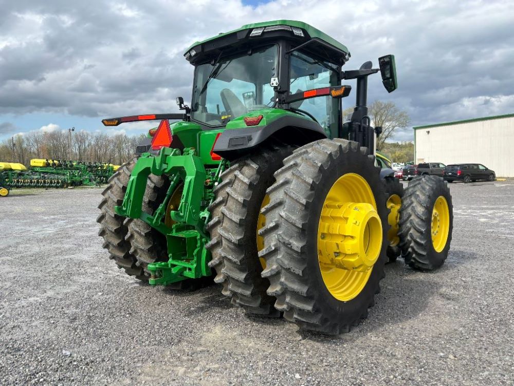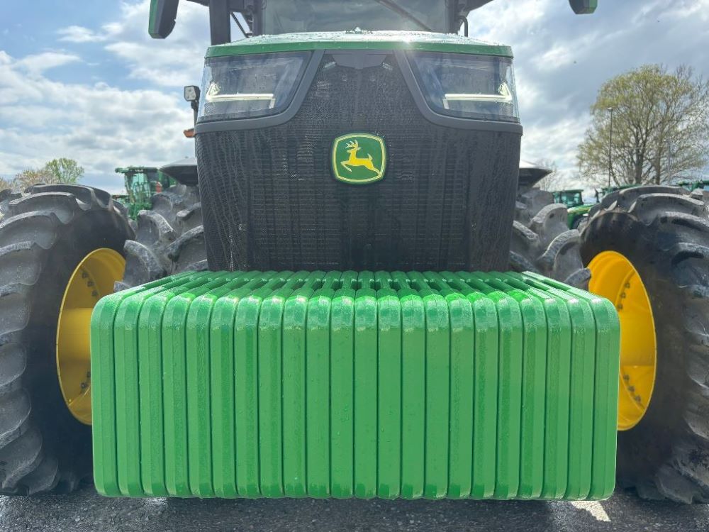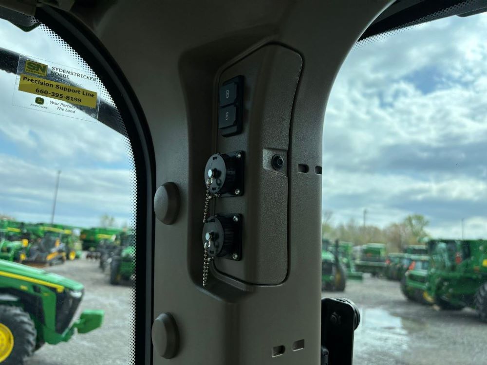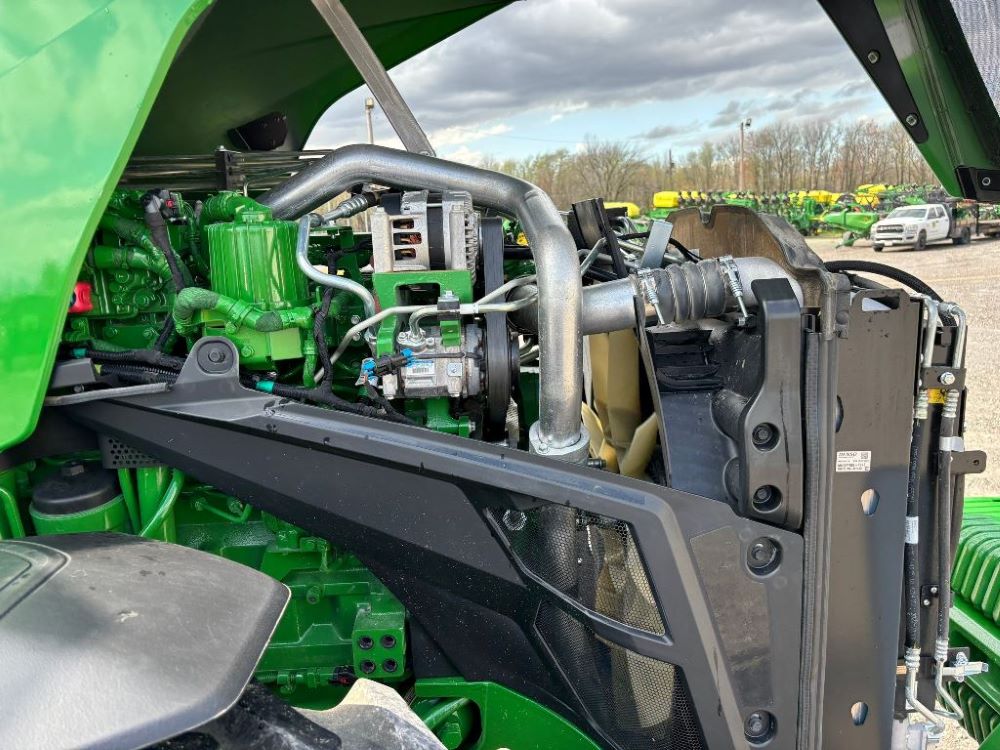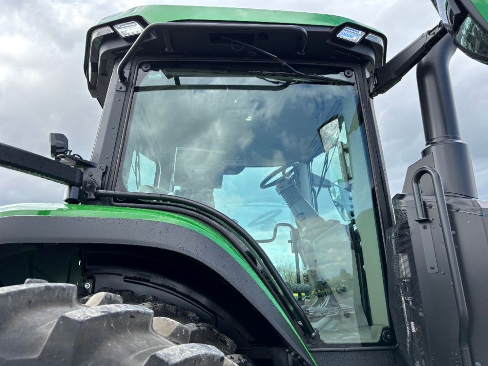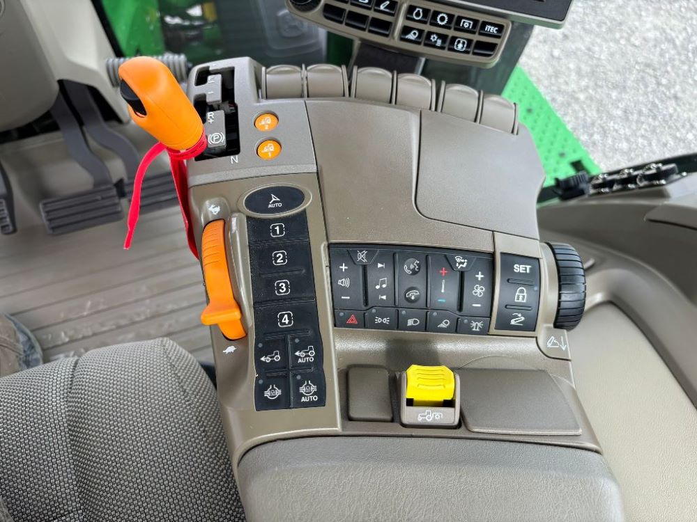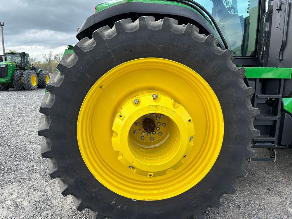 2023 John Deere 8R 340 MFWD Tractor (GP6966), John Deere 340HP 9.0L 6 cylinder diesel engine, E23 power shift transmission with efficiency manager, righ hand reverser with bump to shift controls, Premium cab with cab suspension, premium comfort and convenience package, heat, air conditioning, Am/Fm radio, cloth air driver seat, buddy seat, 5 port hydraulics with ISO couplers and high pressure relief levers, 1000 PTO, (22) CAT 4N/3 three point hitch with quick coupler, Cat 4 drawbar with HD support, aux case drain coupler, power beyond pressure coupler, load sense coupler, front suitcase weights, Firestone 420/85R34 front duals, Firestone 480/80R50 rear duals, rear wheel weights, hydraulic power steering, 60 GPM hyraulic pump, Gen 4, 4600 command center (10") color display with Premium 3.0 activation for auto-trac, section control, RowSense, data sync & data share, JD Link MTG (requires global position receiver which is NOT included), shows 134 hours.