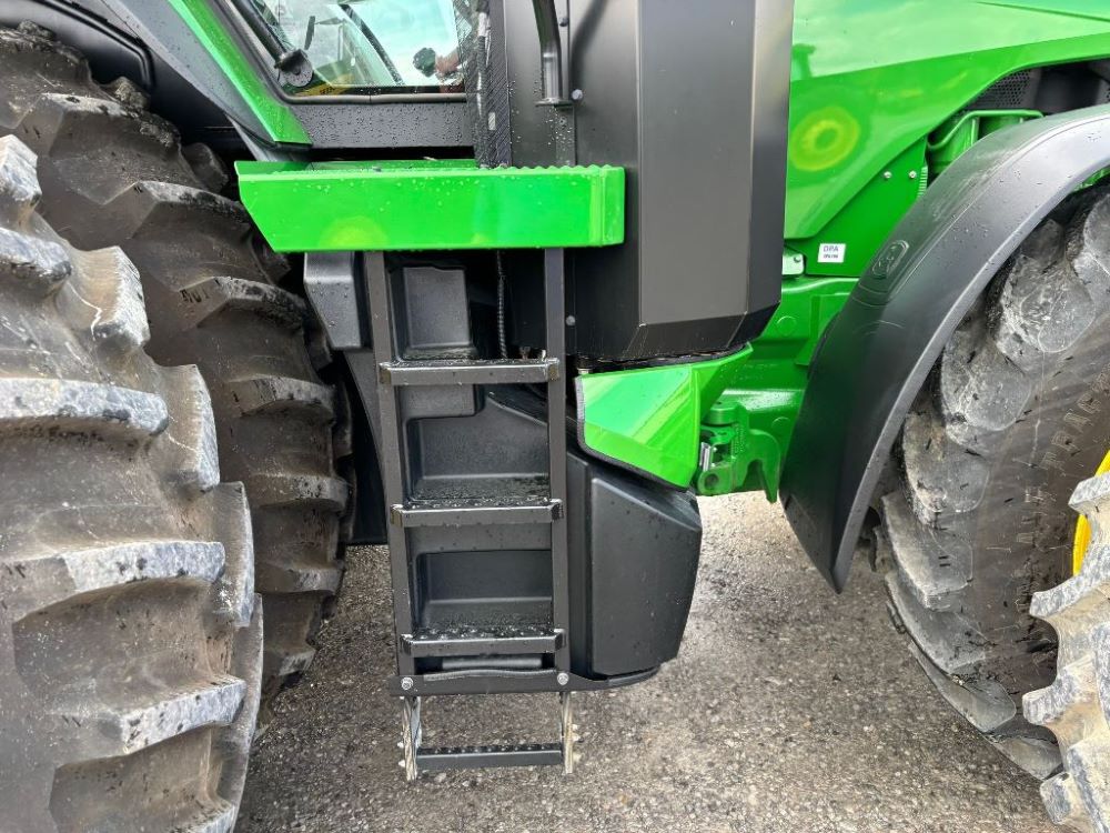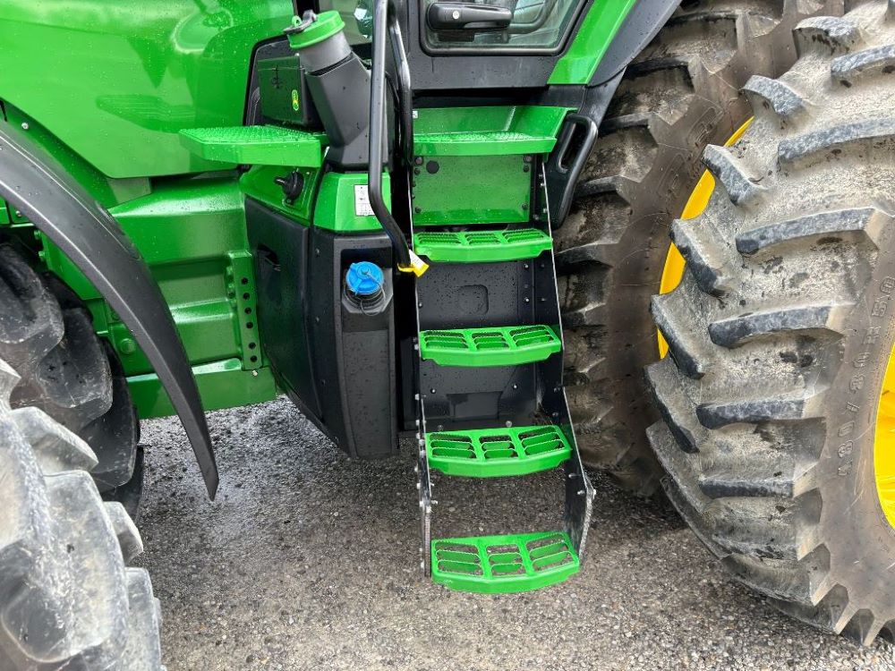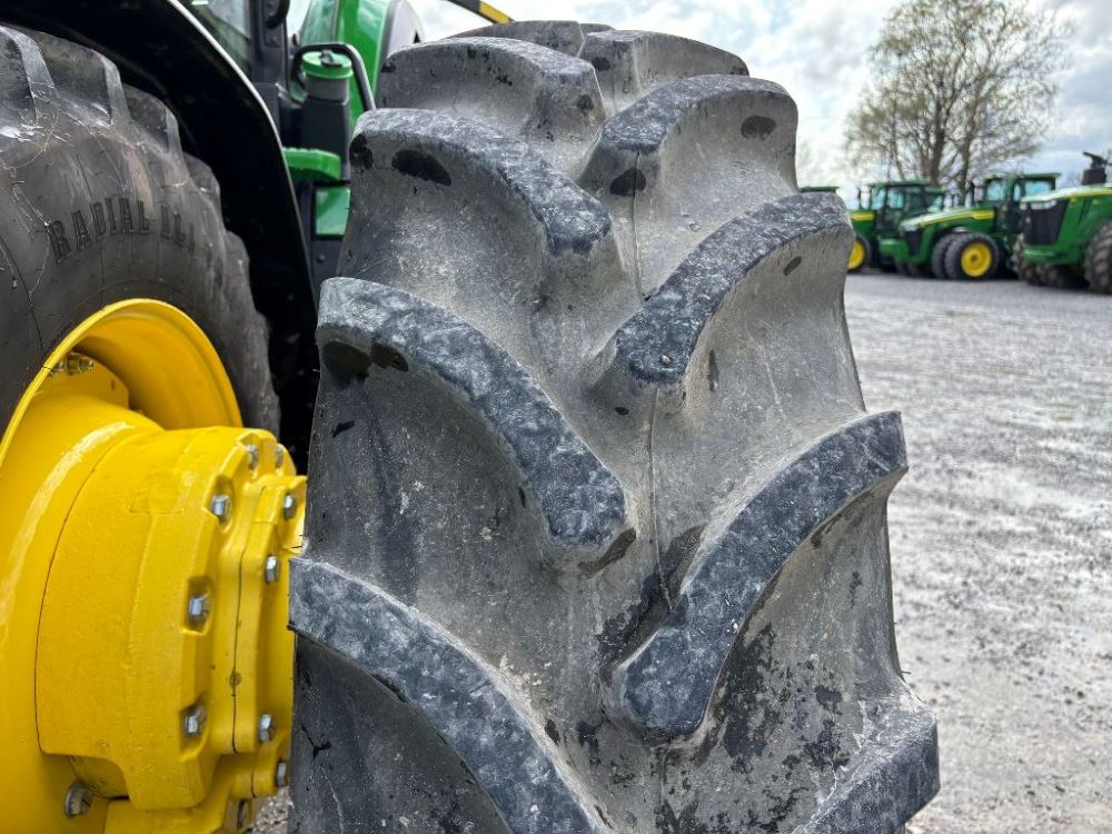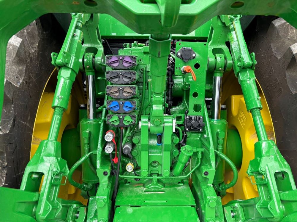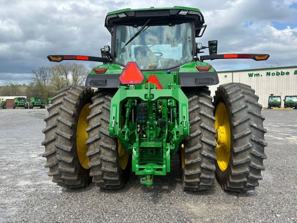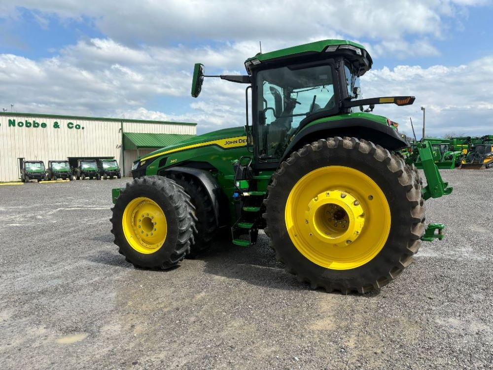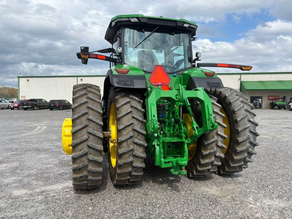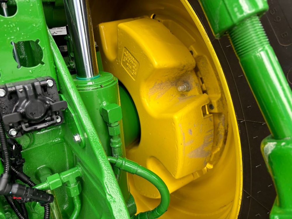 2023 John Deere 8R 340 MFWD Tractor (GP6966), John Deere 340HP 9.0L 6 cylinder diesel engine, E23 power shift transmission with efficiency manager, righ hand reverser with bump to shift controls, Premium cab with cab suspension, premium comfort and convenience package, heat, air conditioning, Am/Fm radio, cloth air driver seat, buddy seat, 5 port hydraulics with ISO couplers and high pressure relief levers, 1000 PTO, (22) CAT 4N/3 three point hitch with quick coupler, Cat 4 drawbar with HD support, aux case drain coupler, power beyond pressure coupler, load sense coupler, front suitcase weights, Firestone 420/85R34 front duals, Firestone 480/80R50 rear duals, rear wheel weights, hydraulic power steering, 60 GPM hyraulic pump, Gen 4, 4600 command center (10") color display with Premium 3.0 activation for auto-trac, section control, RowSense, data sync & data share, JD Link MTG (requires global position receiver which is NOT included), shows 134 hours.