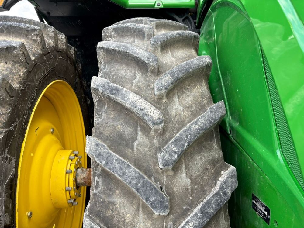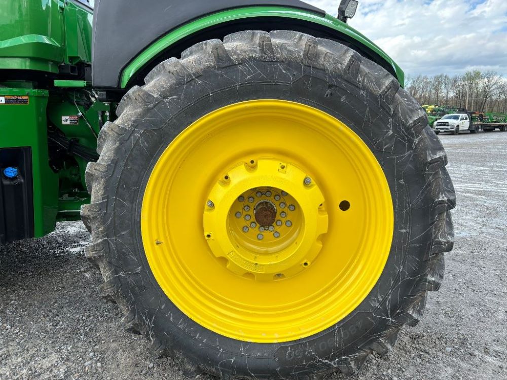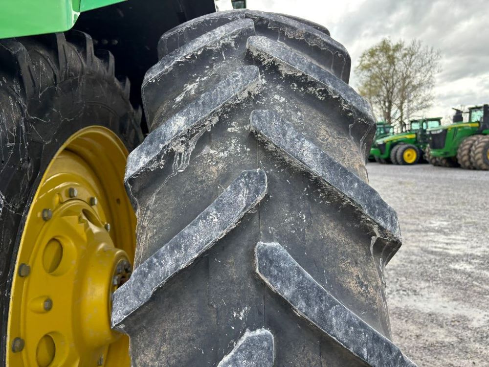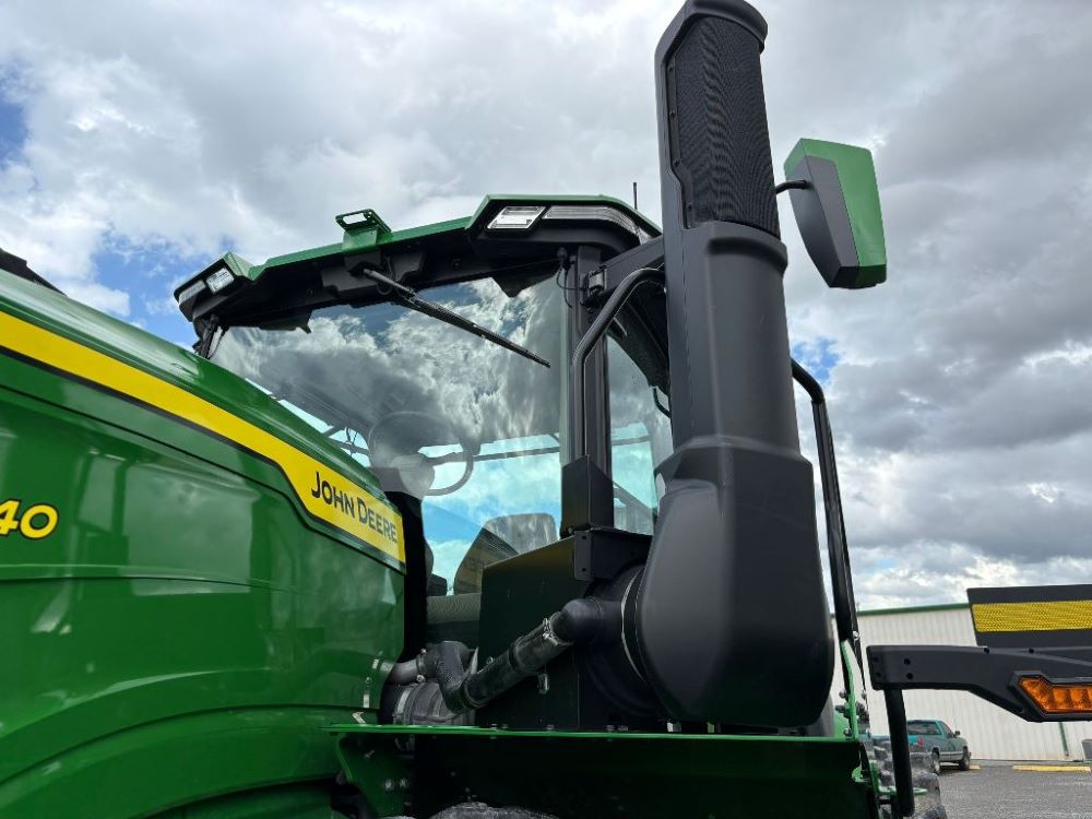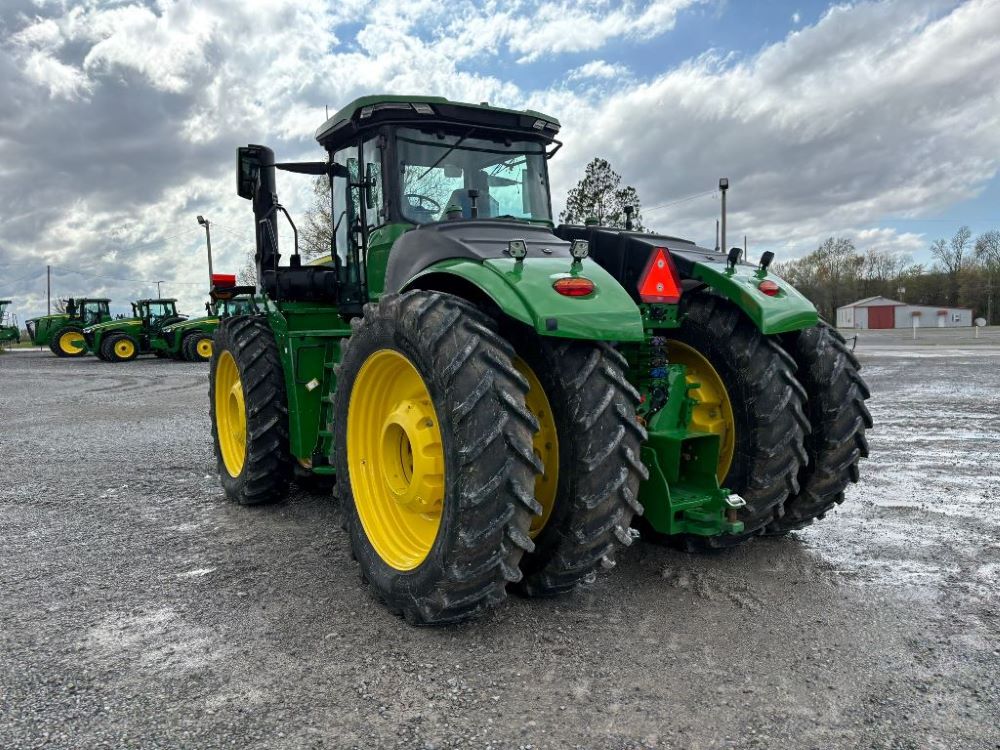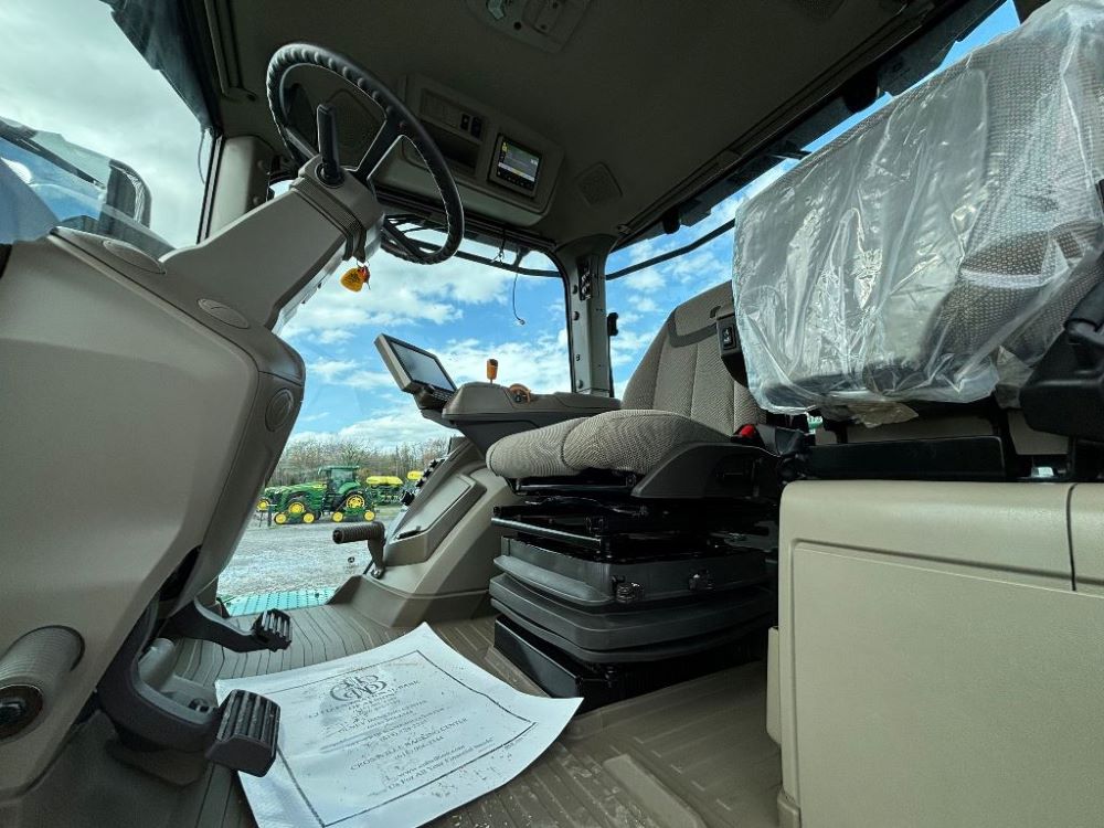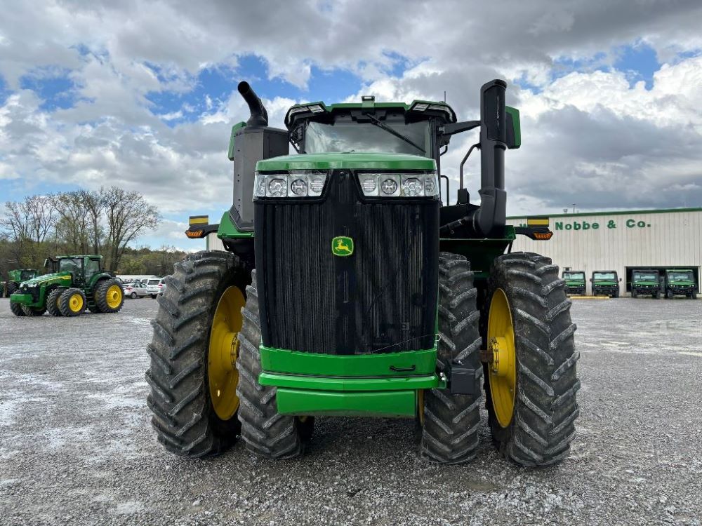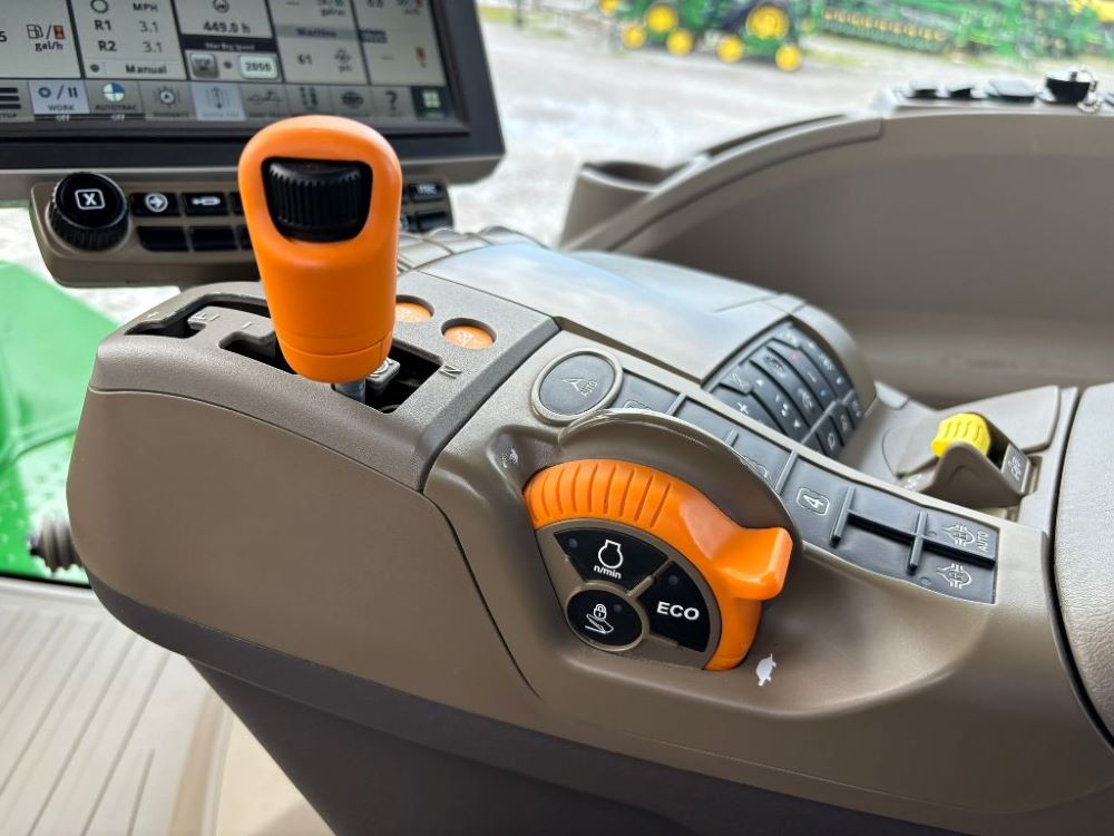 2023 John Deere 9R 440 Articulated 4WD Tractor (GP6969), John Deere 440HP 13.6L 6 cylinder diesel engine, 18F/6R E18 power shift transmission with efficiency manager, Premium CommandView cab, Premium comfort package, heat, air conditioning, Am/Fm radio, cloth air driver seat, buddy seat, 5 port E/H hydraulic valves with ISO couplers & high pressure relief levers, aux hydraulic connections, standard CAT 4 draw bar, 1000 PTO, 55 GPM hydraulic pump, (12) front suitcase weights, Michelin 420/90R30 front tires, Michelin 480/80R50 front/rear duals, front/rear wheel weights, adjustable right Command Arm with 10" color touch display, 4600 processor with Premium 3.0 activations (auto-trac, RowSense, section control, data sync & data share - requires JD global position receiver which is NOT included), JD Link MTG, shows 449 hours.