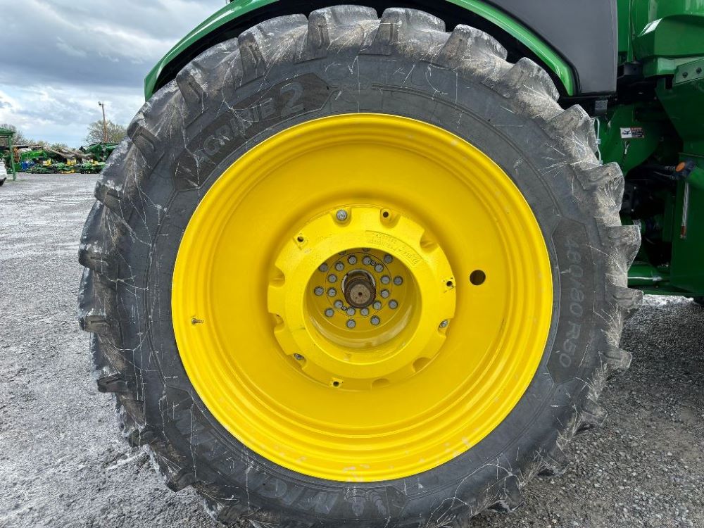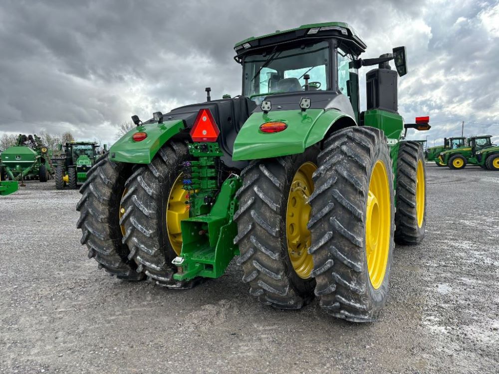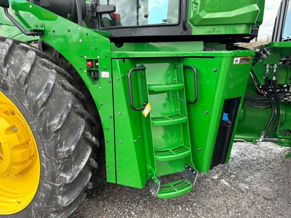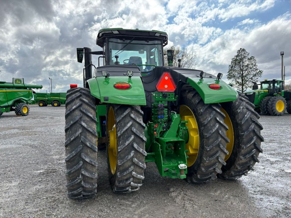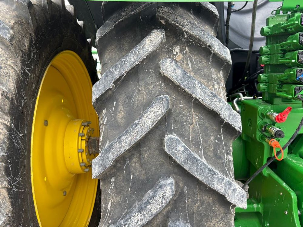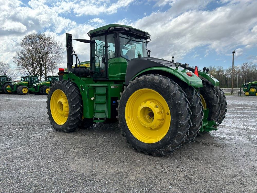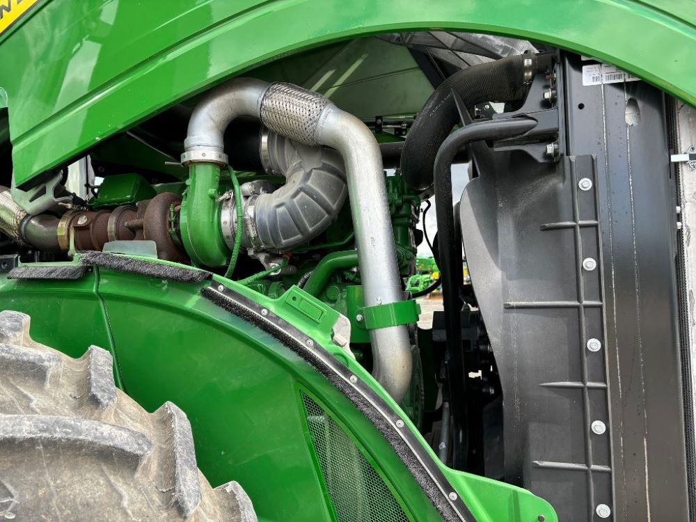 2023 John Deere 9R 440 Articulated 4WD Tractor (GP6969), John Deere 440HP 13.6L 6 cylinder diesel engine, 18F/6R E18 power shift transmission with efficiency manager, Premium CommandView cab, Premium comfort package, heat, air conditioning, Am/Fm radio, cloth air driver seat, buddy seat, 5 port E/H hydraulic valves with ISO couplers & high pressure relief levers, aux hydraulic connections, standard CAT 4 draw bar, 1000 PTO, 55 GPM hydraulic pump, (12) front suitcase weights, Michelin 420/90R30 front tires, Michelin 480/80R50 front/rear duals, front/rear wheel weights, adjustable right Command Arm with 10" color touch display, 4600 processor with Premium 3.0 activations (auto-trac, RowSense, section control, data sync & data share - requires JD global position receiver which is NOT included), JD Link MTG, shows 449 hours.
