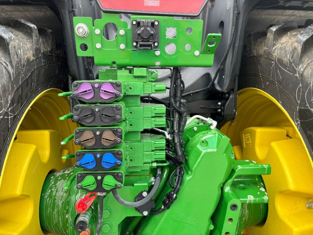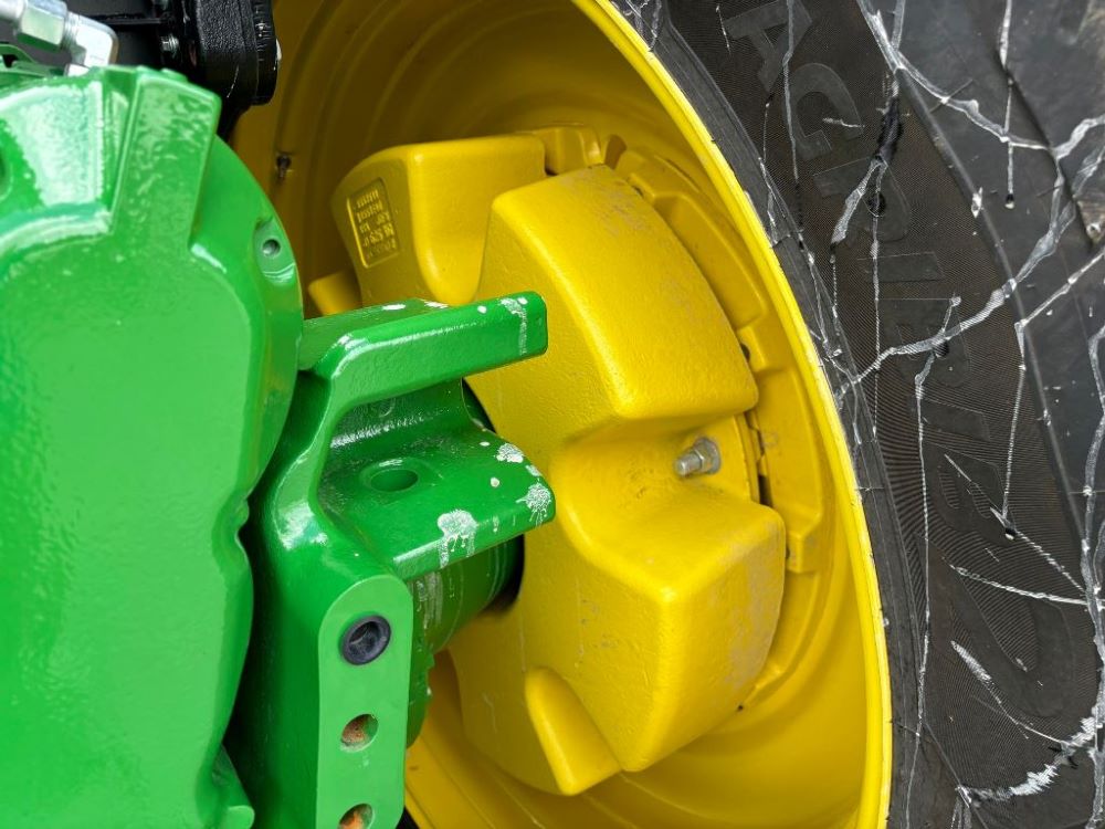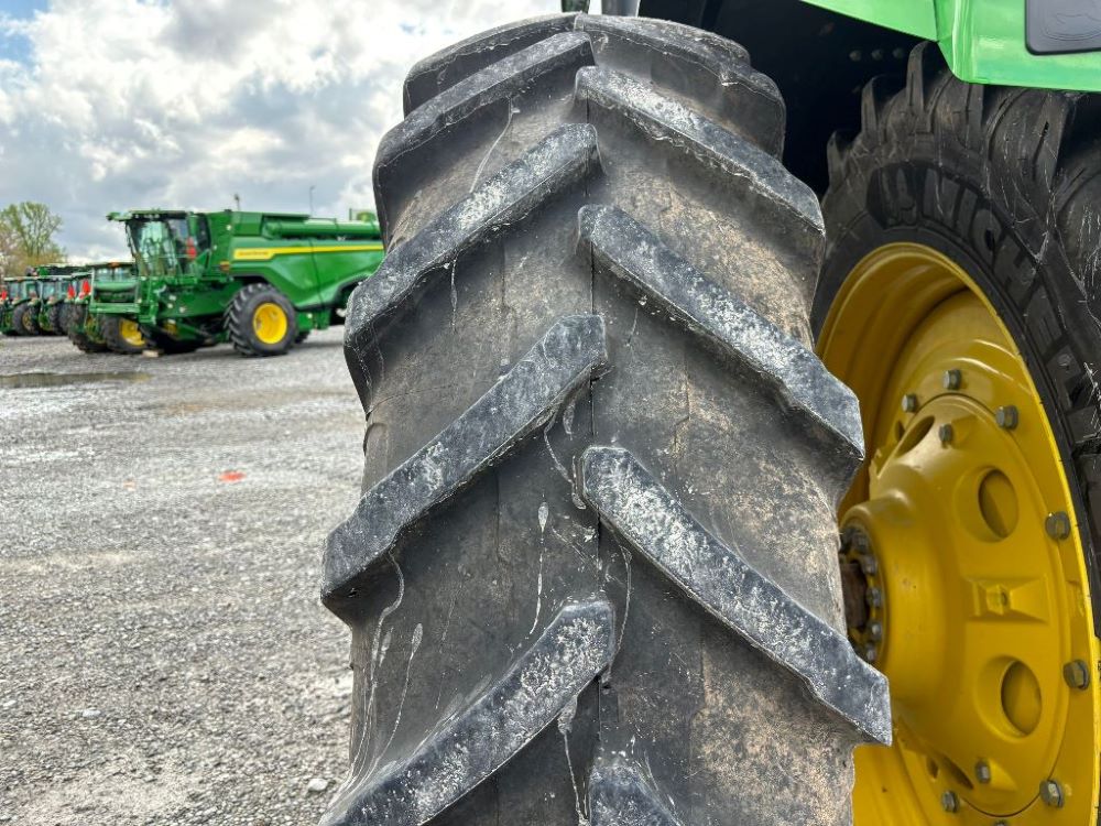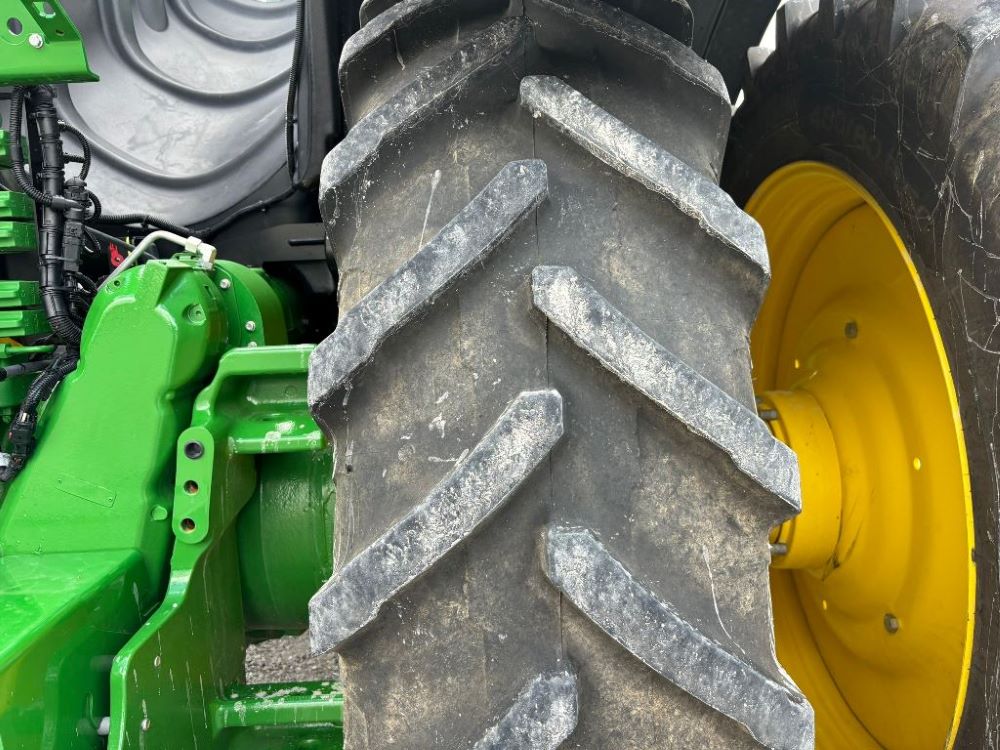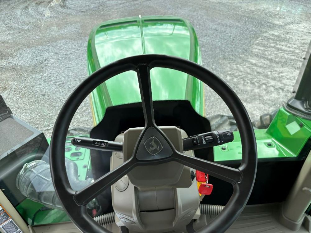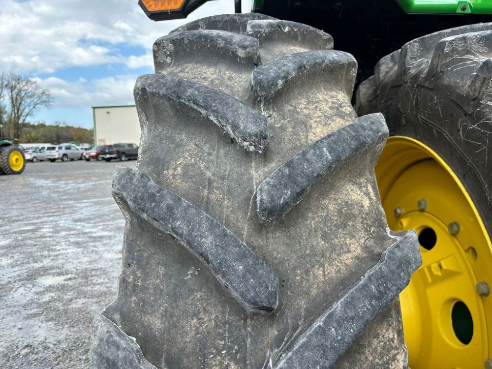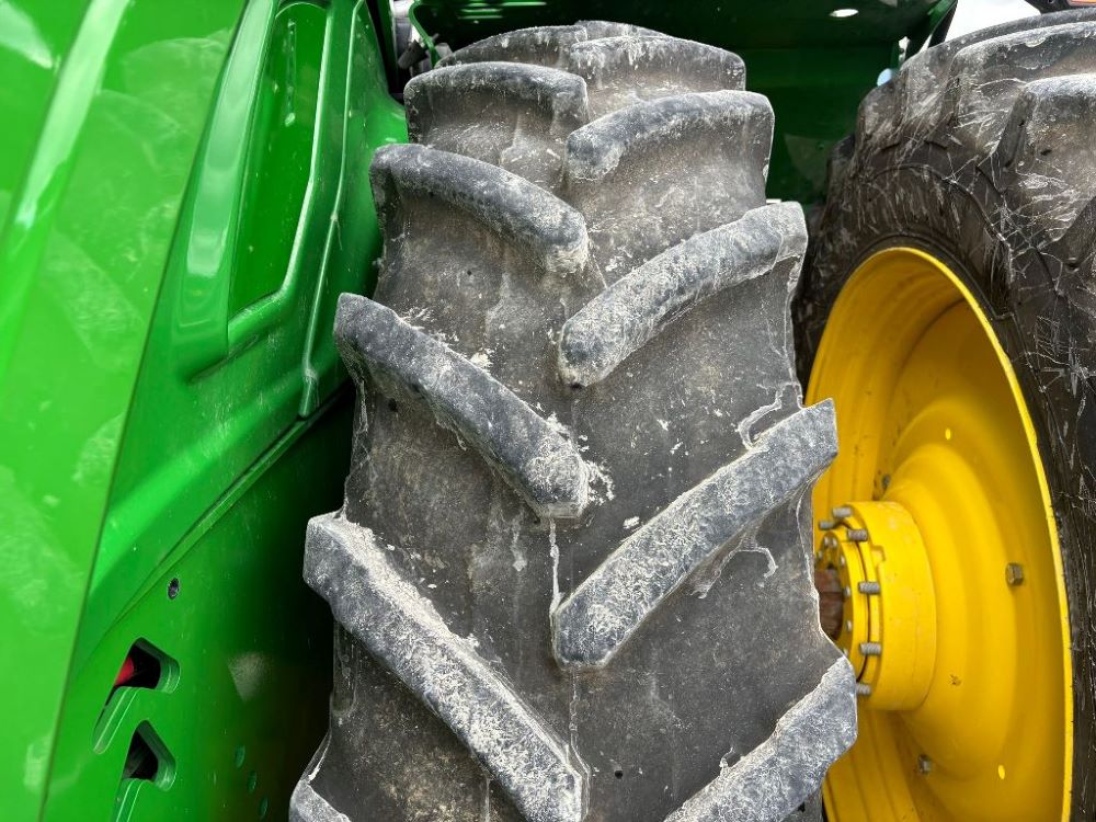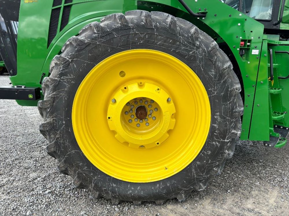 2023 John Deere 9R 440 Articulated 4WD Tractor (GP6969), John Deere 440HP 13.6L 6 cylinder diesel engine, 18F/6R E18 power shift transmission with efficiency manager, Premium CommandView cab, Premium comfort package, heat, air conditioning, Am/Fm radio, cloth air driver seat, buddy seat, 5 port E/H hydraulic valves with ISO couplers & high pressure relief levers, aux hydraulic connections, standard CAT 4 draw bar, 1000 PTO, 55 GPM hydraulic pump, (12) front suitcase weights, Michelin 420/90R30 front tires, Michelin 480/80R50 front/rear duals, front/rear wheel weights, adjustable right Command Arm with 10" color touch display, 4600 processor with Premium 3.0 activations (auto-trac, RowSense, section control, data sync & data share - requires JD global position receiver which is NOT included), JD Link MTG, shows 449 hours.
