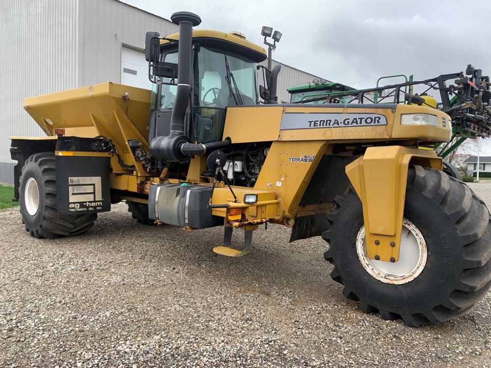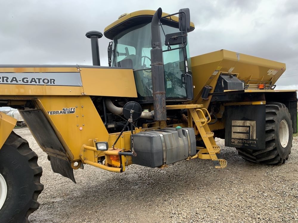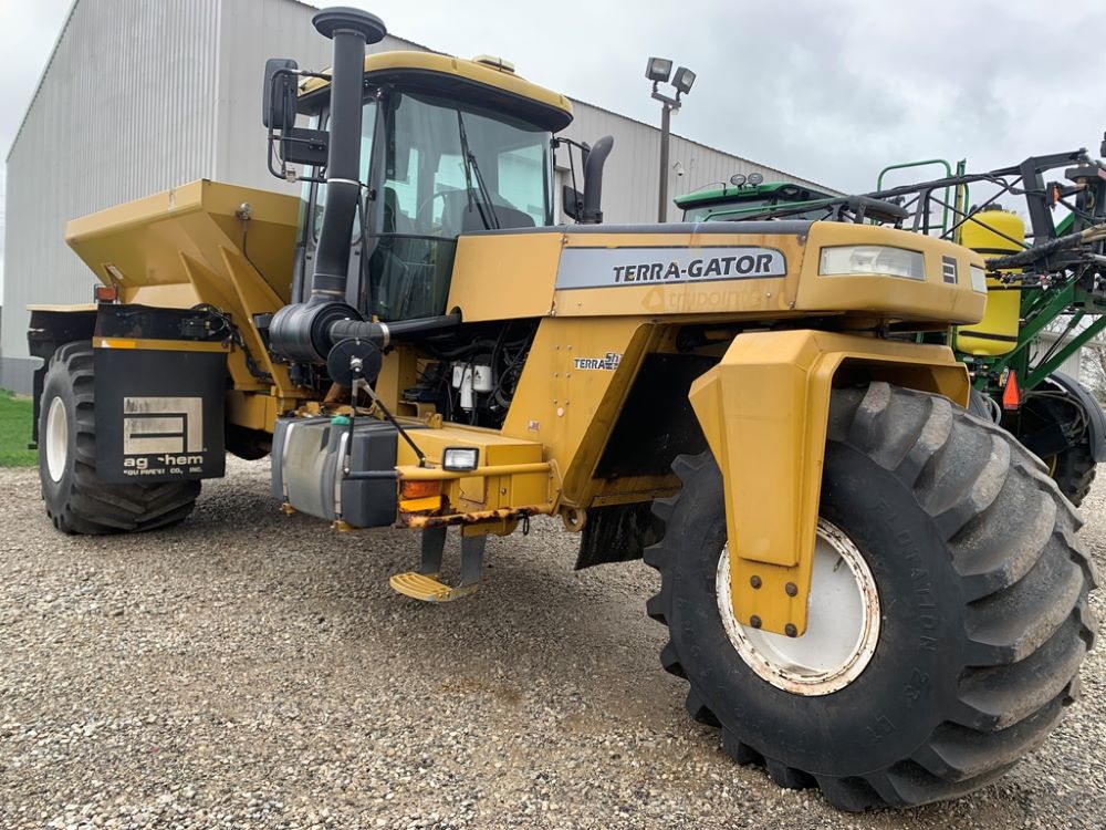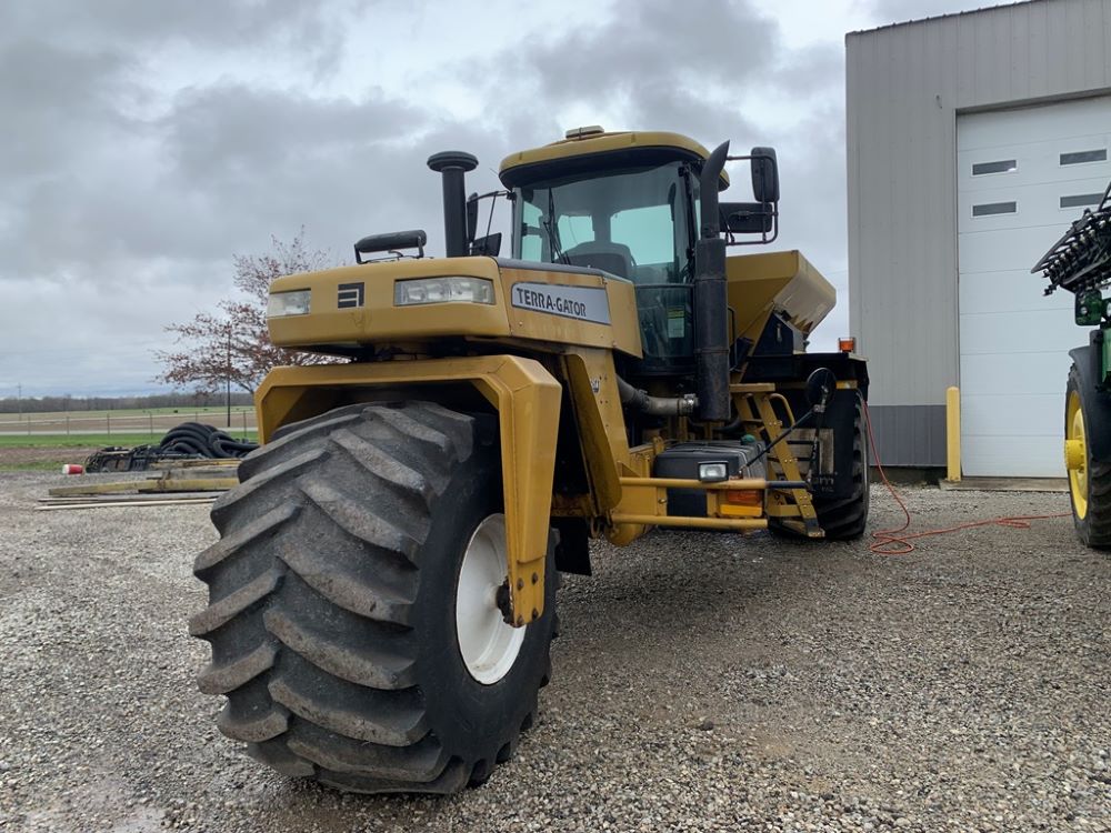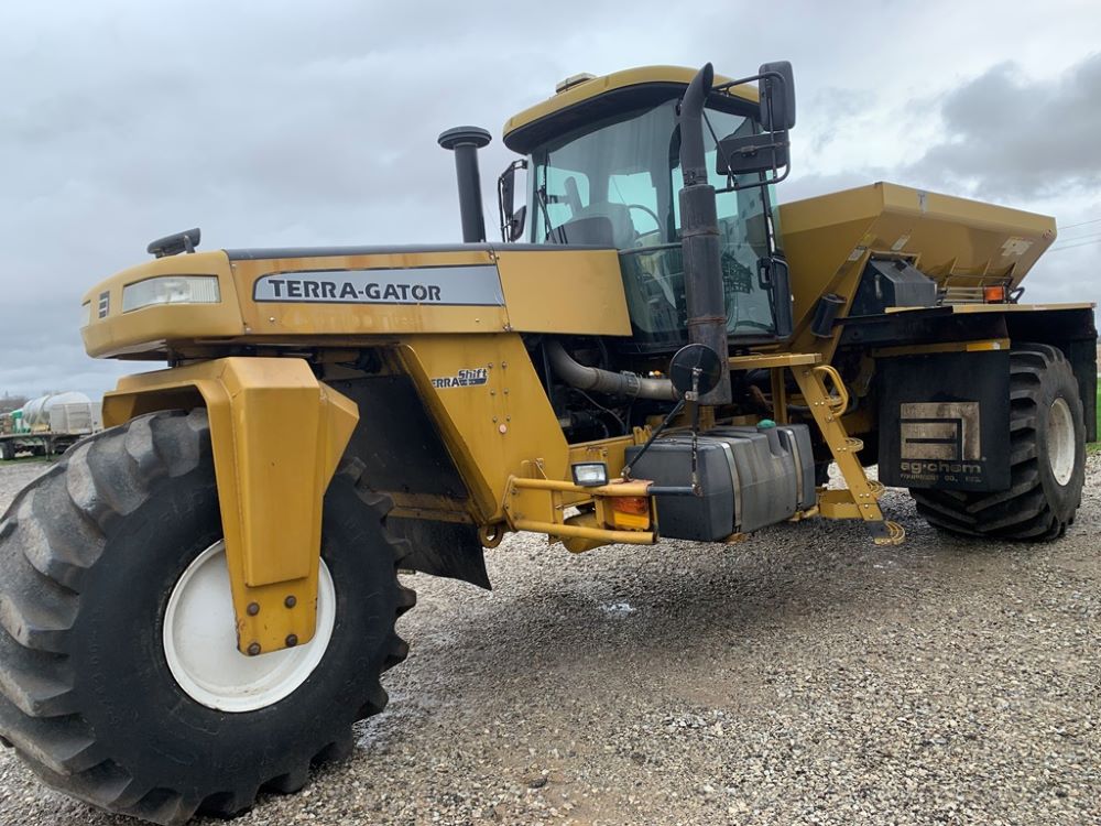 2005 Terra Gator 6103 Dry Floater (CP3532), John Deere diesel engine (S/N RG6081H259172), Terra Shift transmission, heat, Am/Fm radio, New Leader L3020G4 stainless steel dry spreader box, dual spinners, hydraulic, 66x43.00-25 tires, Raven Viper Pro monitor, shows 64,520 miles, shows 5,301 hours.